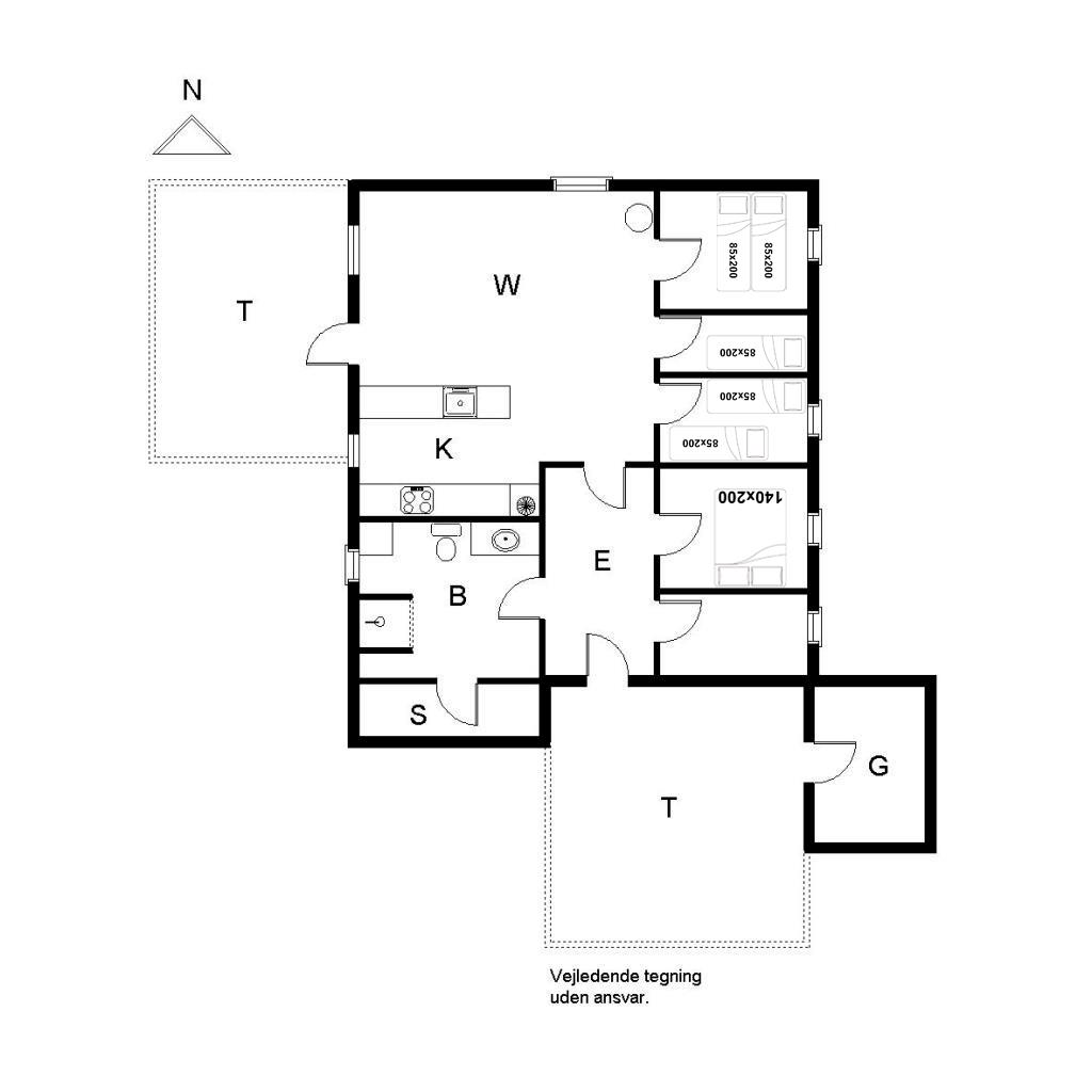 Indenfor venter jer et hyggeligt og lyst indrettet sommerhus, hvor alt er indrettet til afslapning. Det åbne køkkenalrum binder stue, spiseplads og køkken sammen – et naturligt samlingspunkt for hele familien. Store vinduespartier giver masser af lys, mens brændeovnen spreder varme og stemning på kølige aftener.