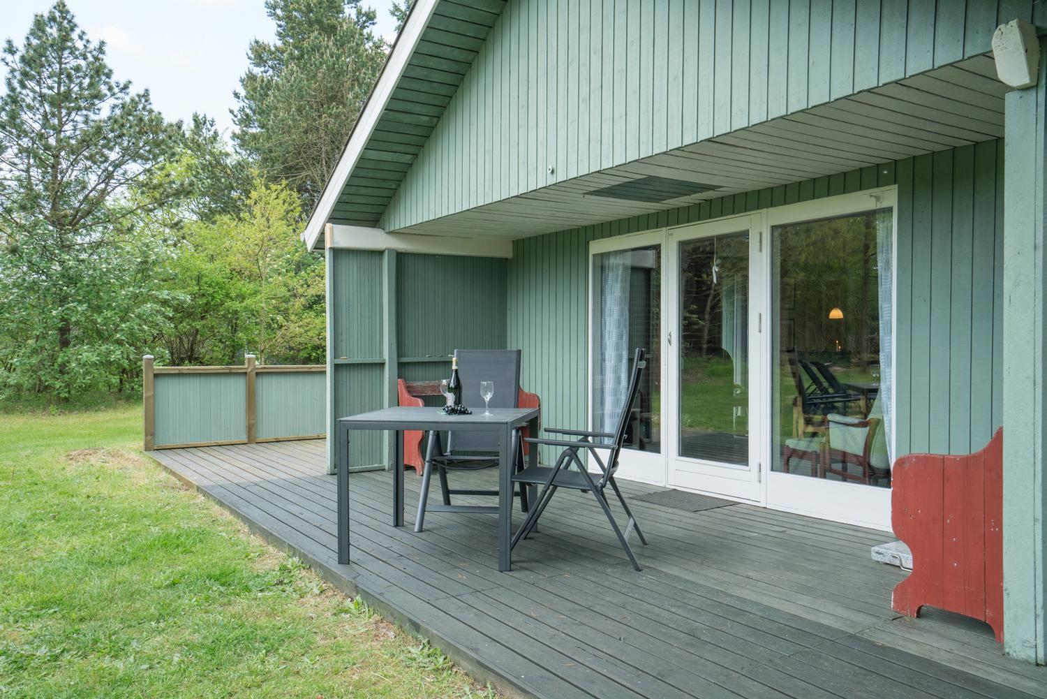 Dette hyggelige feriehus ligger for enden af en stille vej på Søndervang 31, omgivet af fredelige og naturskønne omgivelser. Den store, godt bevokset grund giver både privatliv og trygge rammer – ideelt til familier med børn. Her er flere terrasser med havemøbler, liggestole samt bålplads og gynge til hyggelige udendørsstunder.