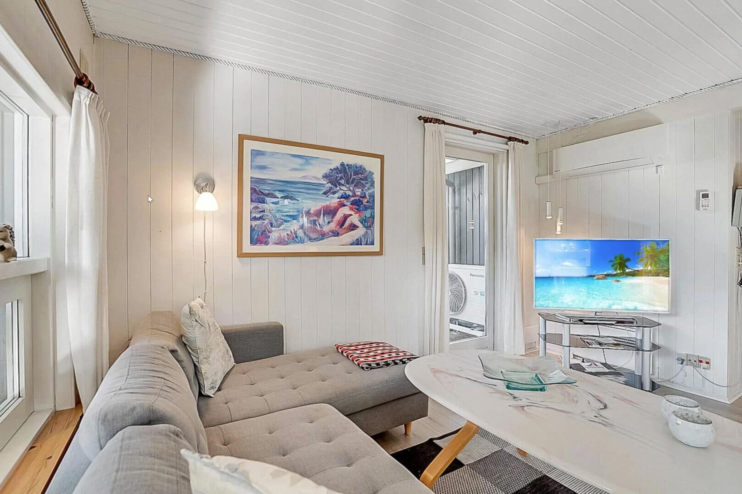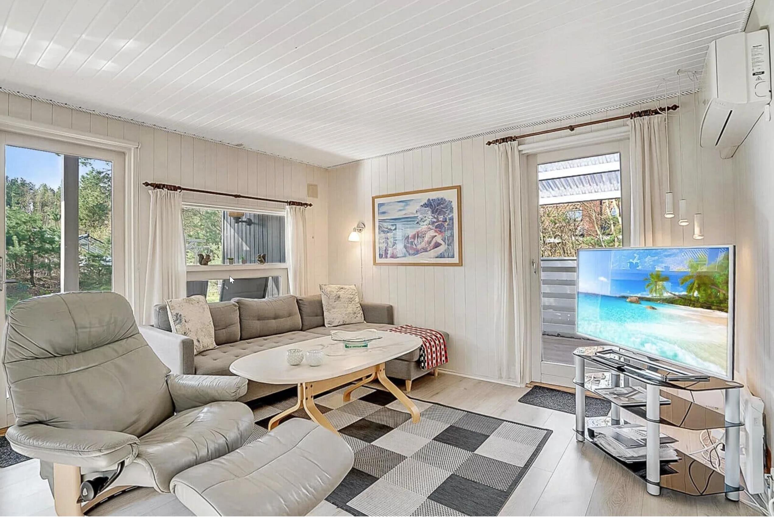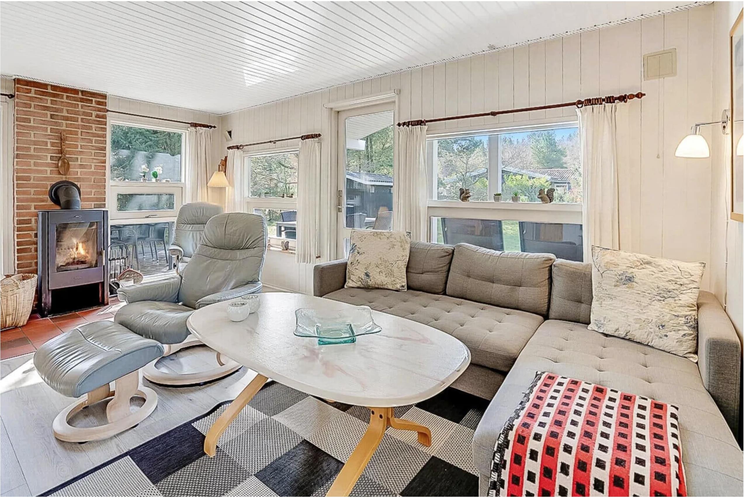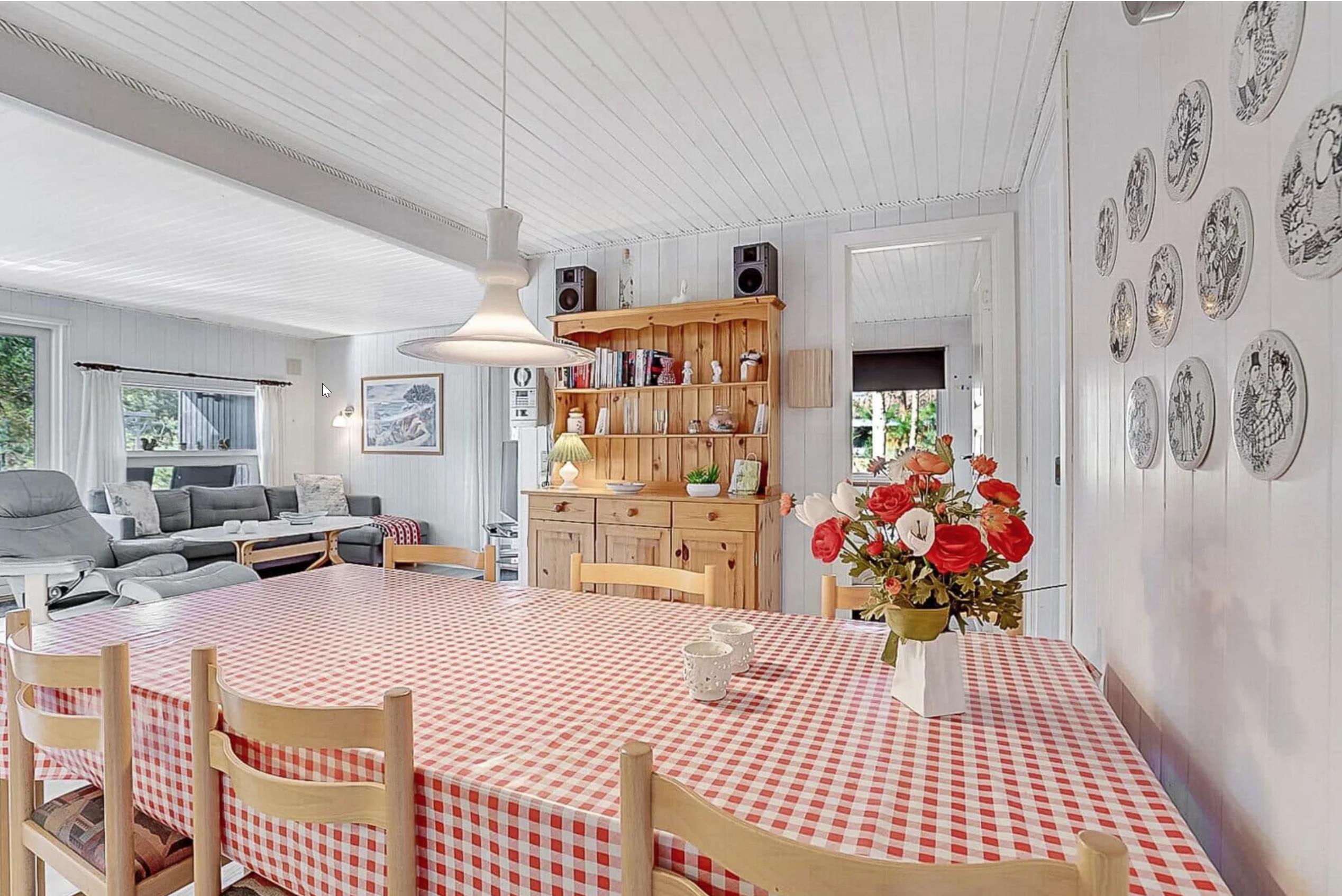 Sommerhuset har tre soveværelser: to med dobbeltsenge og ét med køjeseng – perfekt til børn. Indretningen gør sommerhuset ideelt for familier med børn eller to par, der holder ferie sammen.