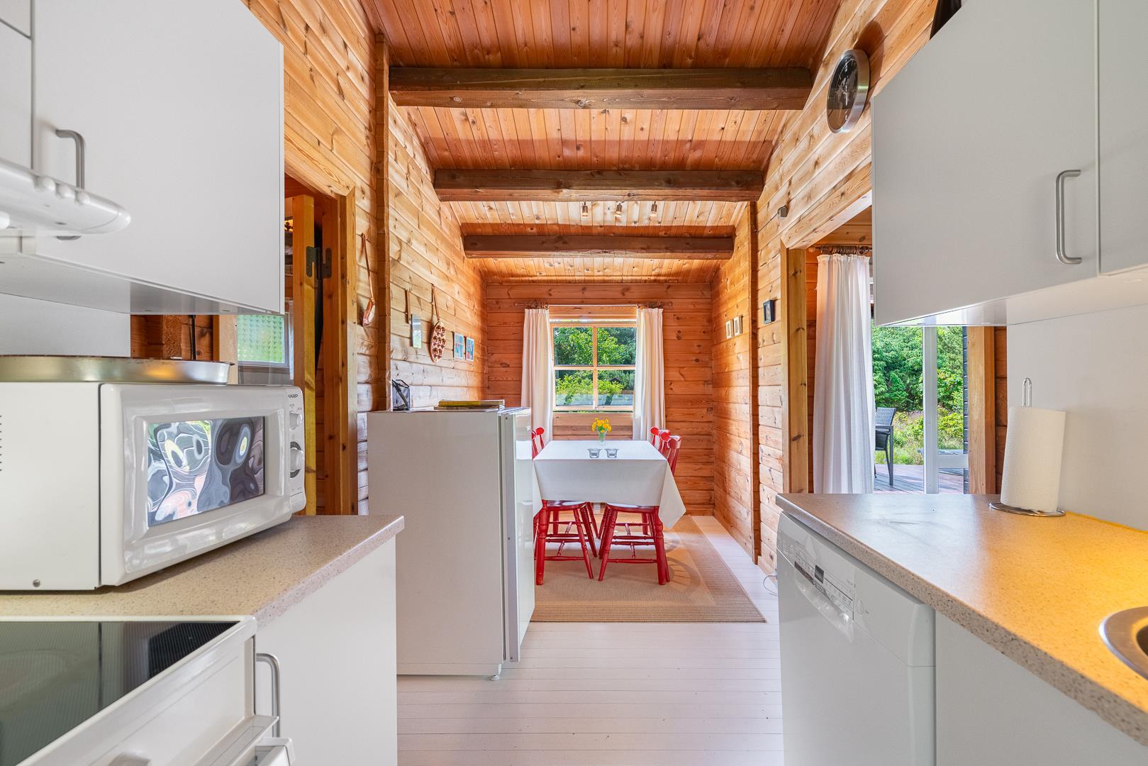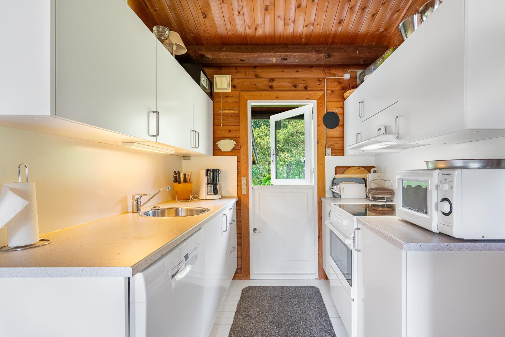 Huset har 2 soverum og egner sig bedst til den helt lille familie. Nyere køkken med opvaskemaskine og mikroovn.
