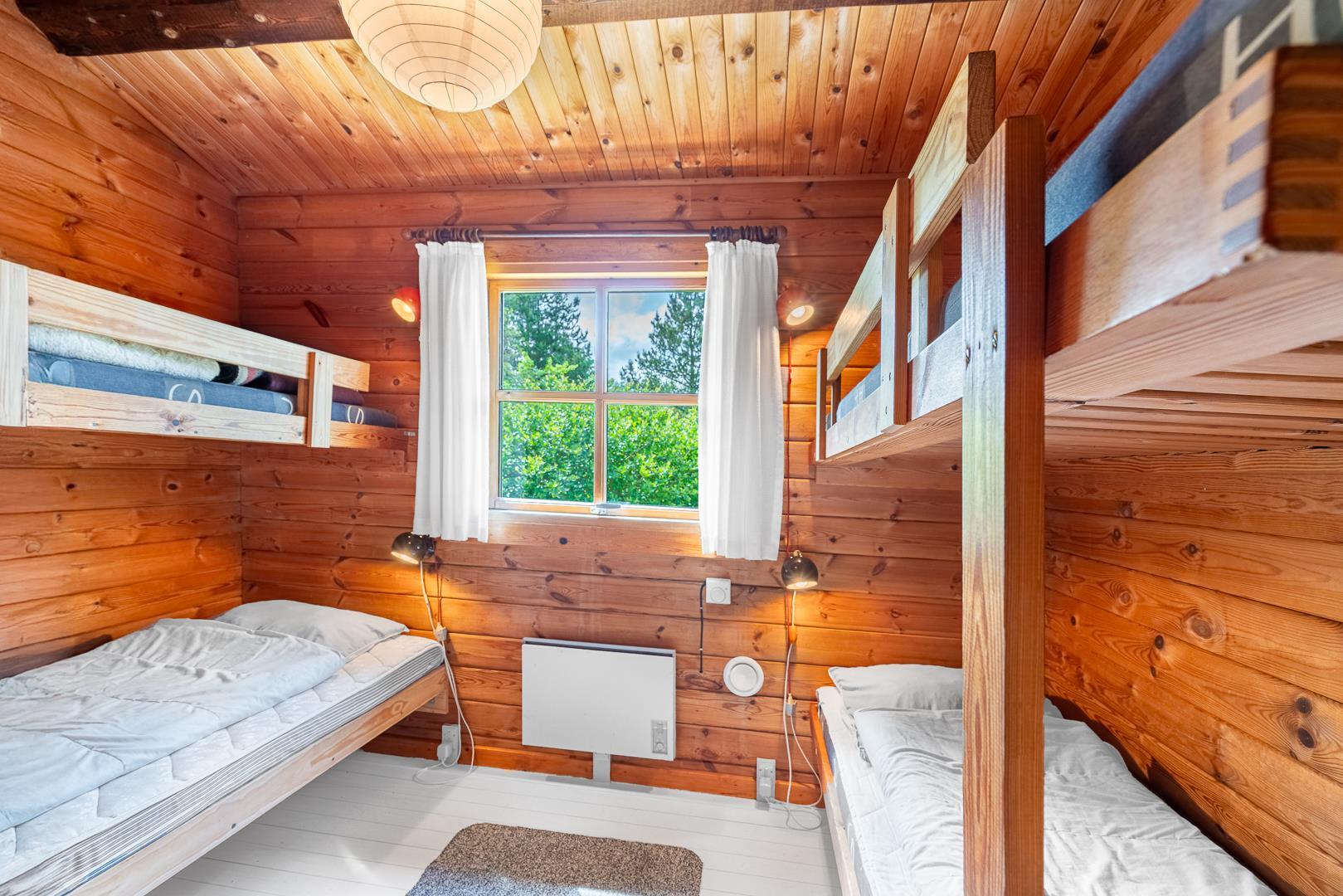 Sengestørrelse: 1 dobbeltseng med 2 madrasser 80 x 200 cm + 1 køjeseng 80 x 200 cm + 1 køjeseng 70 x 200 cm.