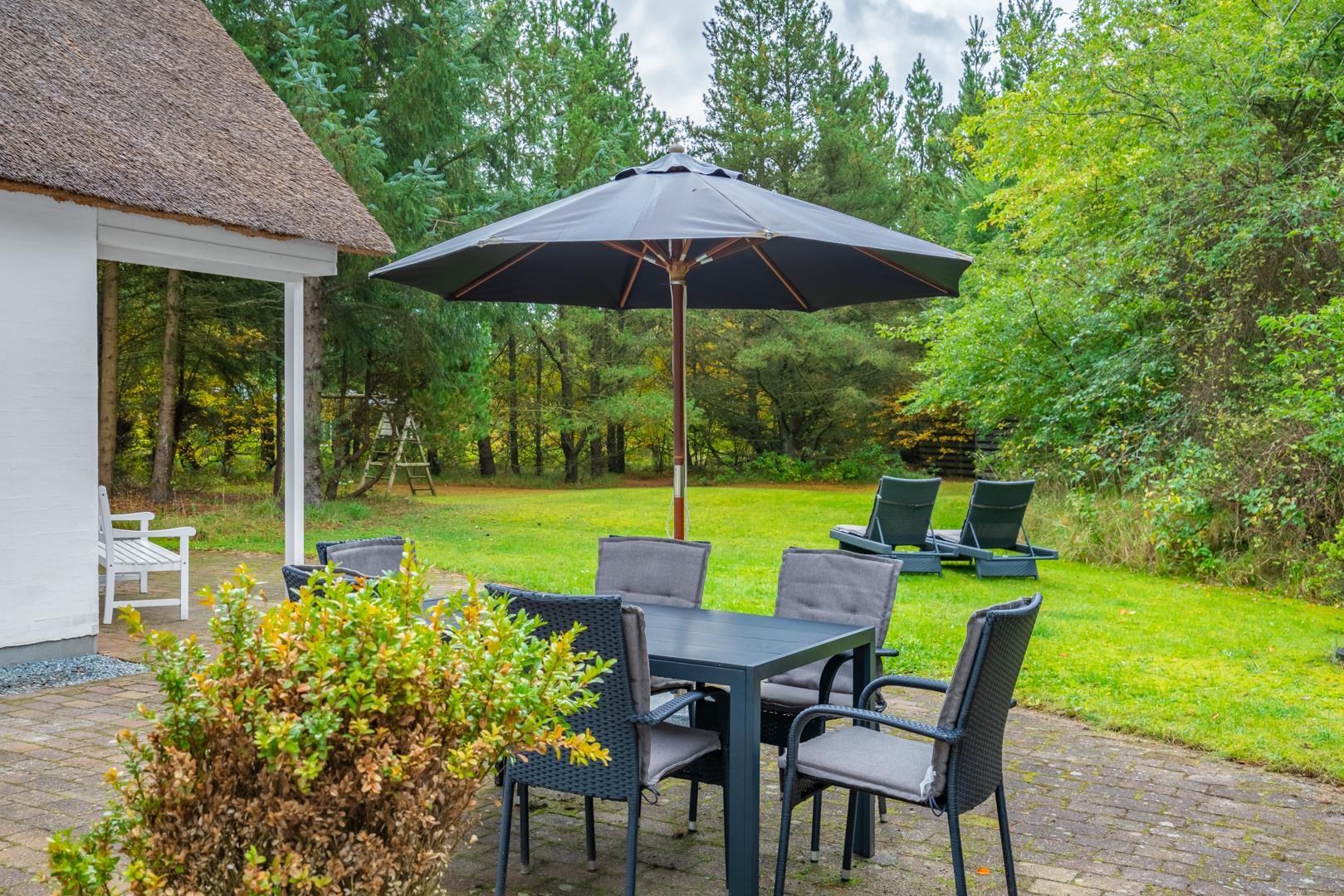 Her kan I nyde freden og naturen – hvad enten det er på terrassen med morgenkaffen, i liggestolen i solen eller til en hyggelig grillaften.