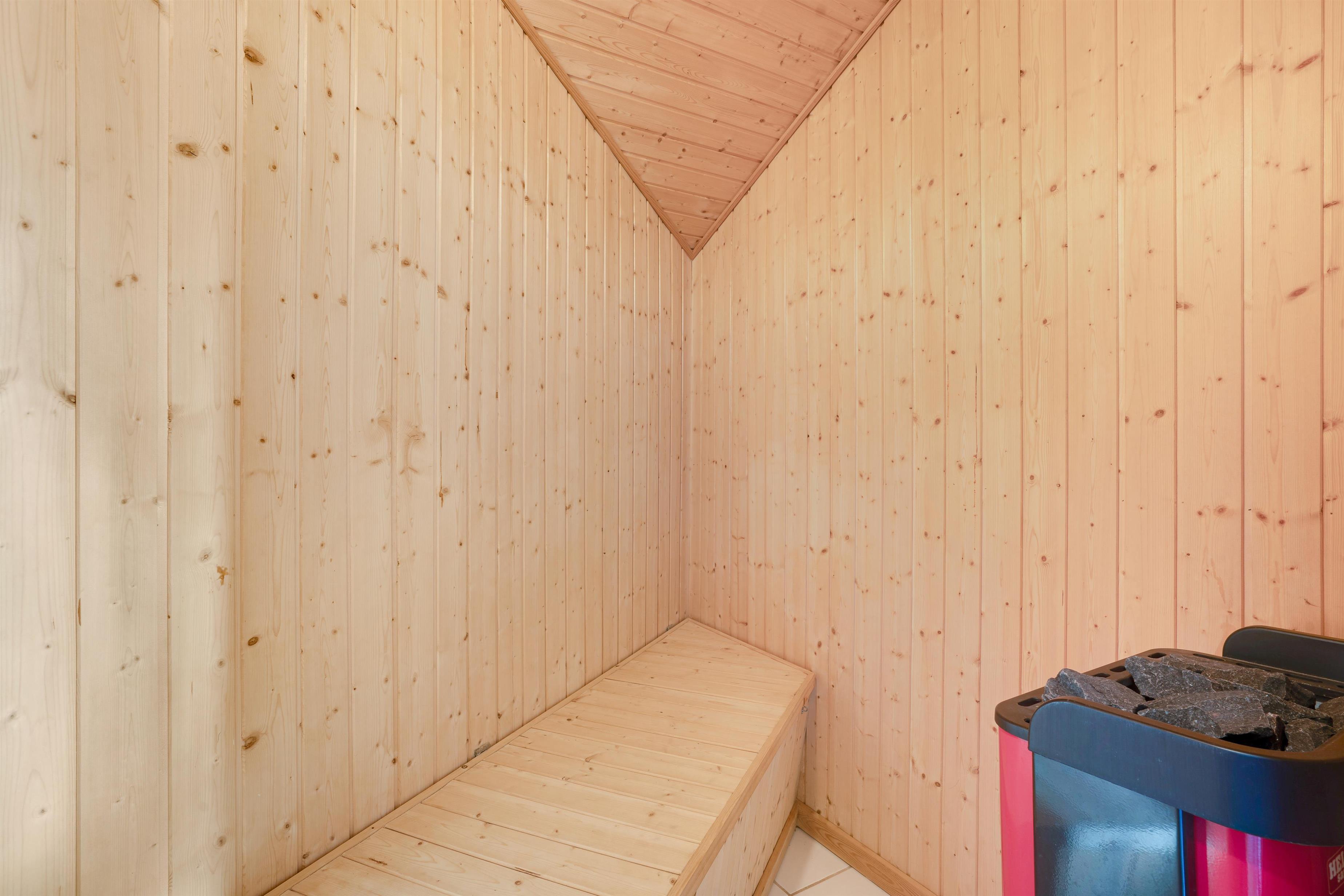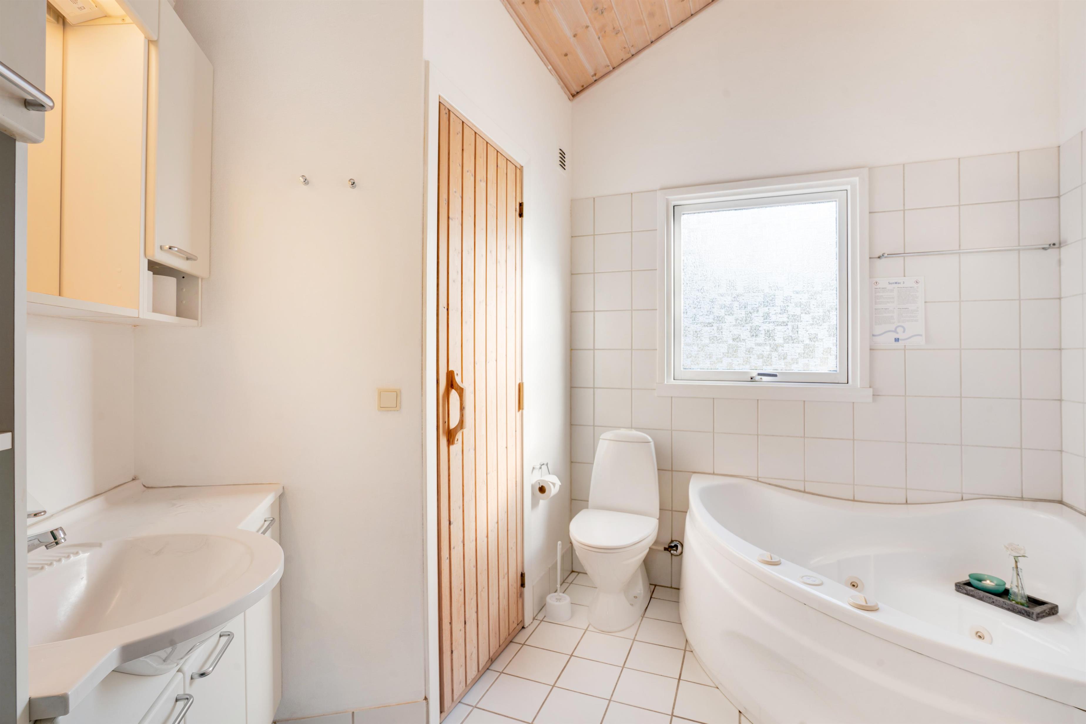 Store vinduer sørger for, at der slipper masser af lys ind og gør omgivelserne endnu venligere, og I har samtidig udsigt til den store have. Især på de kølige feriedage vil husets sauna og spabad blive brugt flittigt, og her får I for alvor mulighed for at tanke nye kræfter og glemme hverdagens stress og jag.