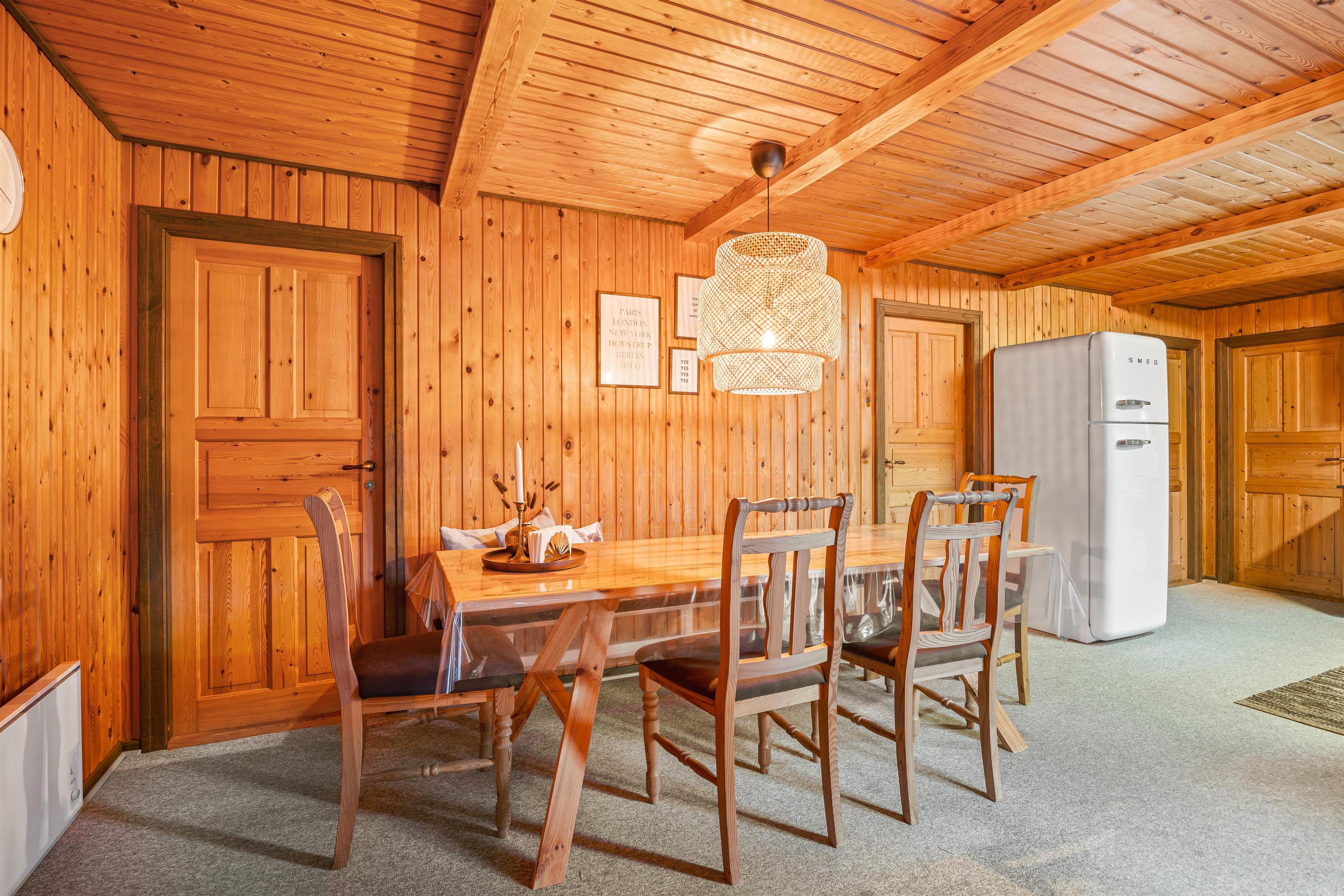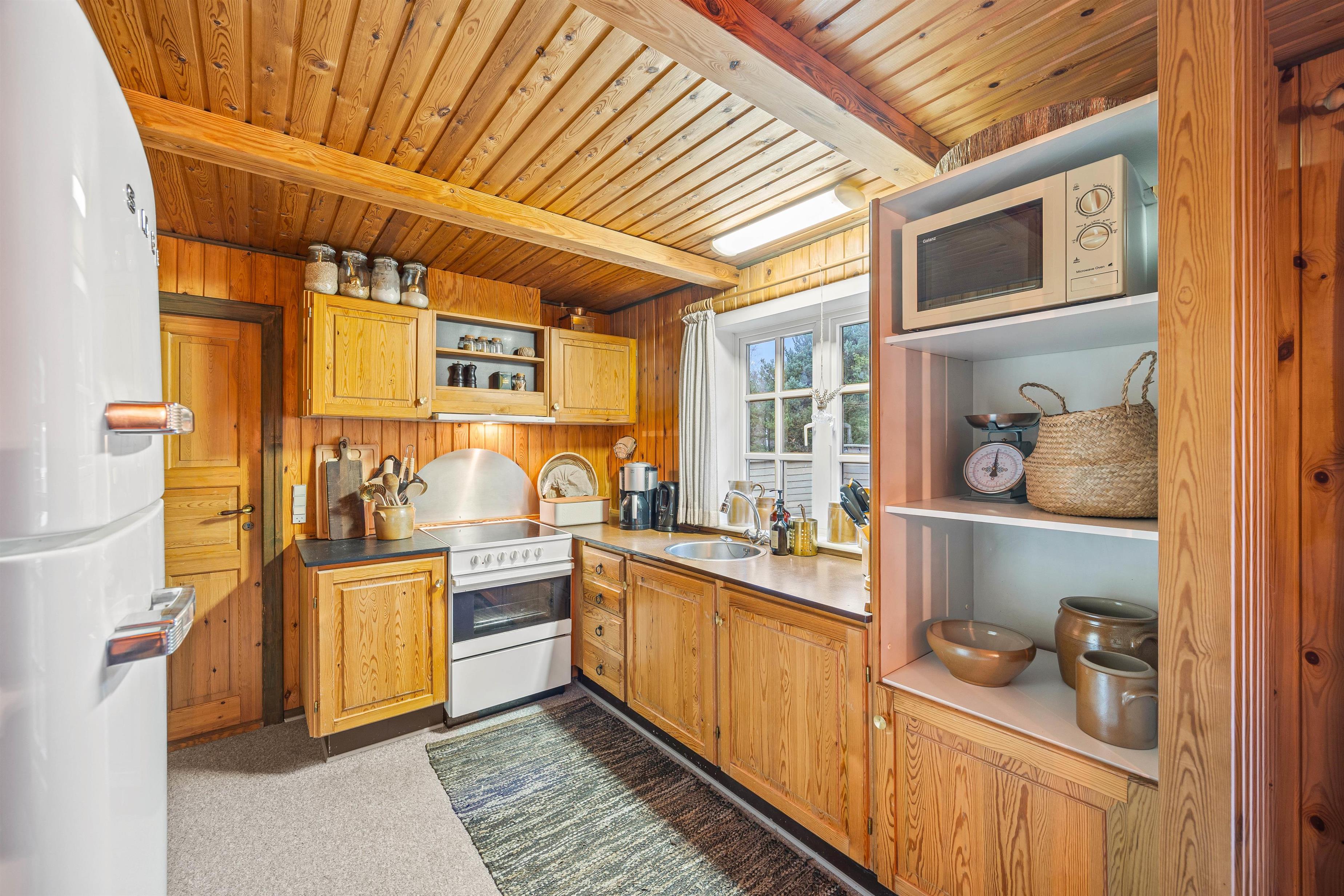 Sommerhuset opvarmes af den energibesparende varmepumpe, som både sikrer godt indeklima og opvarmning til en fornuftig pris. Skal hyggen skrues helt i top, kan I tænde op i brændeovnen og mærke, hvordan varmen fra flammerne breder sig, mens de smukke flammer skaber en skøn atmosfære.