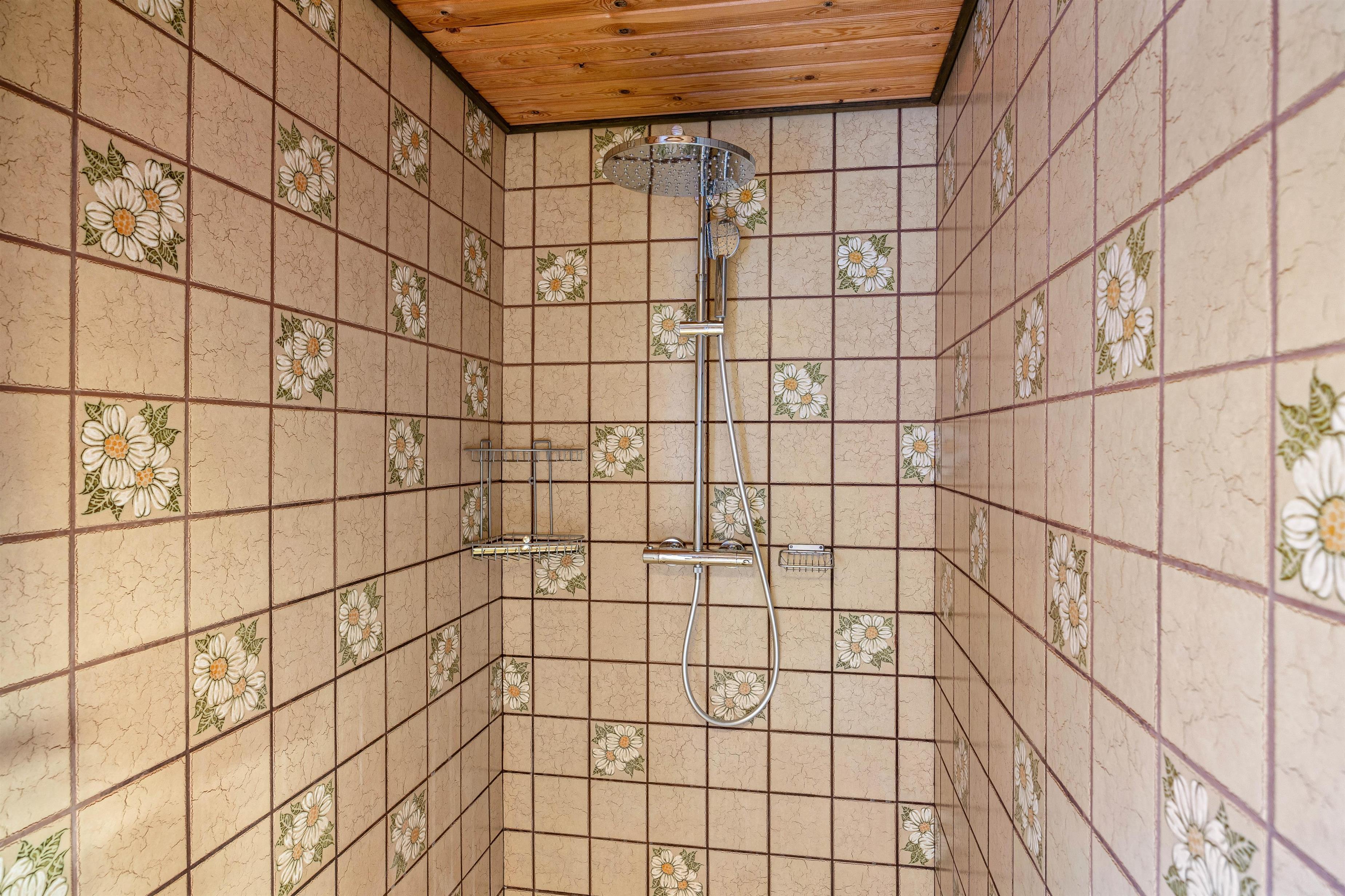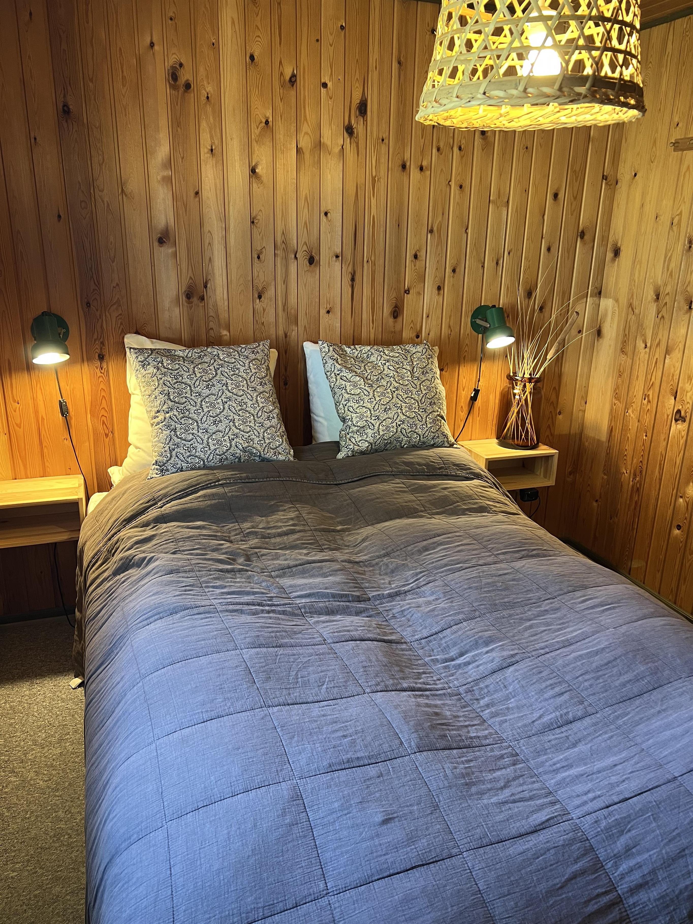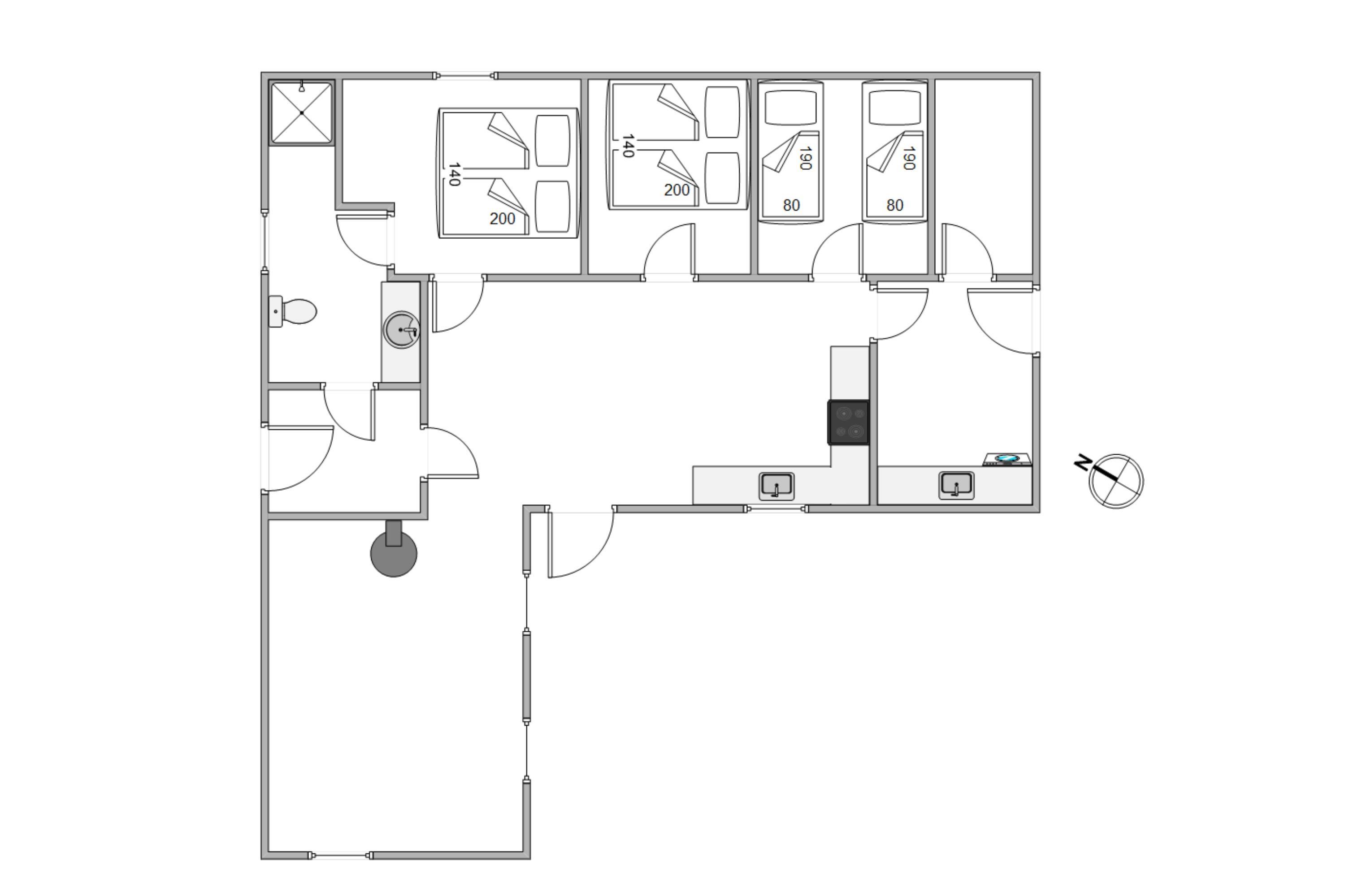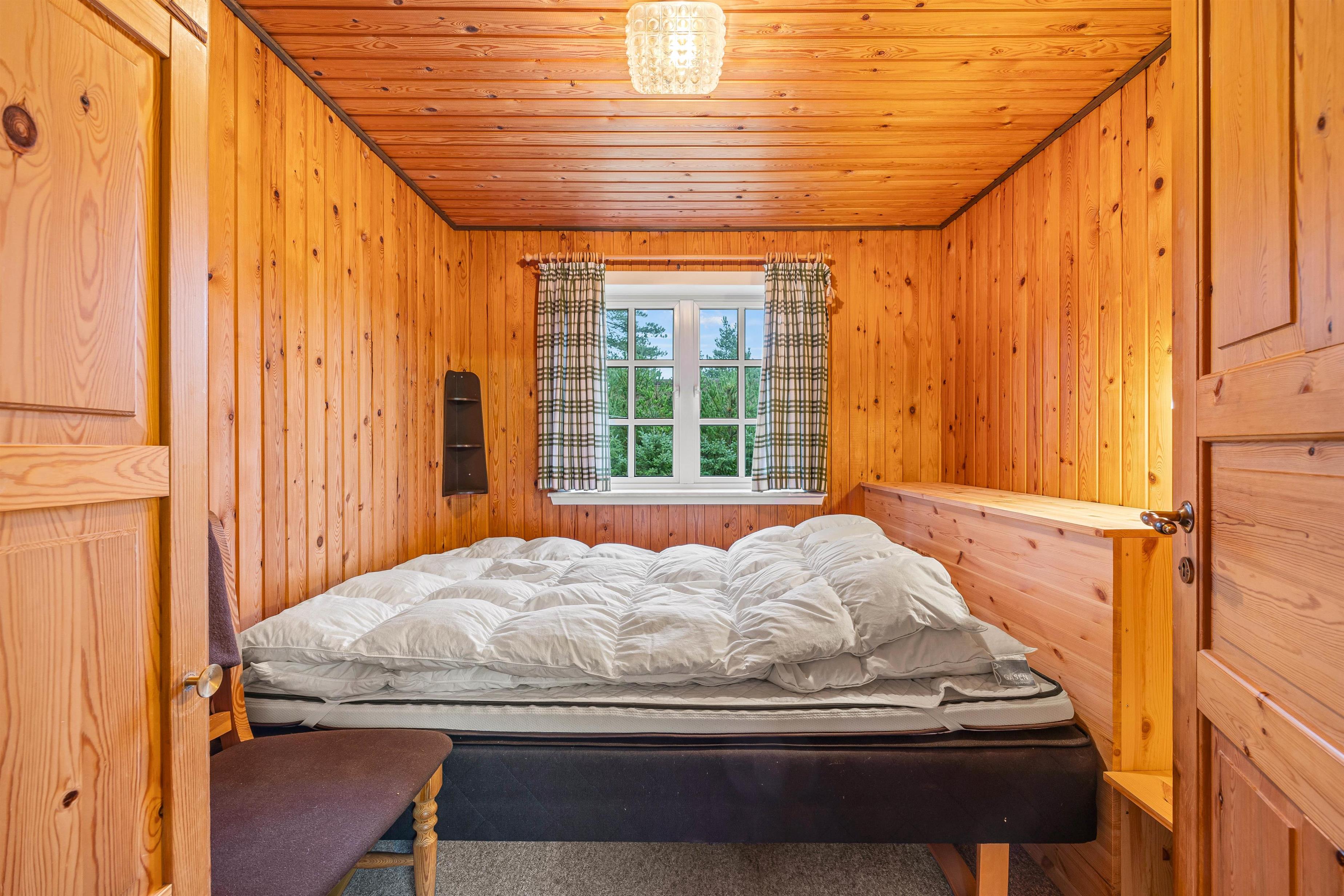 Sommerhuset på 93 kvadratmeter er indrettet med 3 værelser, hvoraf 2 har dobbeltsenge, der måler 140x200 cm, og det sidste har 2 enkeltsenge, der hver måler 80x200 cm. Badeværelset har gulvvarme, så I ikke kommer til at fryse fødderne.