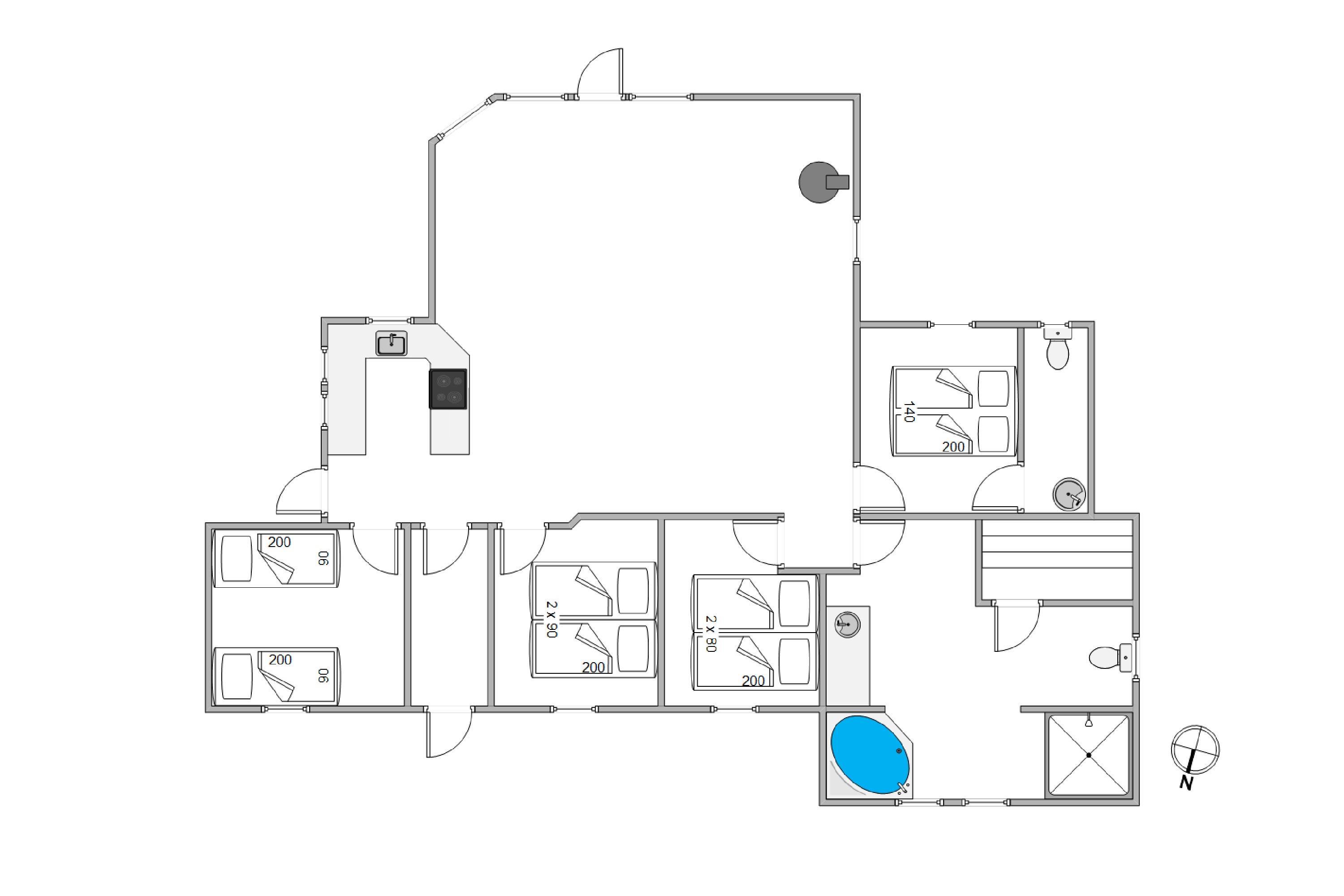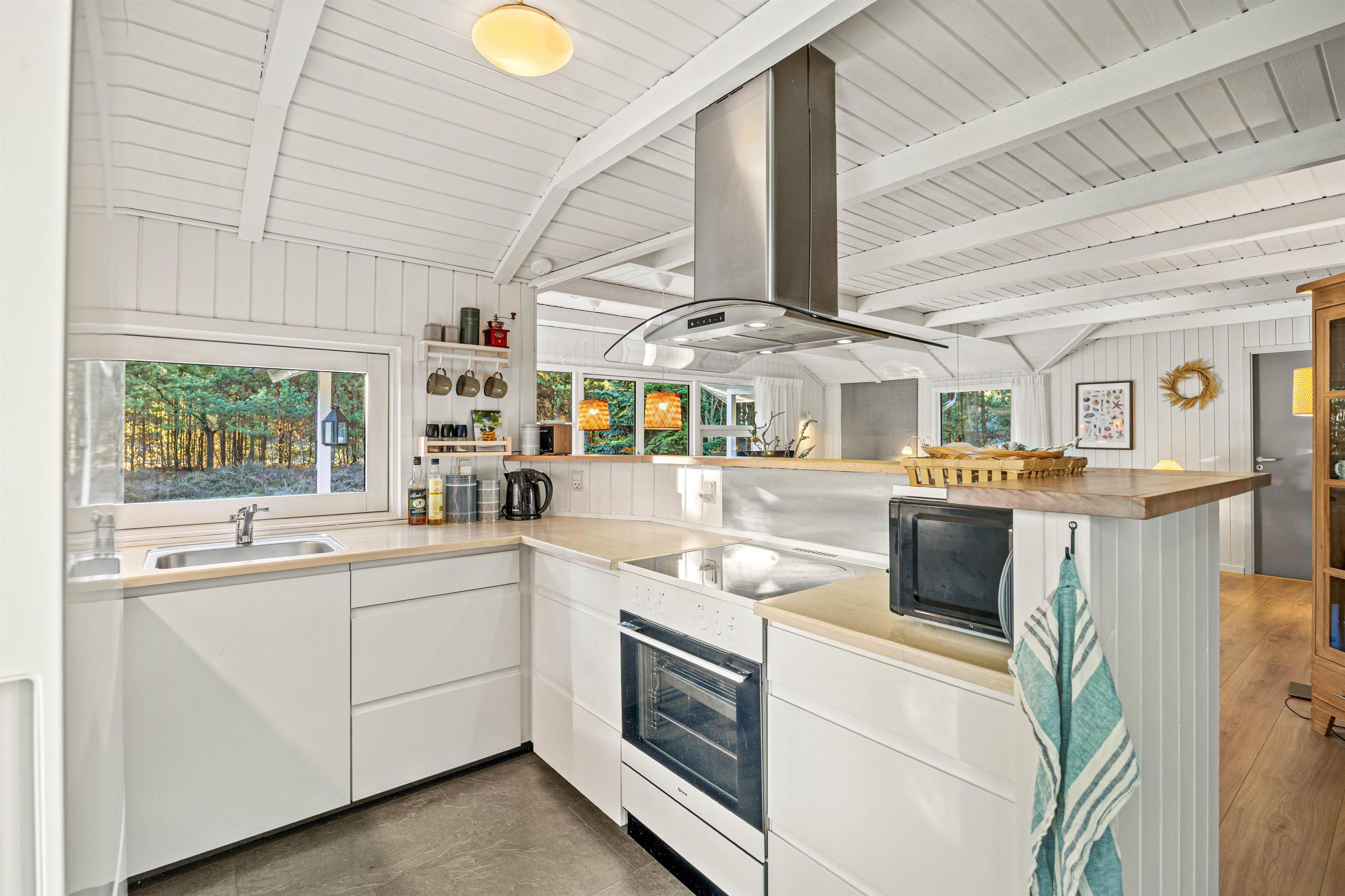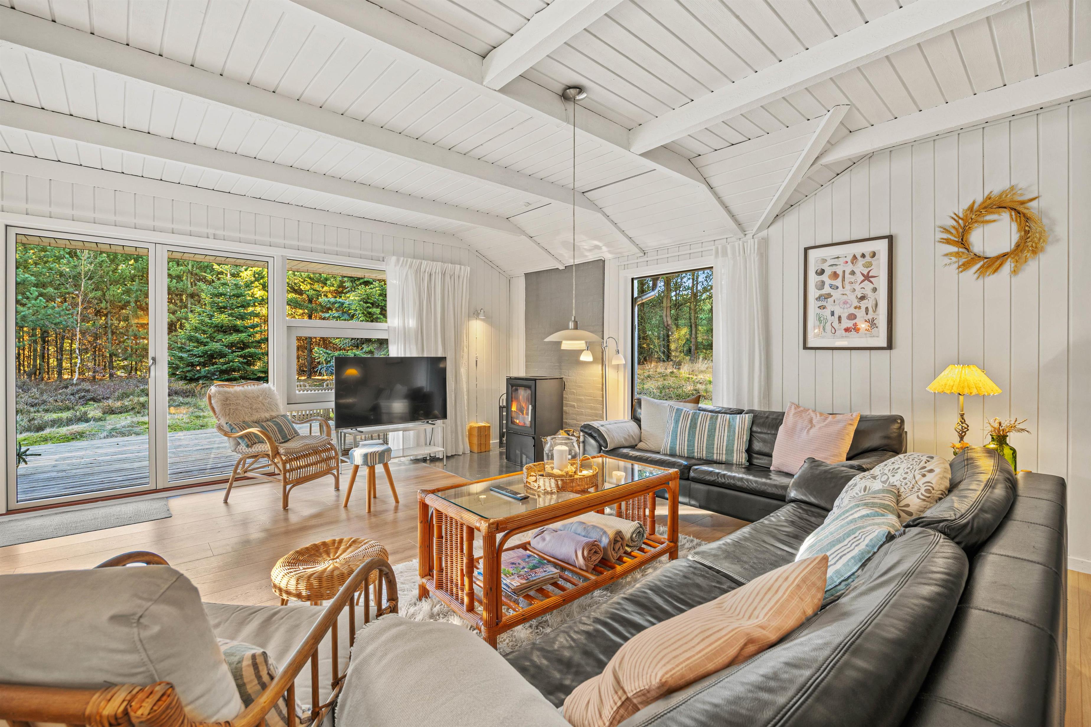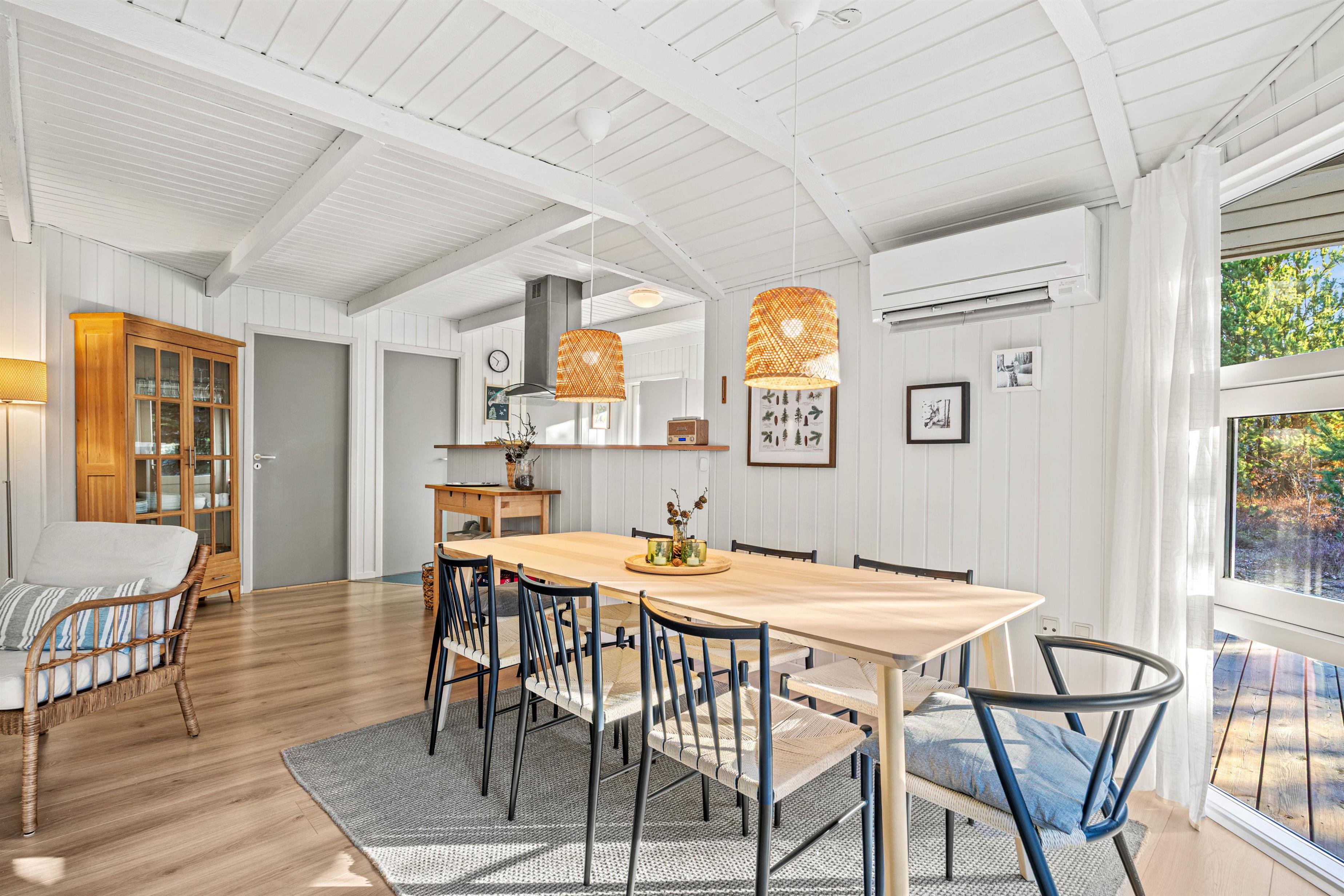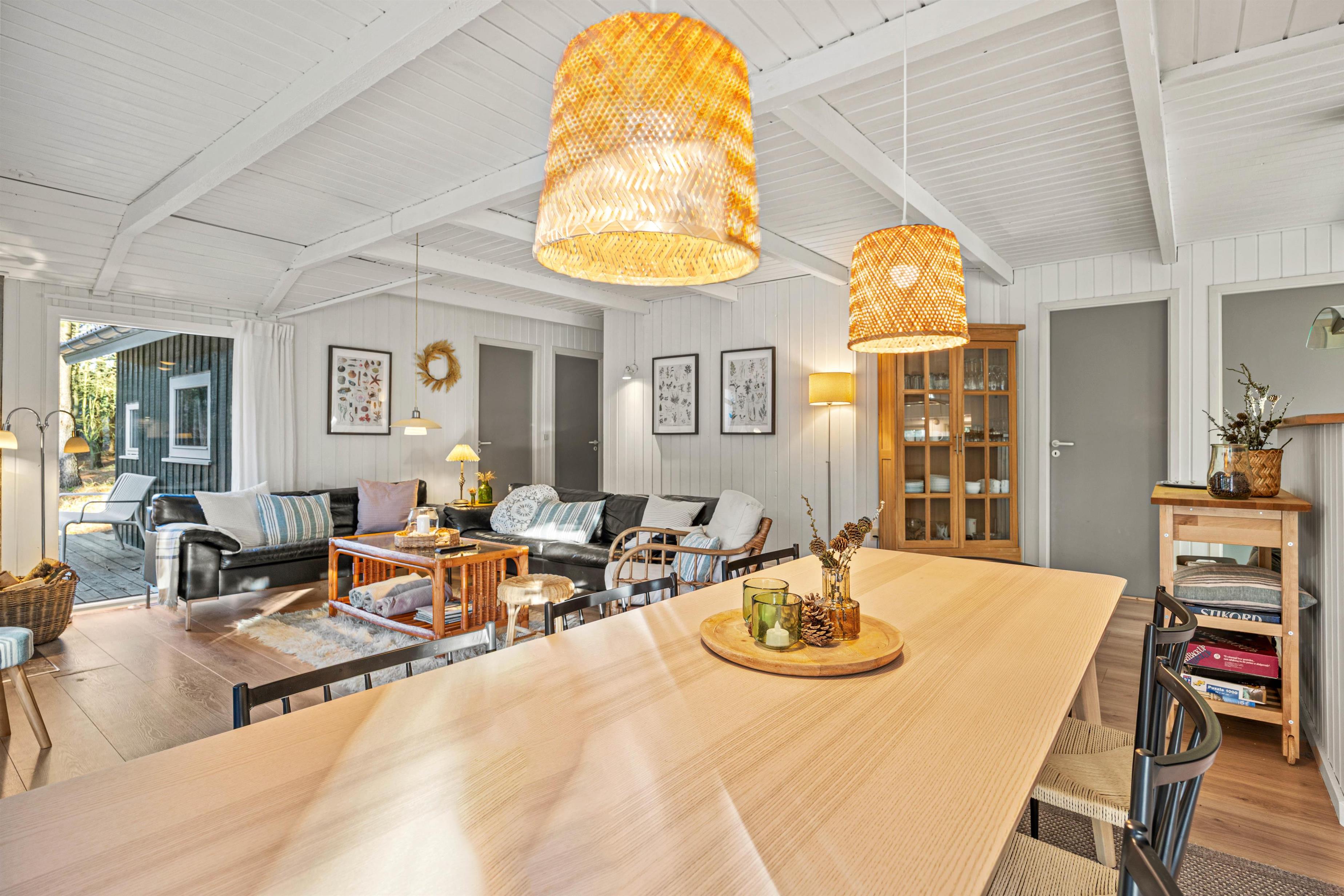 I det rummelige hus er der god plads til de maks 8 personer og hunden, med 4 flotte soveværelser og god skabsplads. Huset fik nyt køkken i 2021 og det store køkken- og spisestueområde bliver centrum for samvær og fællesskab i løbet af ferien, og her bliver der helt sikkert tid til fælles madlavning og hyggelige aftener på sofaen.