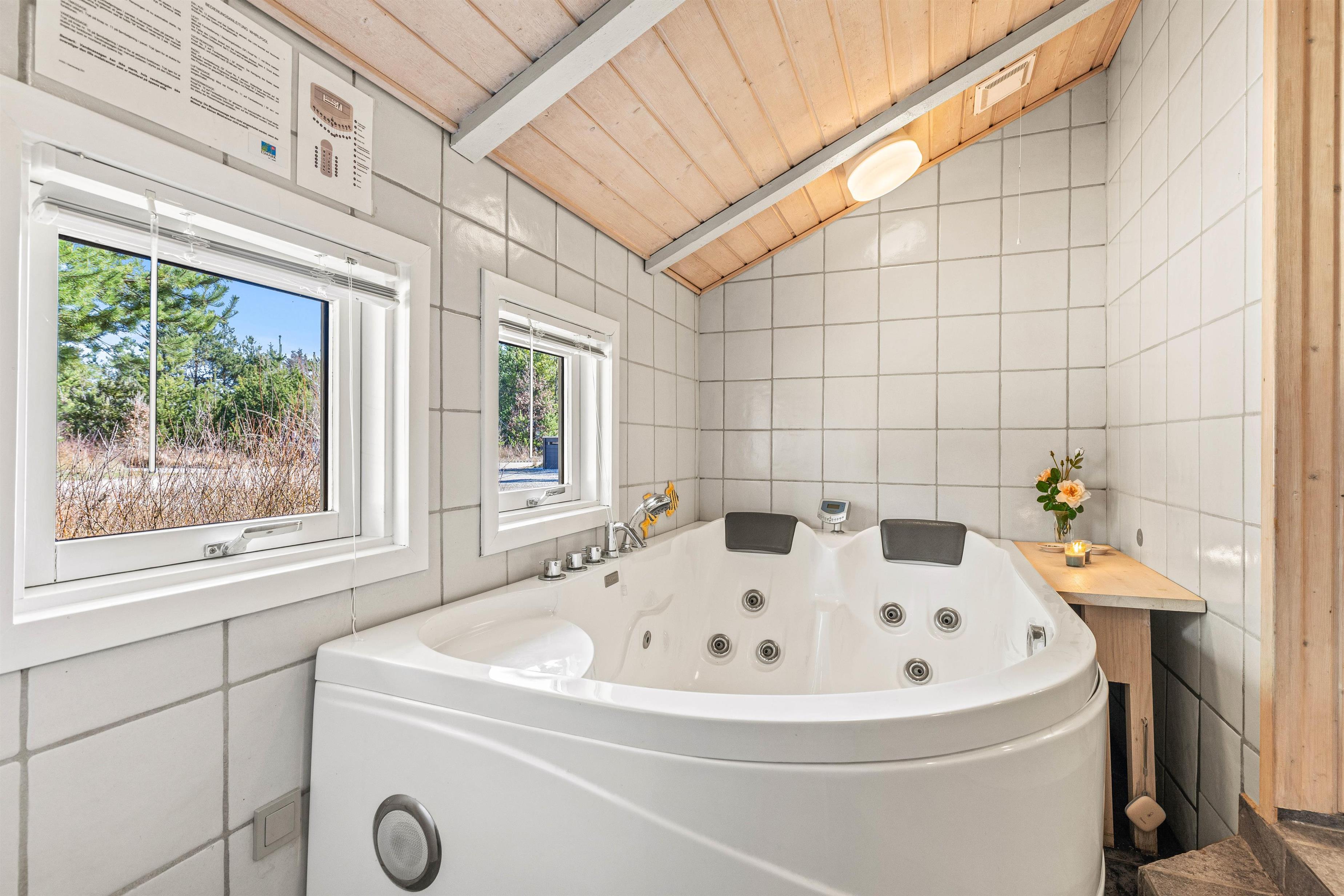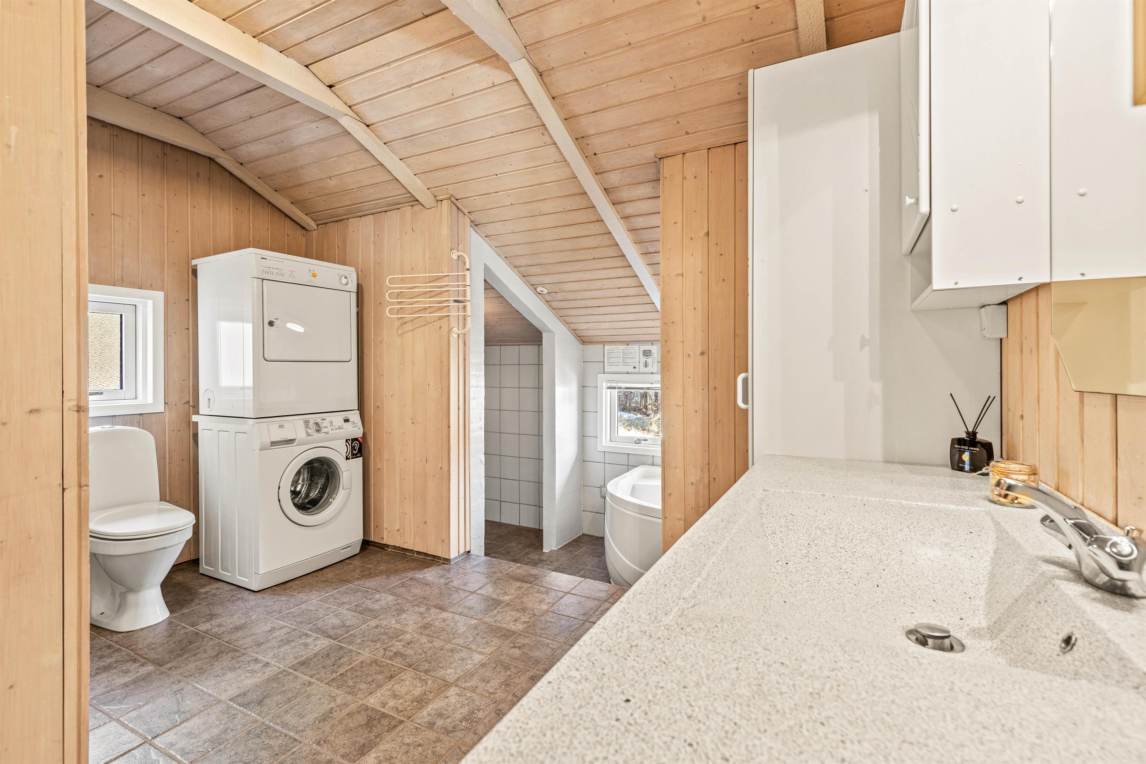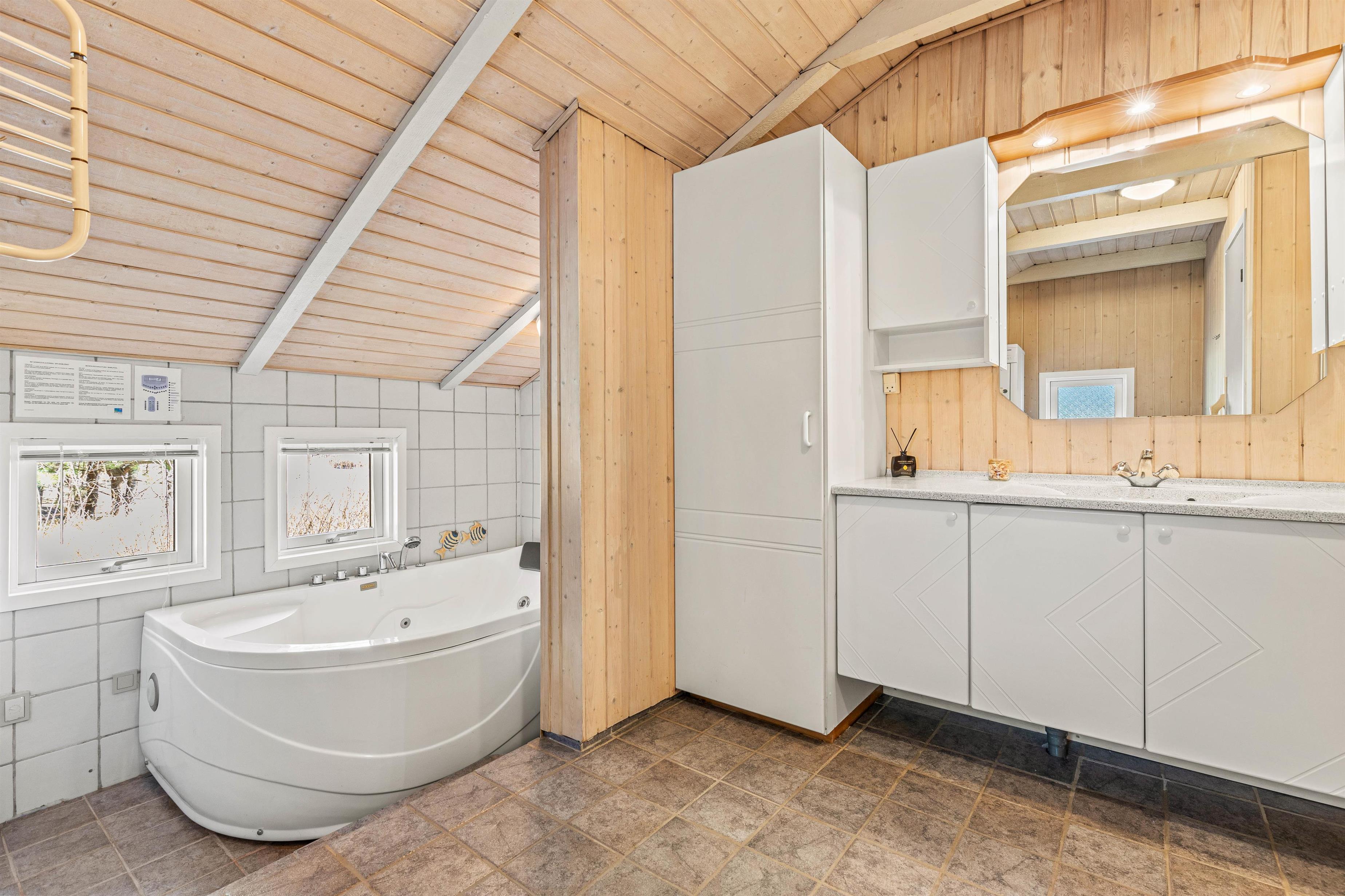 På Nørrevang 231 får I ikke kun masser af godt praktisk udstyr som opvaskemaskine, vaskemaskine og tørretumbler, men også ekstra goder i form af sauna og spabad, som I finder på det store badeværelse.