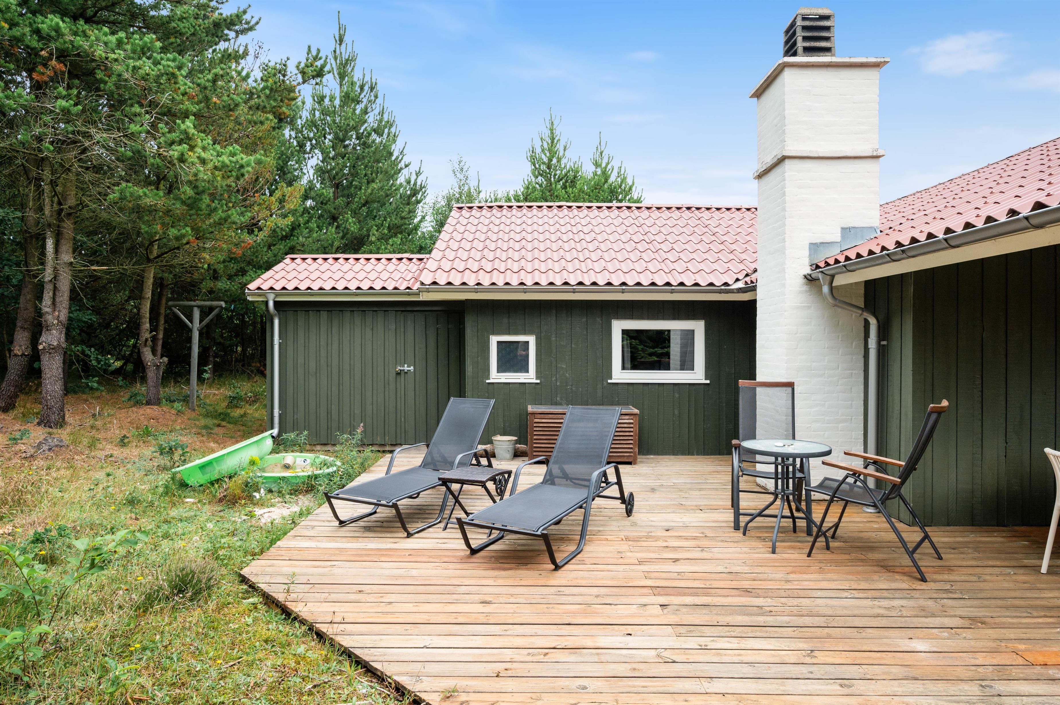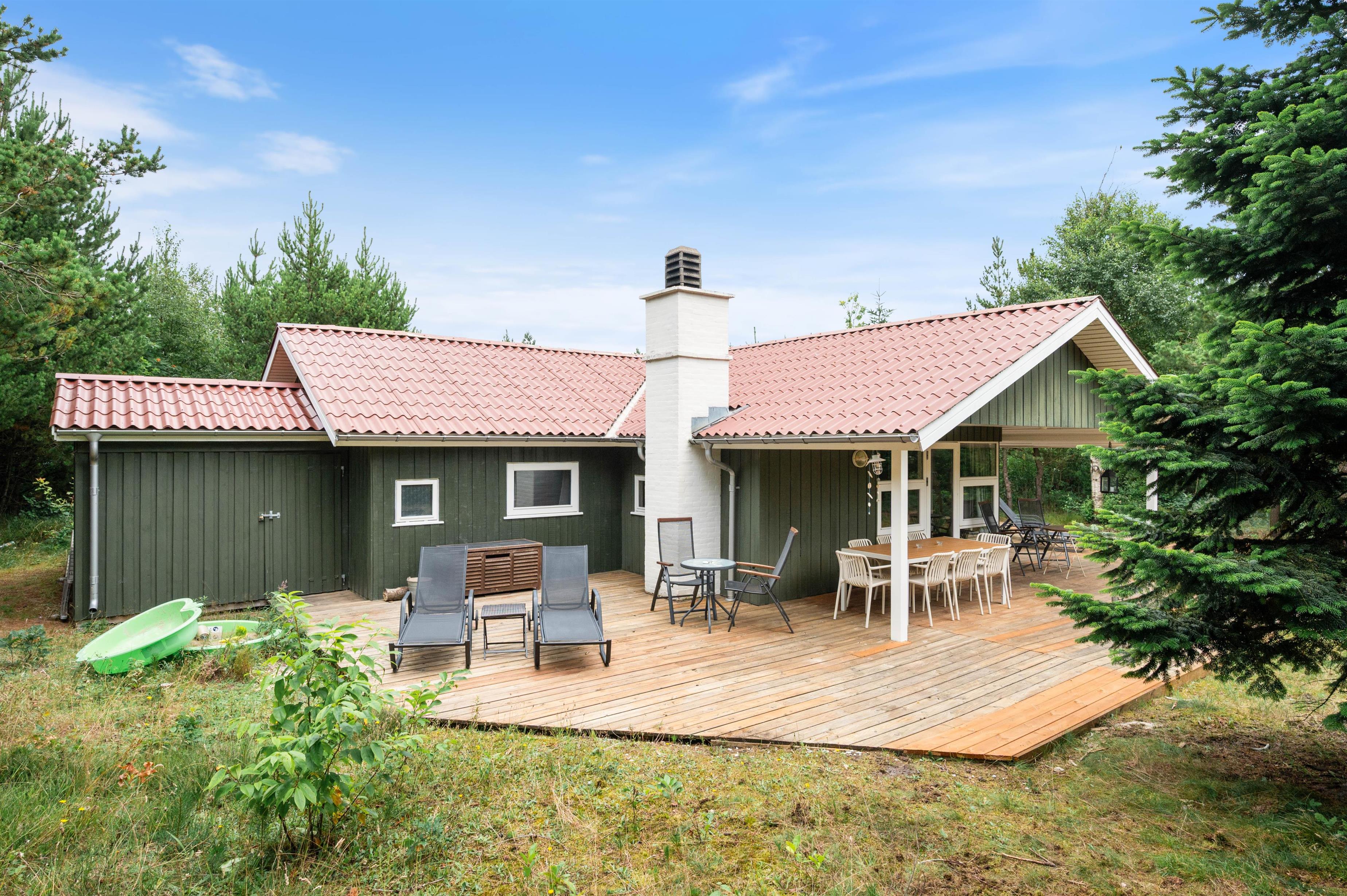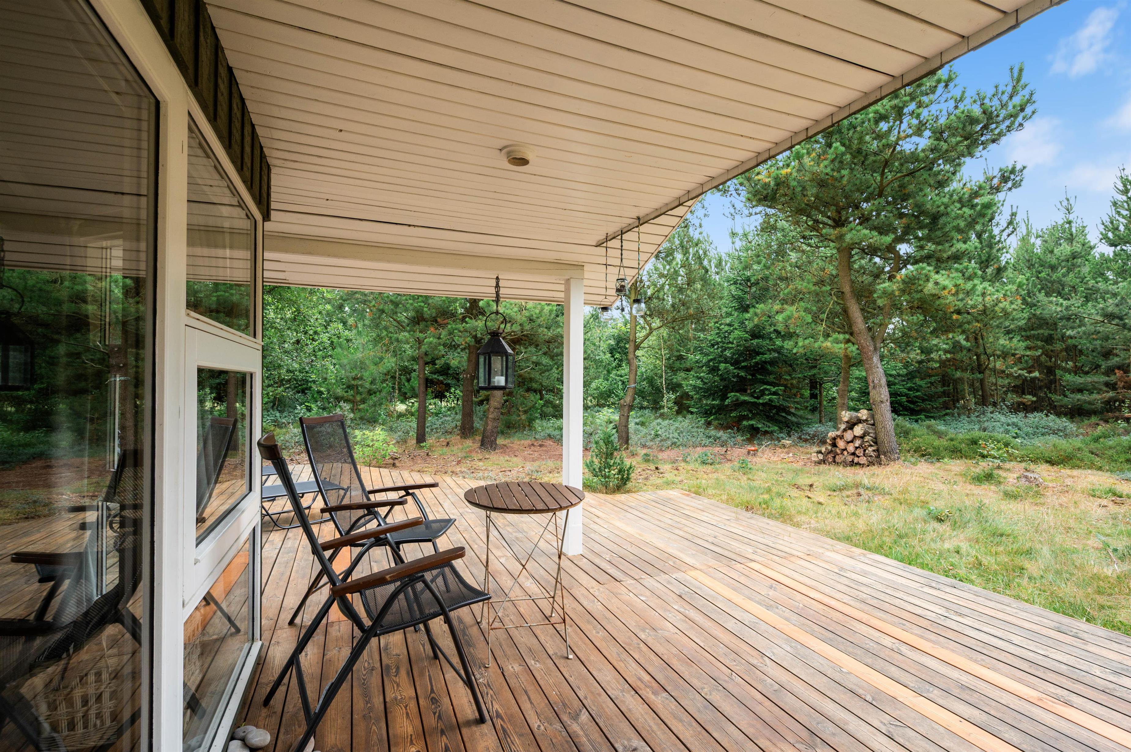 Blandt skovens træer på en smuk naturgrund finder I dette skønne træsommerhus. Huset er rummeligt og rigtig godt udstyret med både spa og sauna, og på den store terrasse er der masser af plads til at slappe af og nyde de flotte omgivelser.
