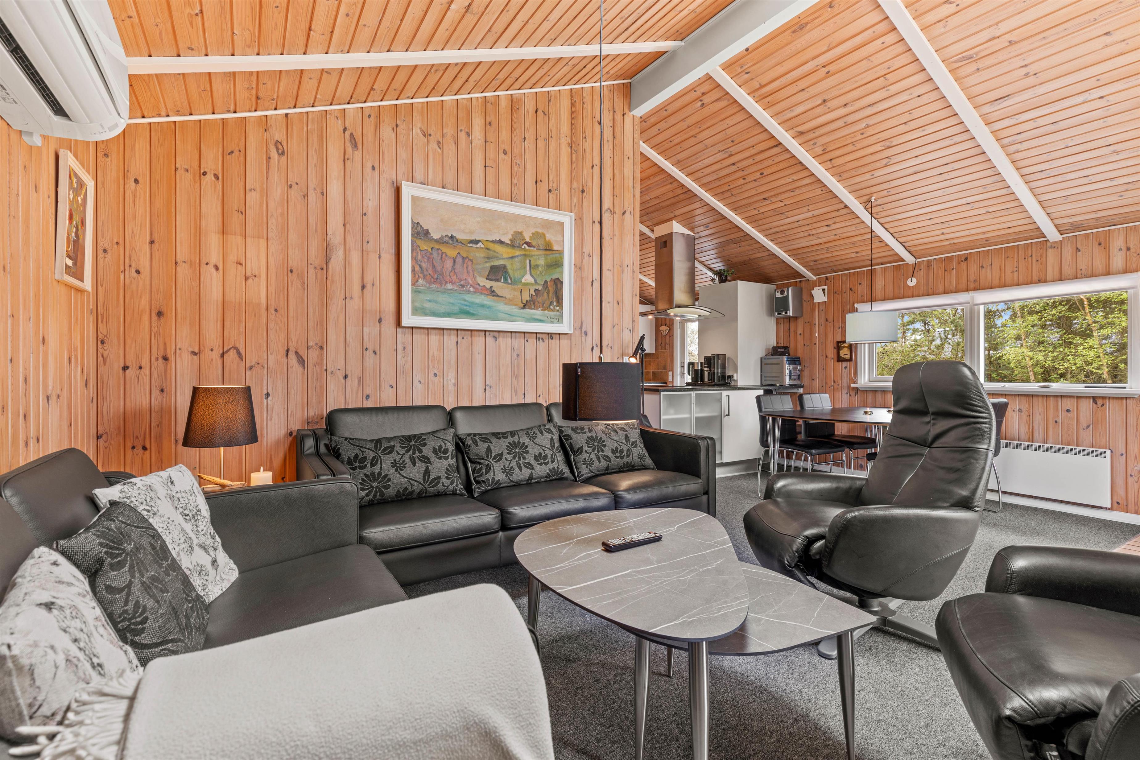 Den personlige indretning kombineret med de klassiske trævægge og lofter sørger for ægte sommerhusstemning fra første ferieøjeblik.