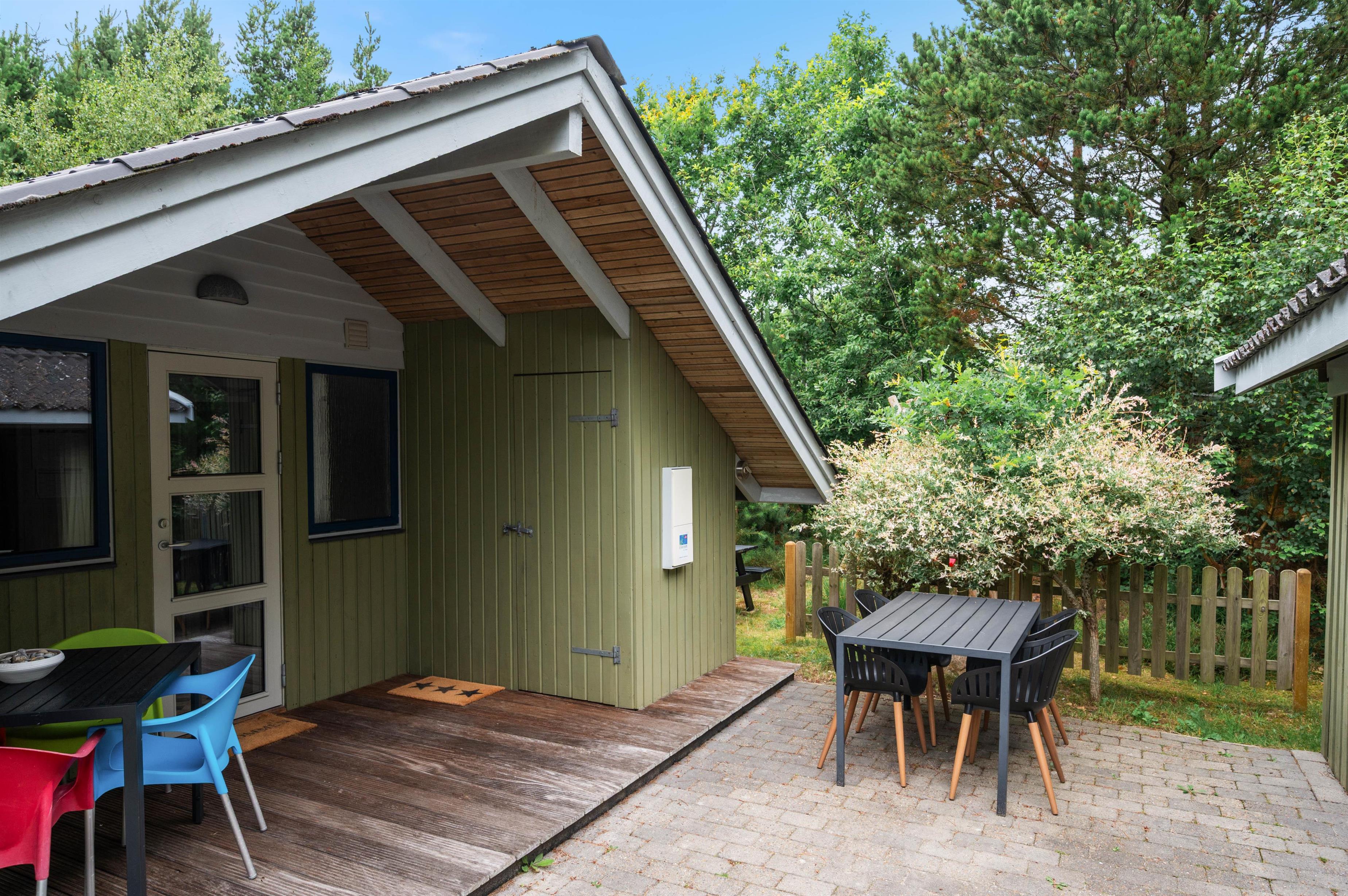Til glæde for de mindste feriegæster, er der sat både sandkasse og gyngestativ op, så de kan lege løs dagen lang. I kan se til fra terrassen, mens I nyder en friskbrygget kop kaffe og et lækkert stykke kage i de ugenerede omgivelser, eller mens aftensmaden bliver tilberedt på grillen. På den overdækkede terrasse kan I grille og nyde de smukke solnedgange i al slags vejr.