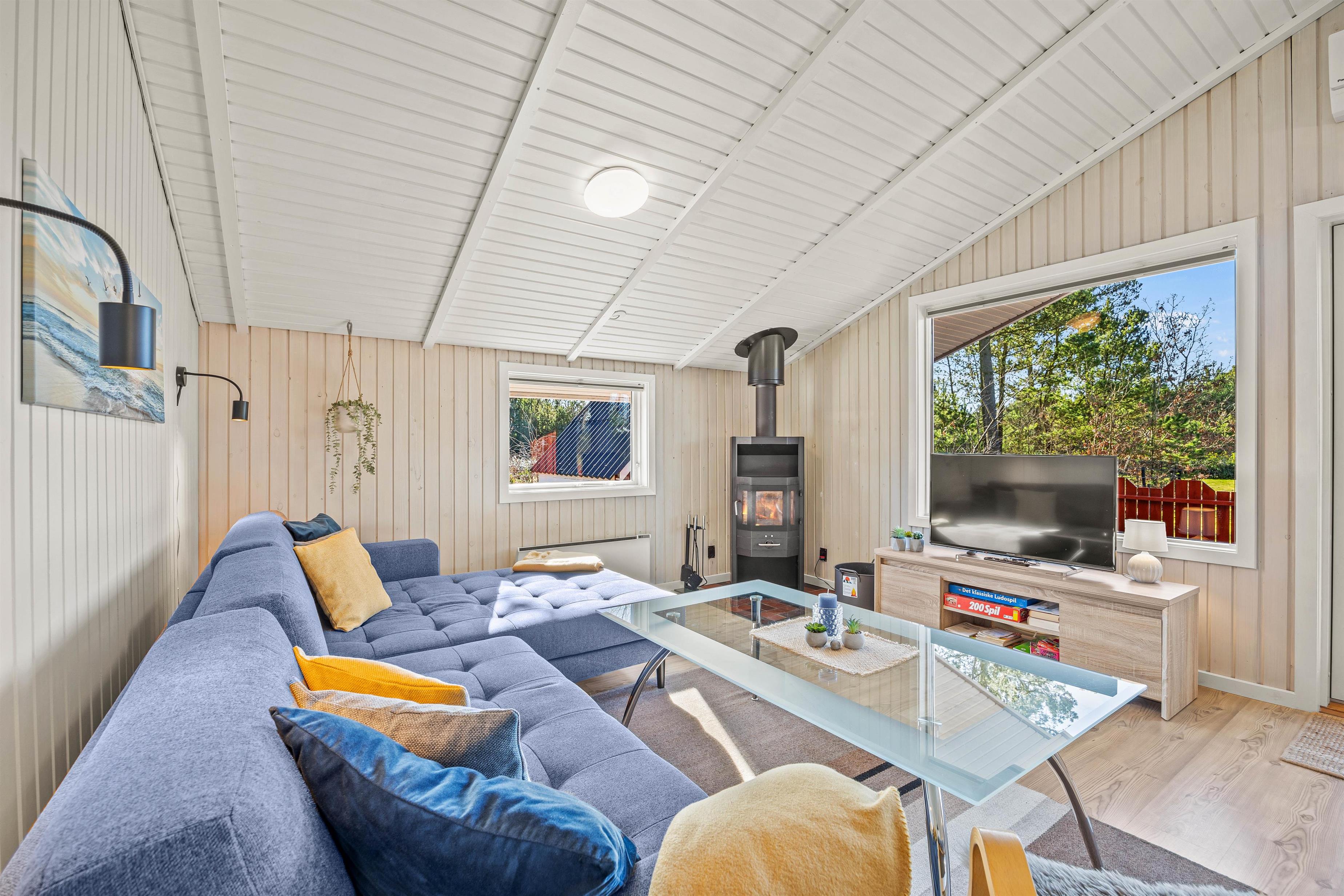 I dette sommerhus kan man kun få en god ferie, og ud over den moderne indretning og den 3.415 m² store grund, råder huset over både en sauna og en lukket terrasser. Her kan I rigtig slappe af på de solrige dage, og I behøver ikke bekymre jer om, at børnene og hunden begynder at udforske området på egen hånd. Terrassen er også perfekt til en hyggelig grillaften i godt selskab.