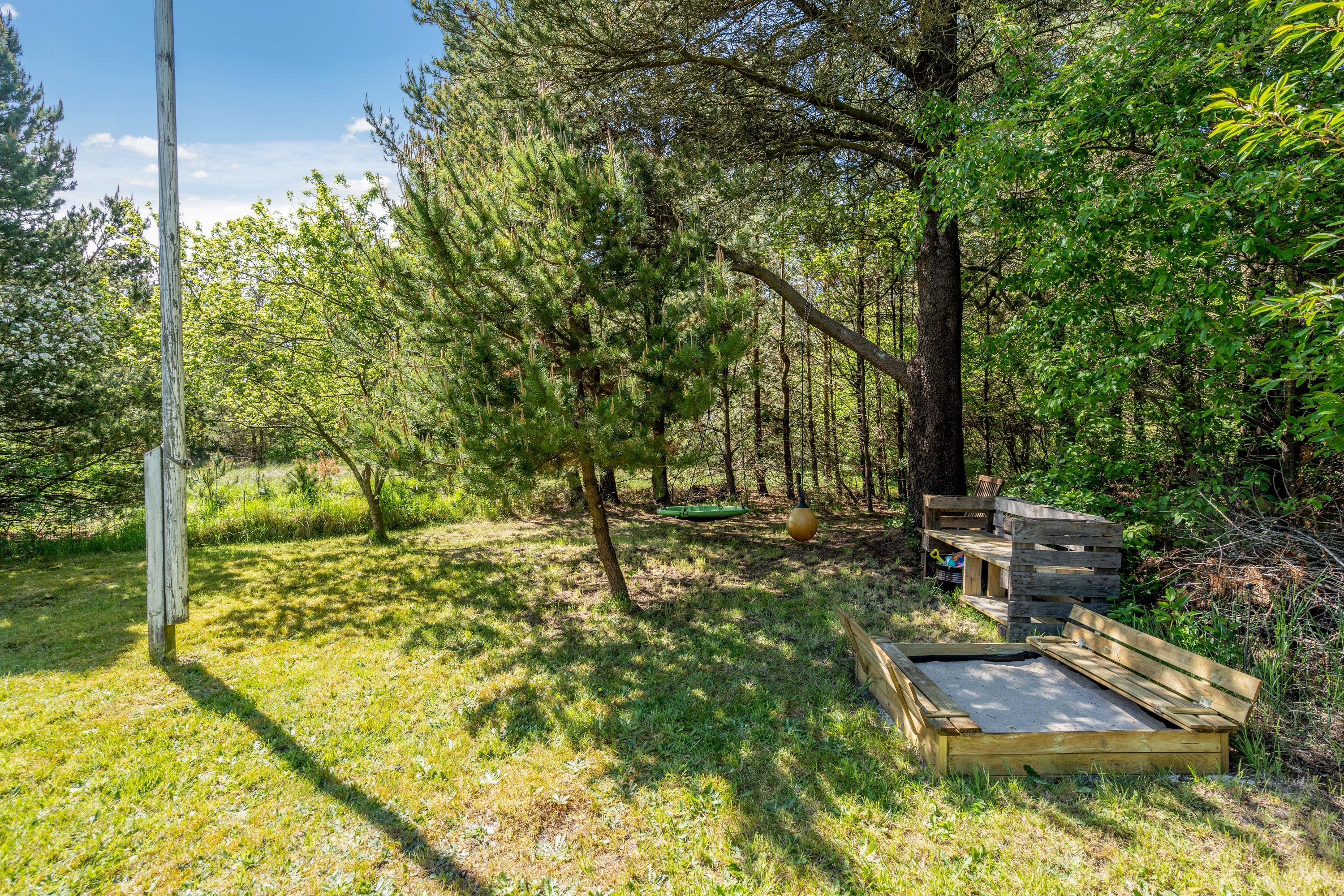 Den mere end 2.400 kvadratmeter store plænegrund er indhegnet med et 60cm højt hegn, så I ikke behøver at bekymre jer om, om børnene eller de små hunde kommer for langt væk, når de udforsker den spændende natur.
