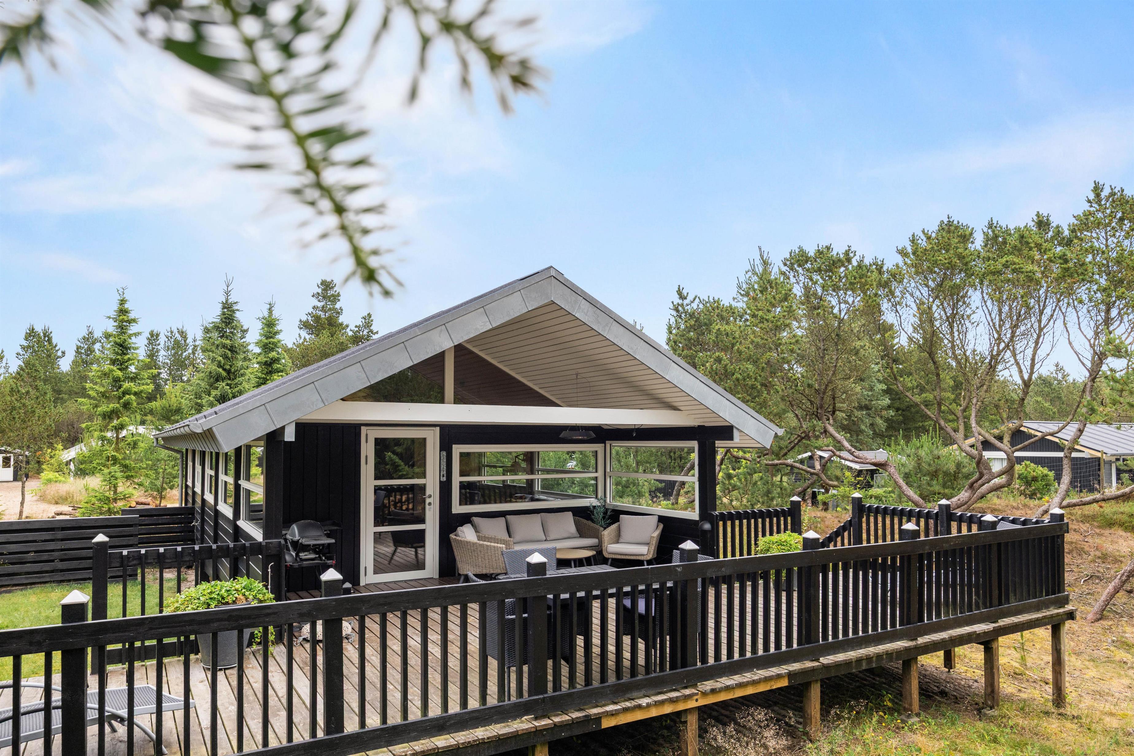 Dette klassiske sommerhus byder på en hyggelig ferie langt væk fra den stressende hverdag. Den store balkonterrasse i træ giver jer god plads til at slappe af og nyde naturen, og det lille hus er fyldt med skøn feriestemning.
