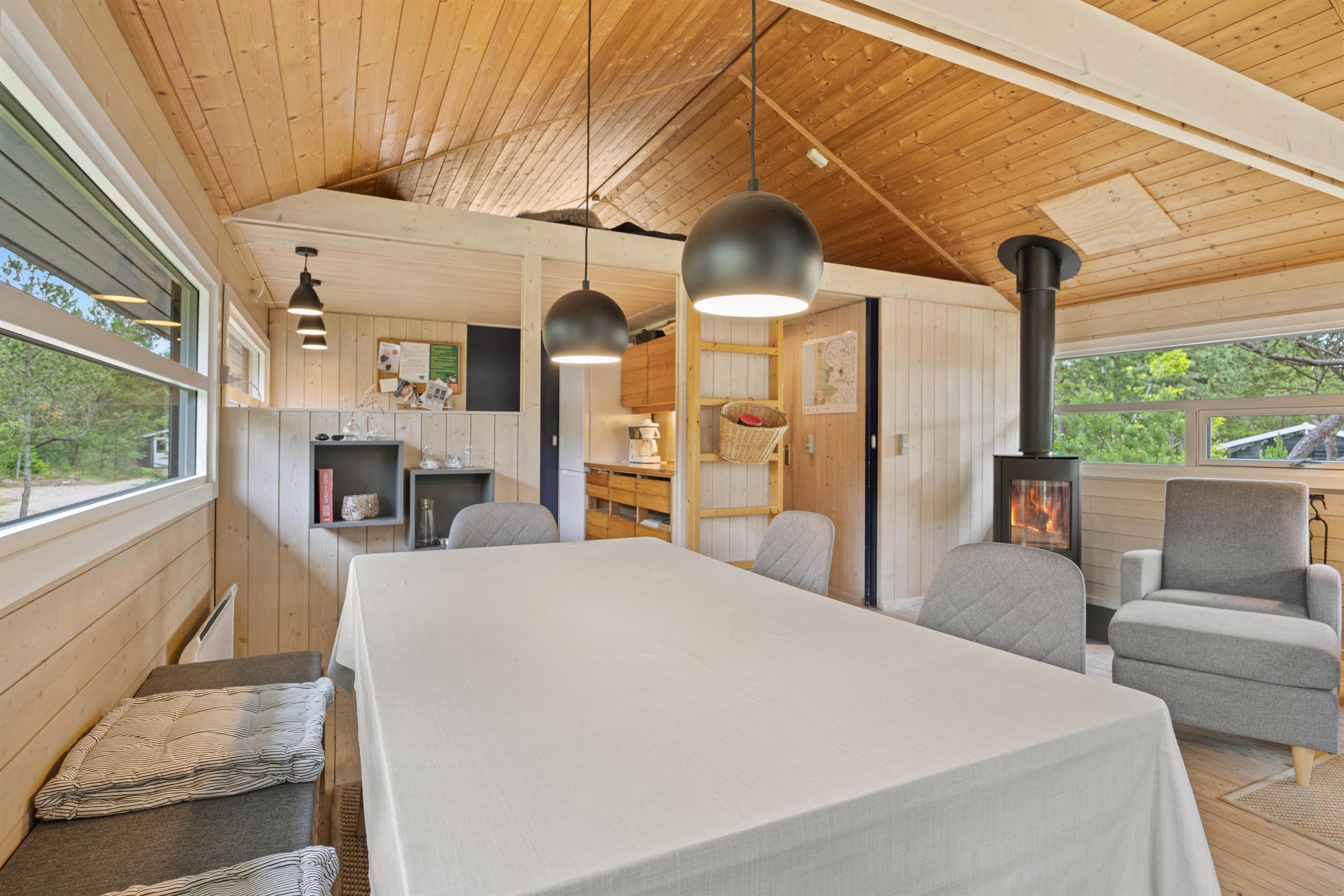 Rundt om spisebordet kan I nyde et godt måltid og snakke morgendagens planer igennem, inden aftenen fortsætter inde på sofaen, hvor der kan slappes af med en spændende bog eller en god filmklassiker foran den knitrende brændeovn.