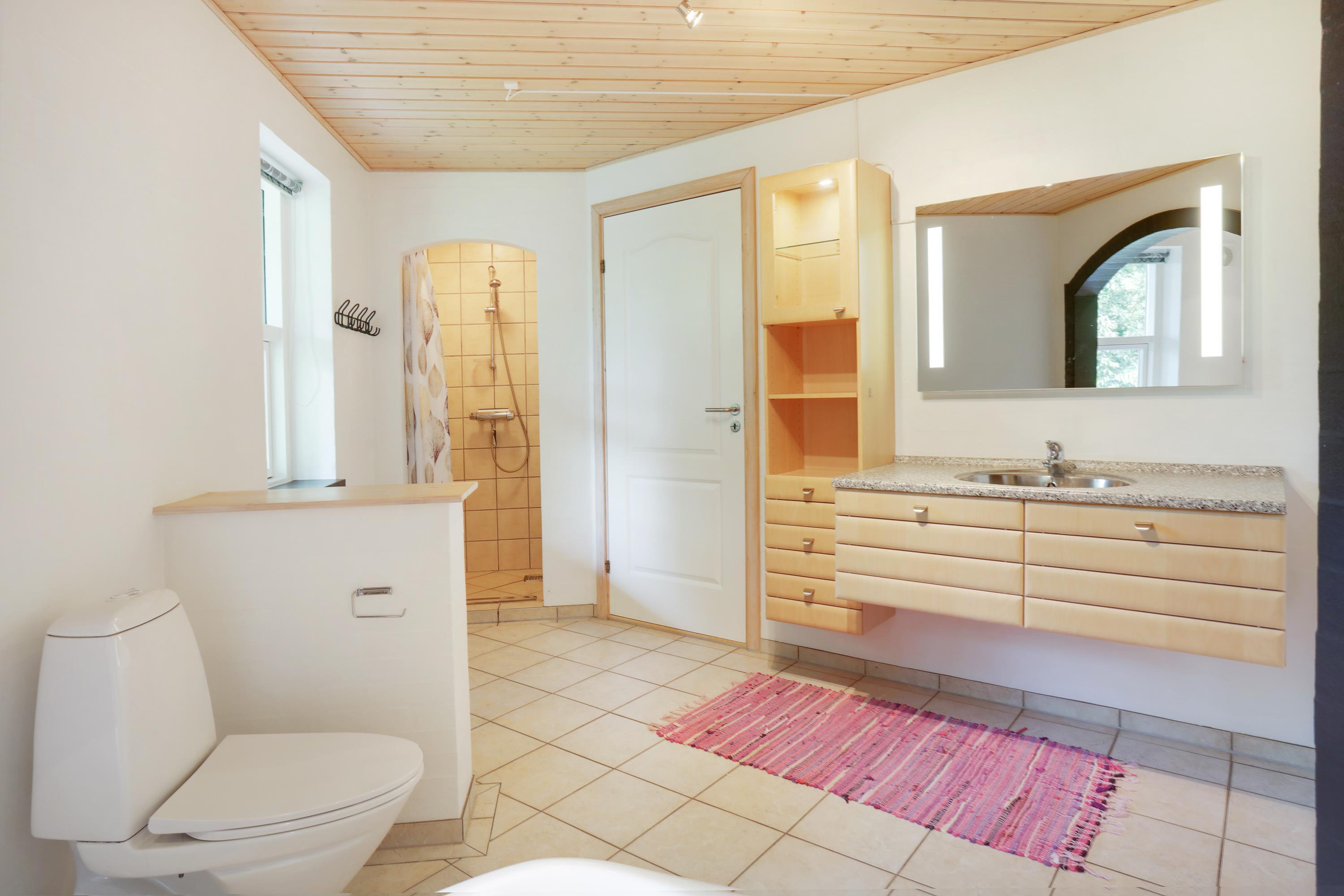 Det bliver nemt at vænne sig til det store badeværelse, der endda er udstyret med både sauna og spabad. Her kan I med sikkerhed glemme hverdagens stress og jag, mens I læner jer godt tilbage i varmen og slapper af.
