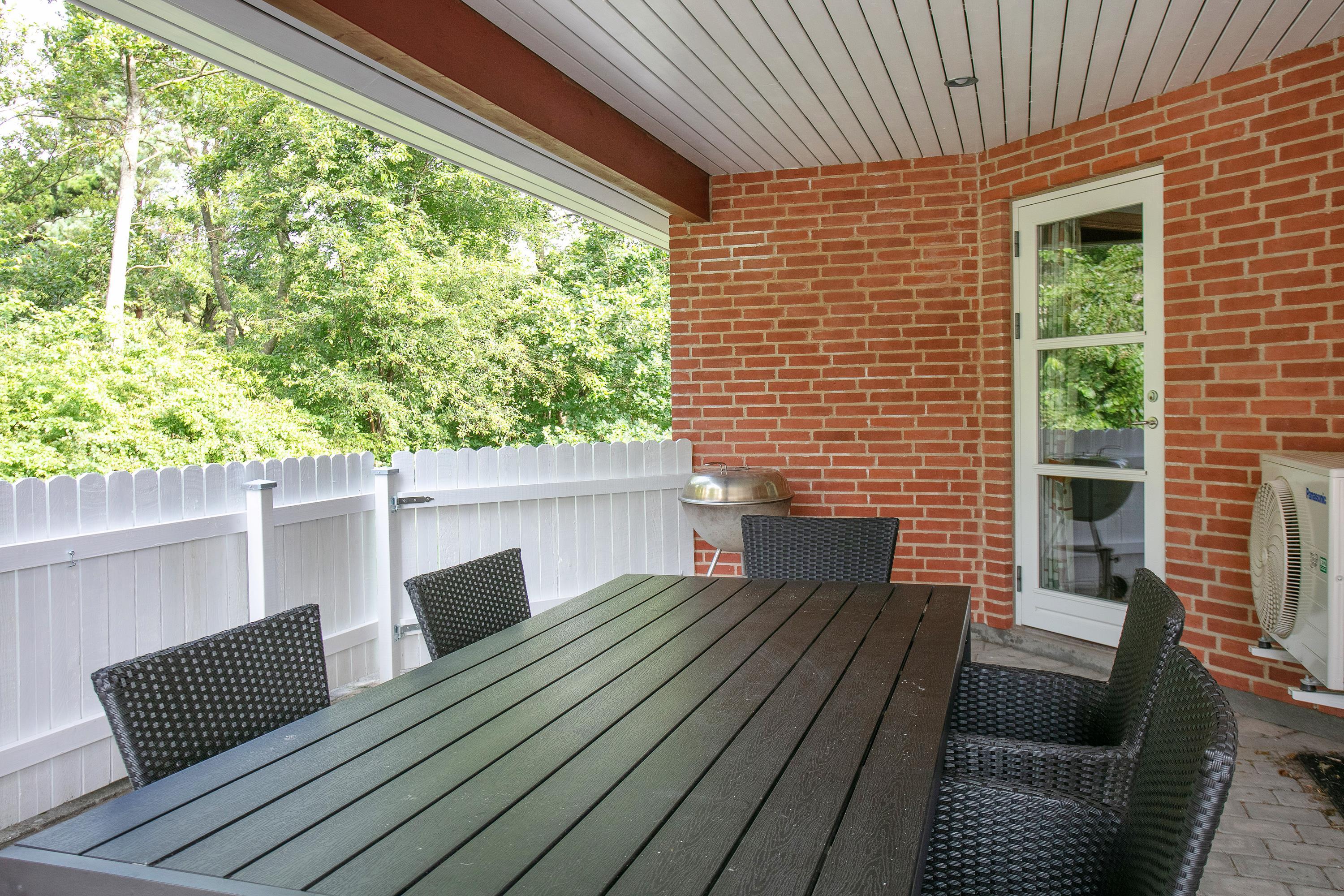 I feriehuset er helt op til 3 hunde tilladt, og de vil elske at få lov til at tumle og lege sammen med børnene på den store græsplæne, som er omgivet af træer. Her står også et gyngestativ, og på den store terrasse, der er delvist overdækket, står havemøblerne, liggestolene og grillen klar, så I kan nyde det gode vejr dagen lang.