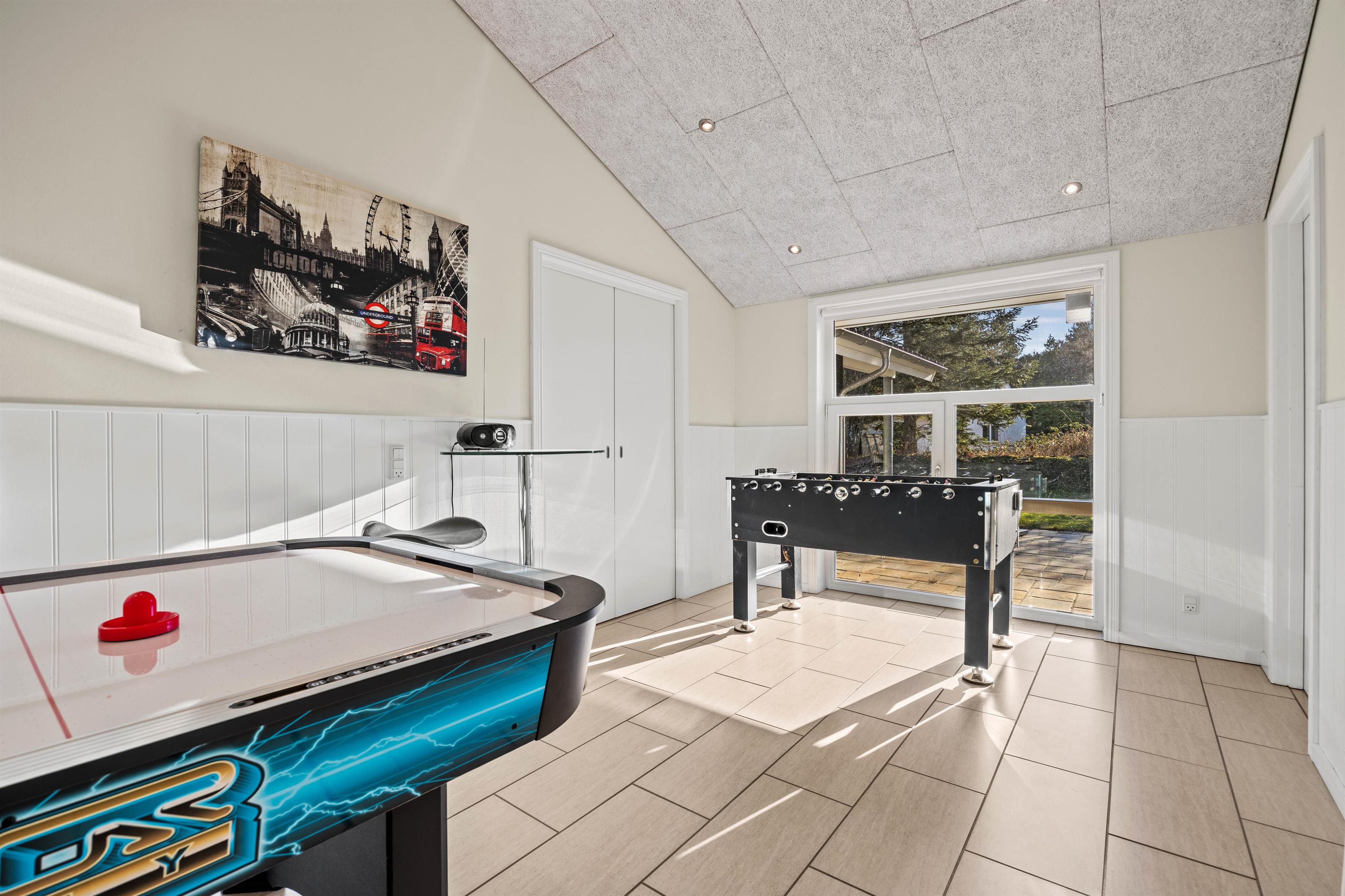 På det store badeværelse er der både spabad og sauna, og her kan I rigtig forkæle jer selv og hinanden. Tænd op for varmen, og måske et par stearinlys, og læn jer tilbage, mens børnene bliver underholdt i det store aktivitetsrum.