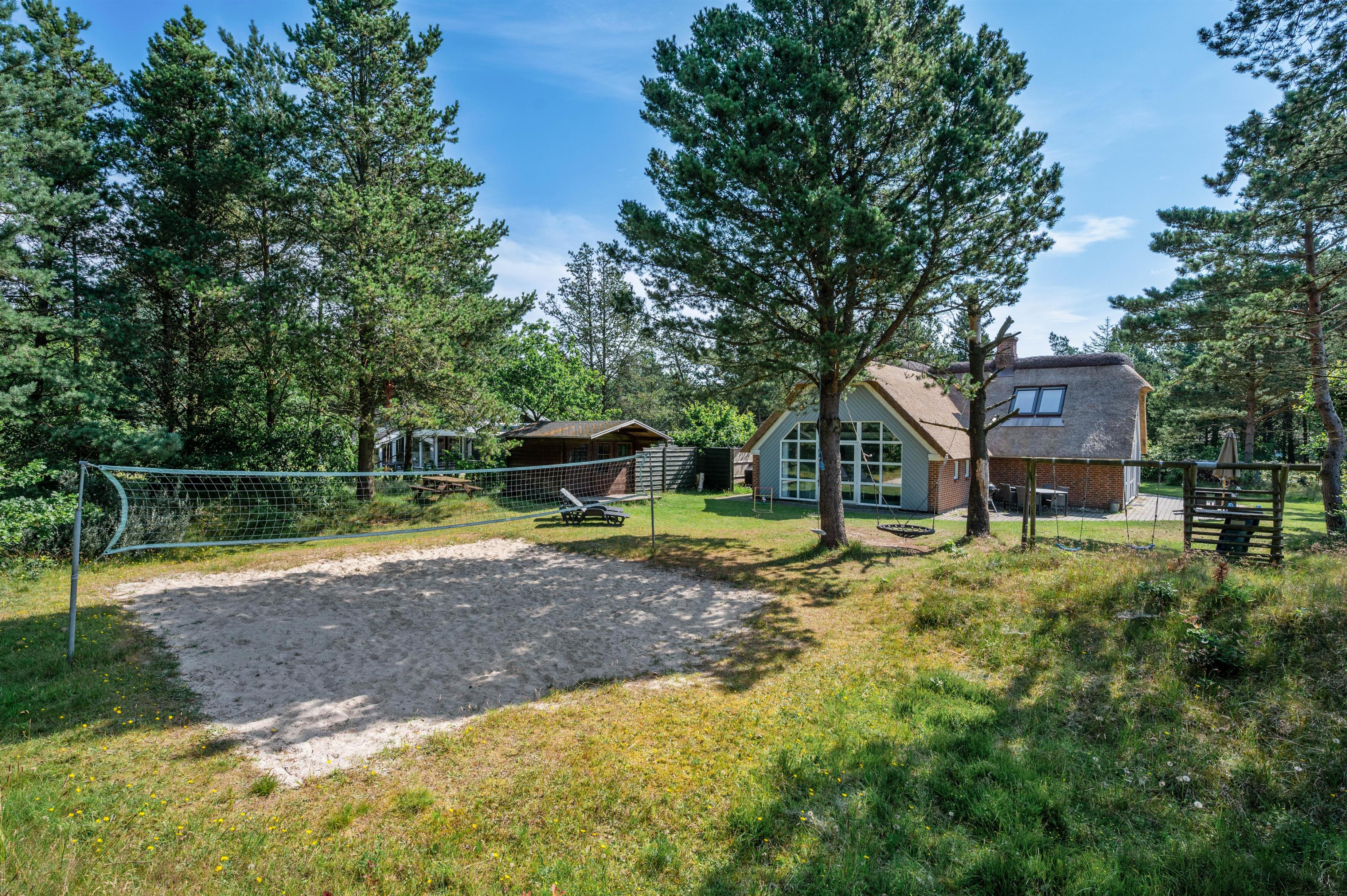 På grunden har I blandt en volleybane, hvor I kan spille volleyball i løbet af ferien. Skal I mon have arrangeret en turnering, så I kan finde feriens bedste volleyhold?