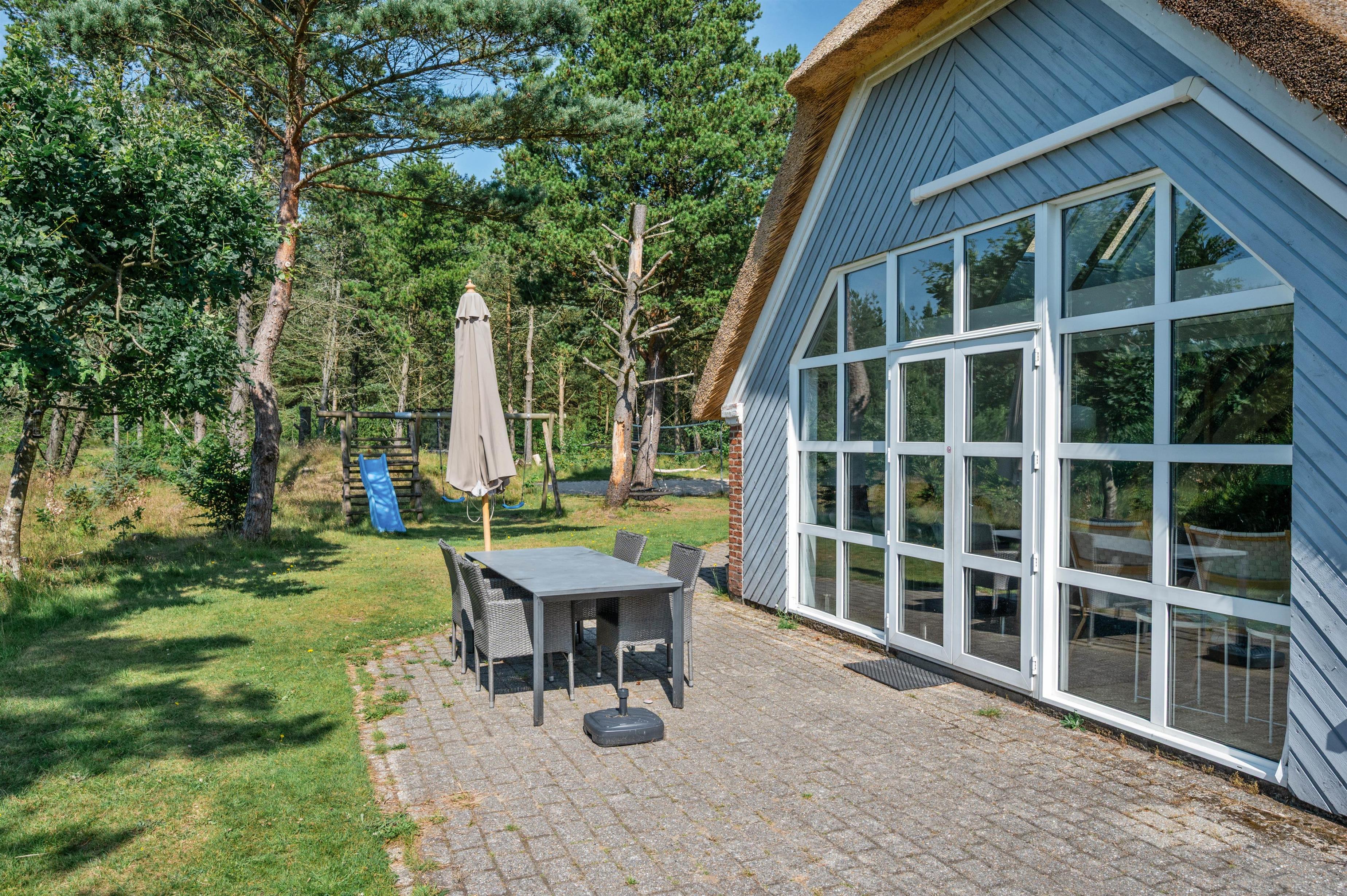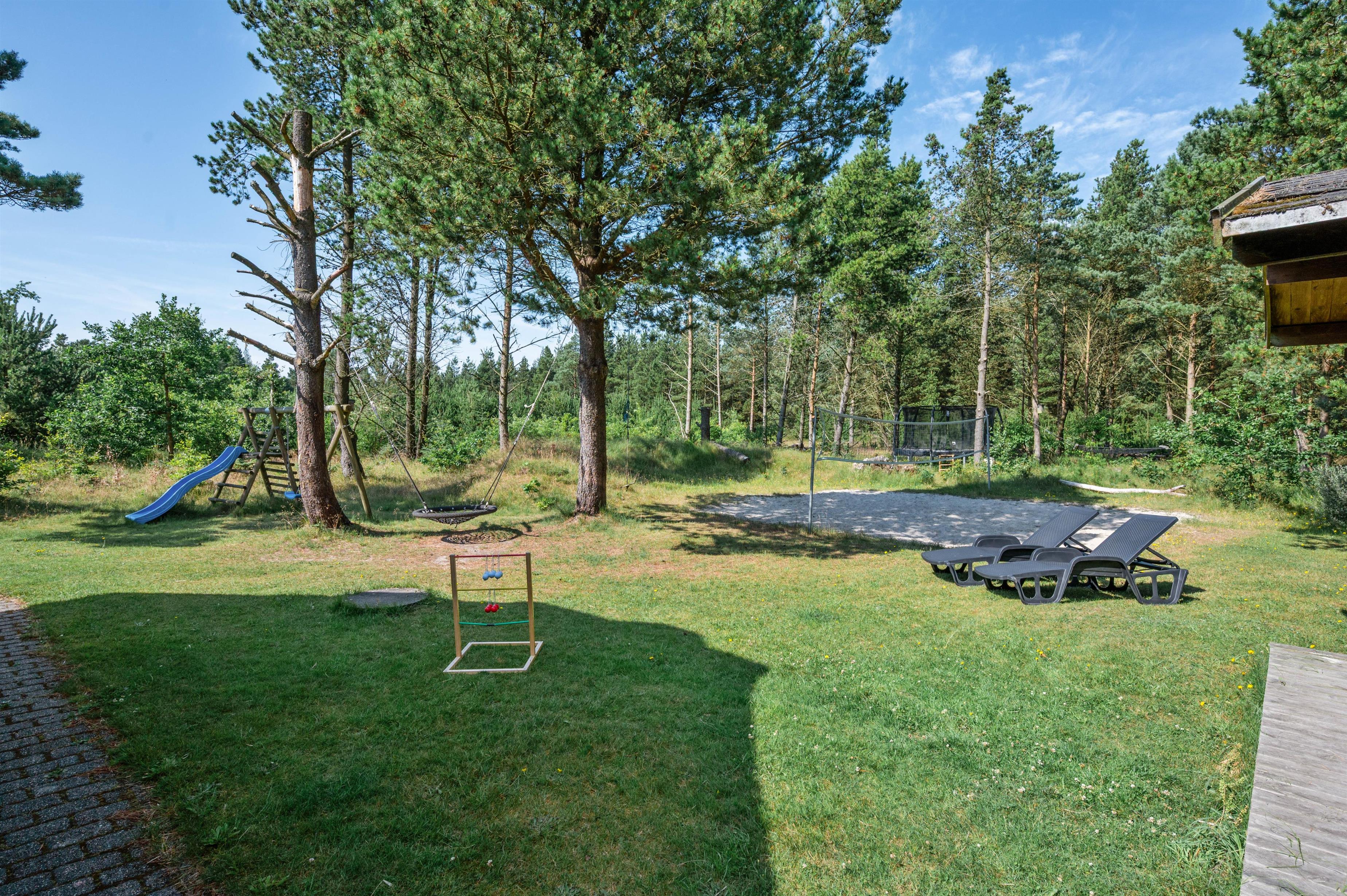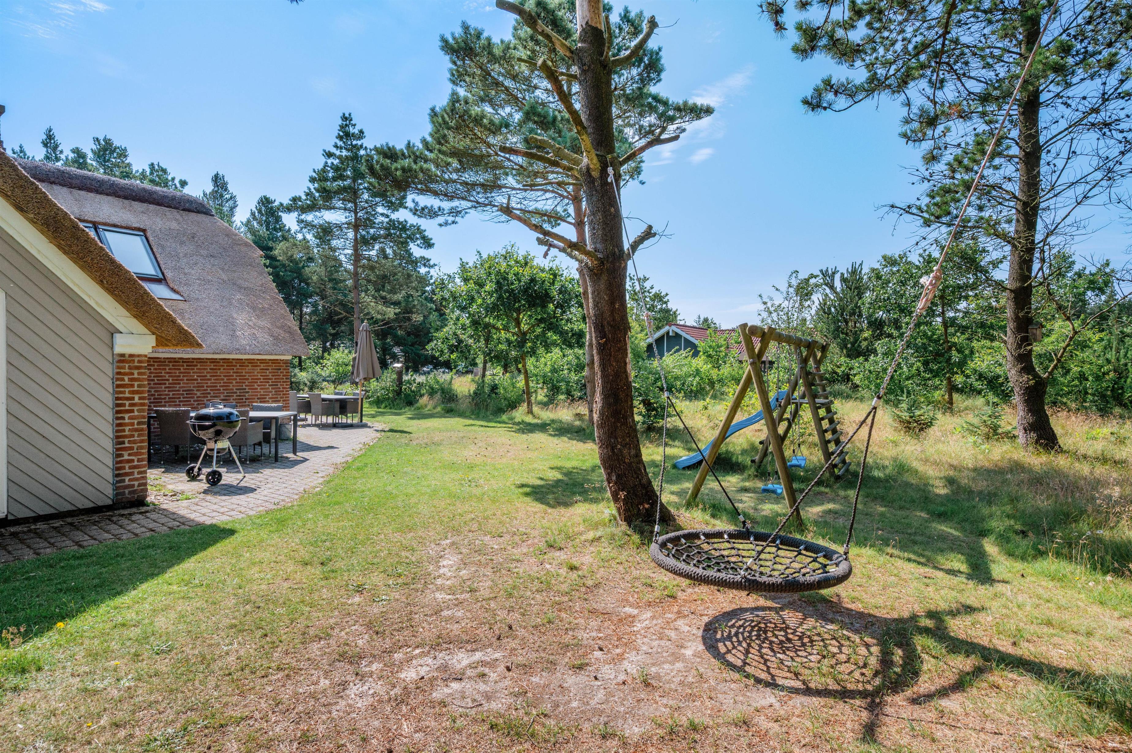 Udendørs har I også flere skønne terrasser, hvor der står havemøbler, liggestole og kul- såvel som gasgrill til rådighed for jer, så I kan få mest muligt ud af de solrige feriedage. Mens I slapper af på terrassen, kan børnene lege i haven, hvor der er en sandkasse og et gyngestativ til dem.