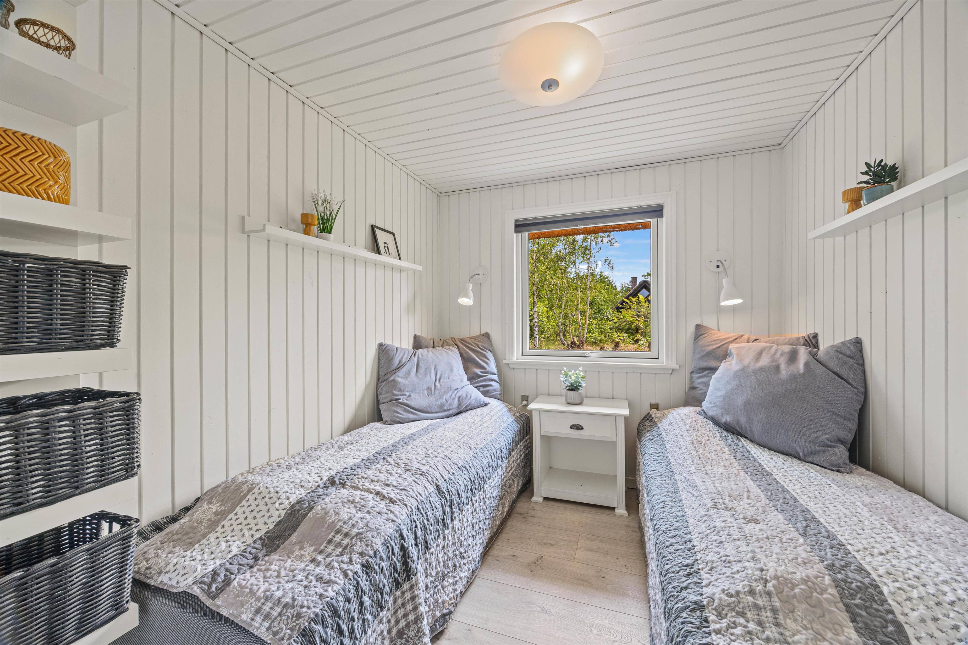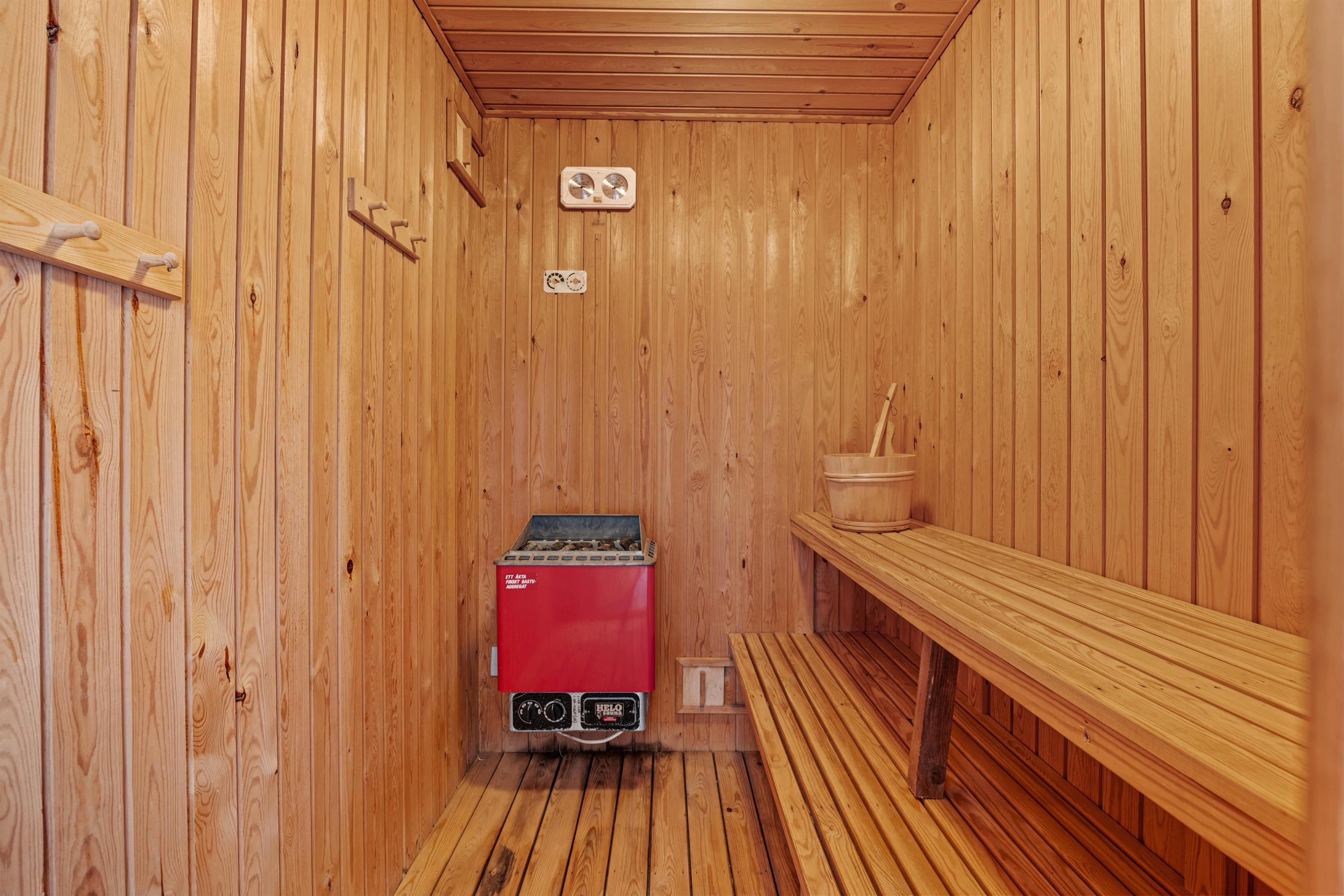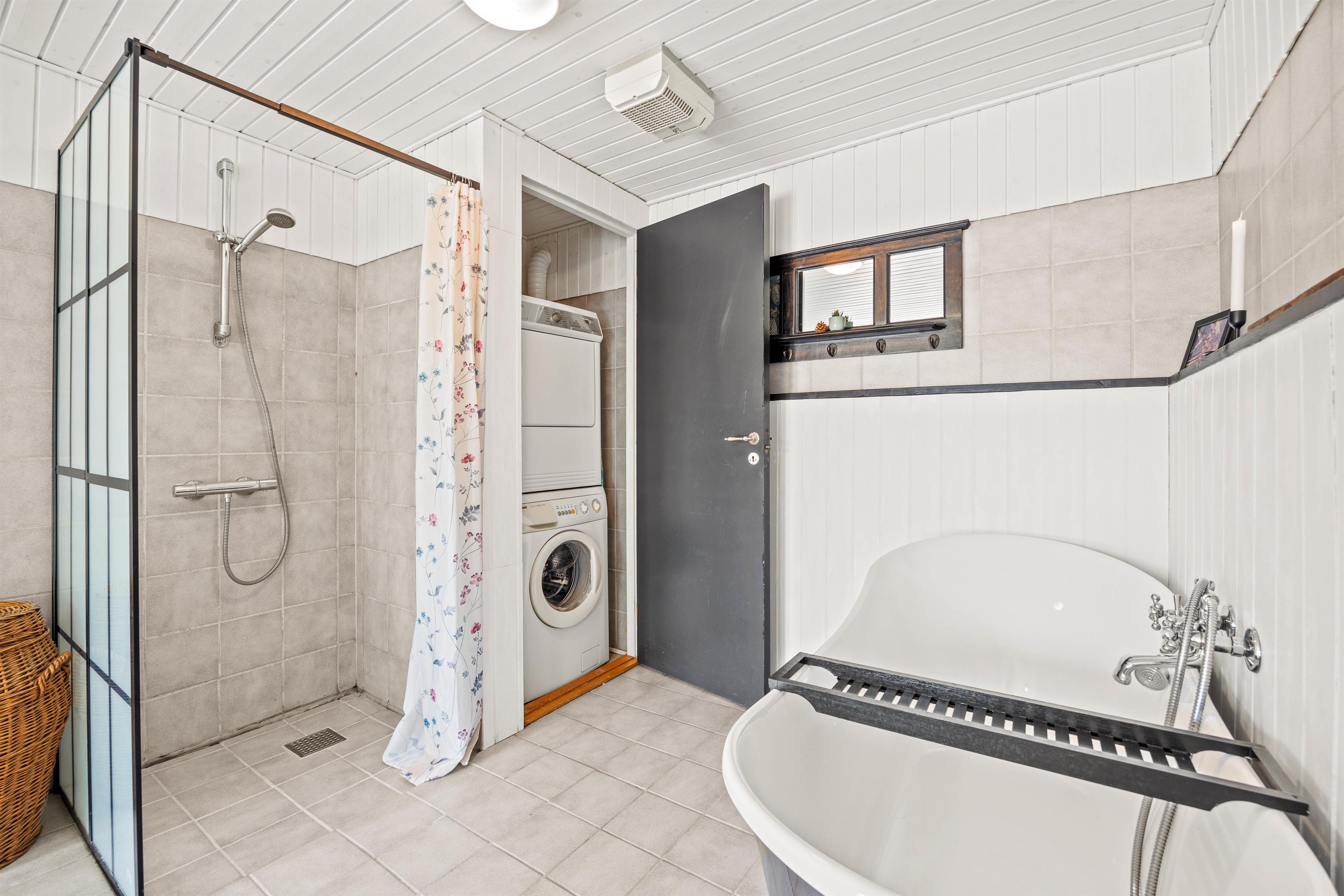 Gennem det store, lyse badeværelse kommer I til husets helt egen sauna - en sand wellnessoase for hele familien. Her er det perfekte sted til at tanke fornyet energi og glemme hverdagens stress og jag. I modsatte ende af huset er skønt baderum med både en stor brusekabine og et skønt badekar, hvorfra der er udsigt over den store terrasse.