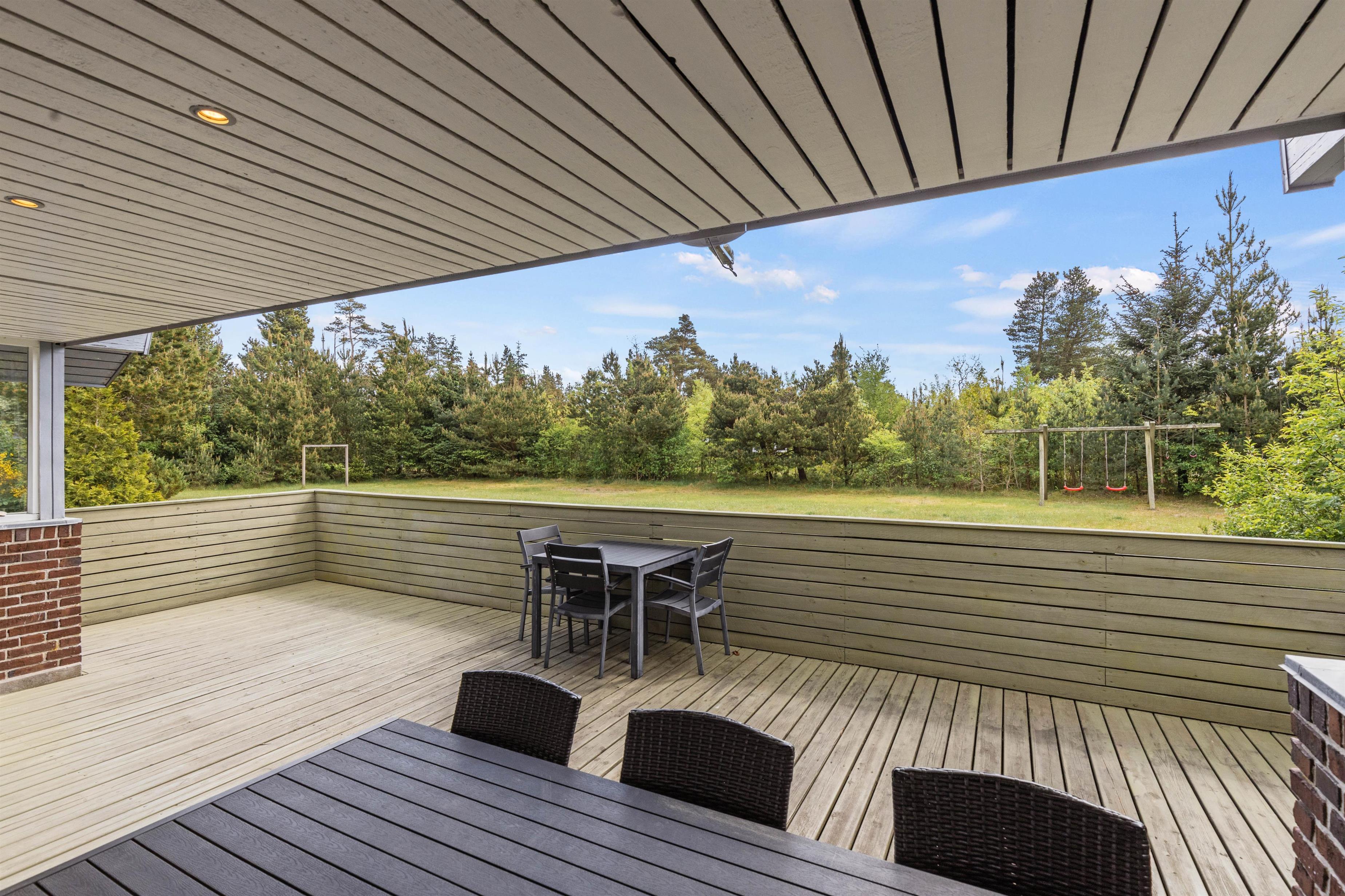 På den store, åbne terrasse er der rig mulighed for at holde en grillaften eller slænge sig i liggestolene på en varm sommerdag, og på den store græsplæne, som også råder over en sandkasse og gynge, kan de yngste feriegæster blive godt underholdt, imens I slapper af med en god bog.