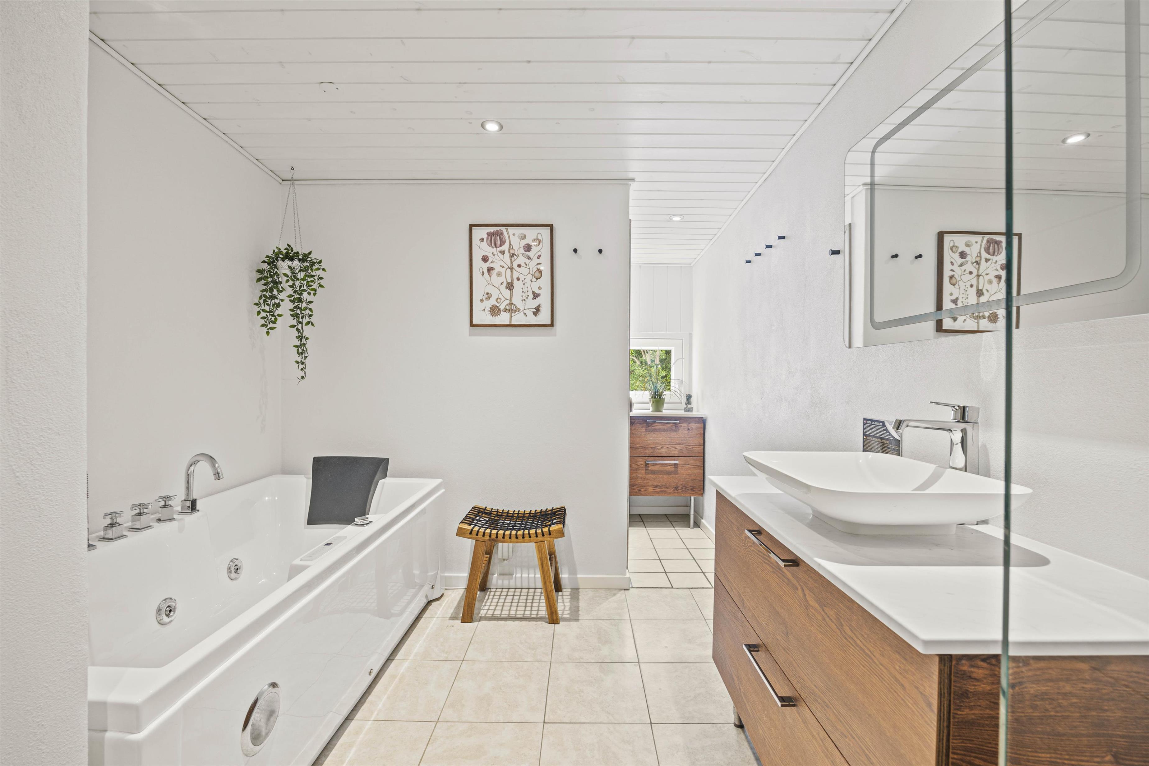 I sommerhuset er der plads til 6 personer fordelt på 3 indbydende soverum, som sikrer, at alle kan trække sig tilbage til en behagelig nats søvn. De 2 badeværelser, begge udstyret med gulvvarme, tilbyder morgenkomfort og den ene byder på ekstra luksus i form af en sauna og tømmespa, hvor I kan slappe af og lade dagens aktiviteter glide væk.