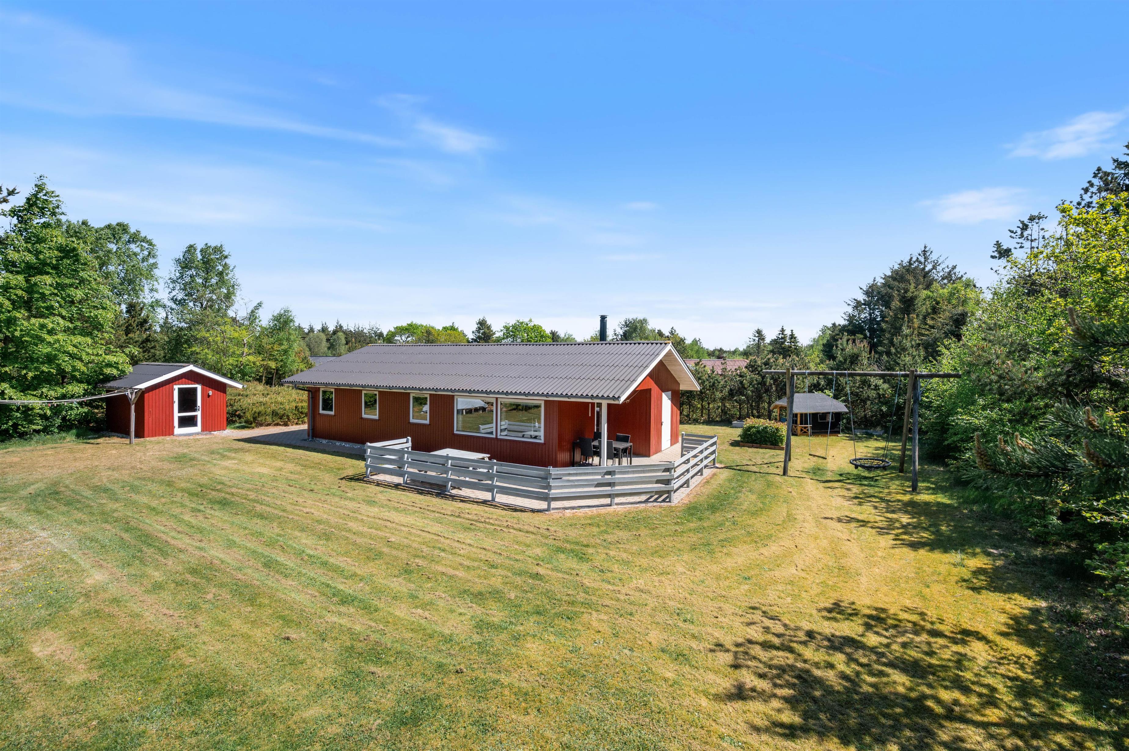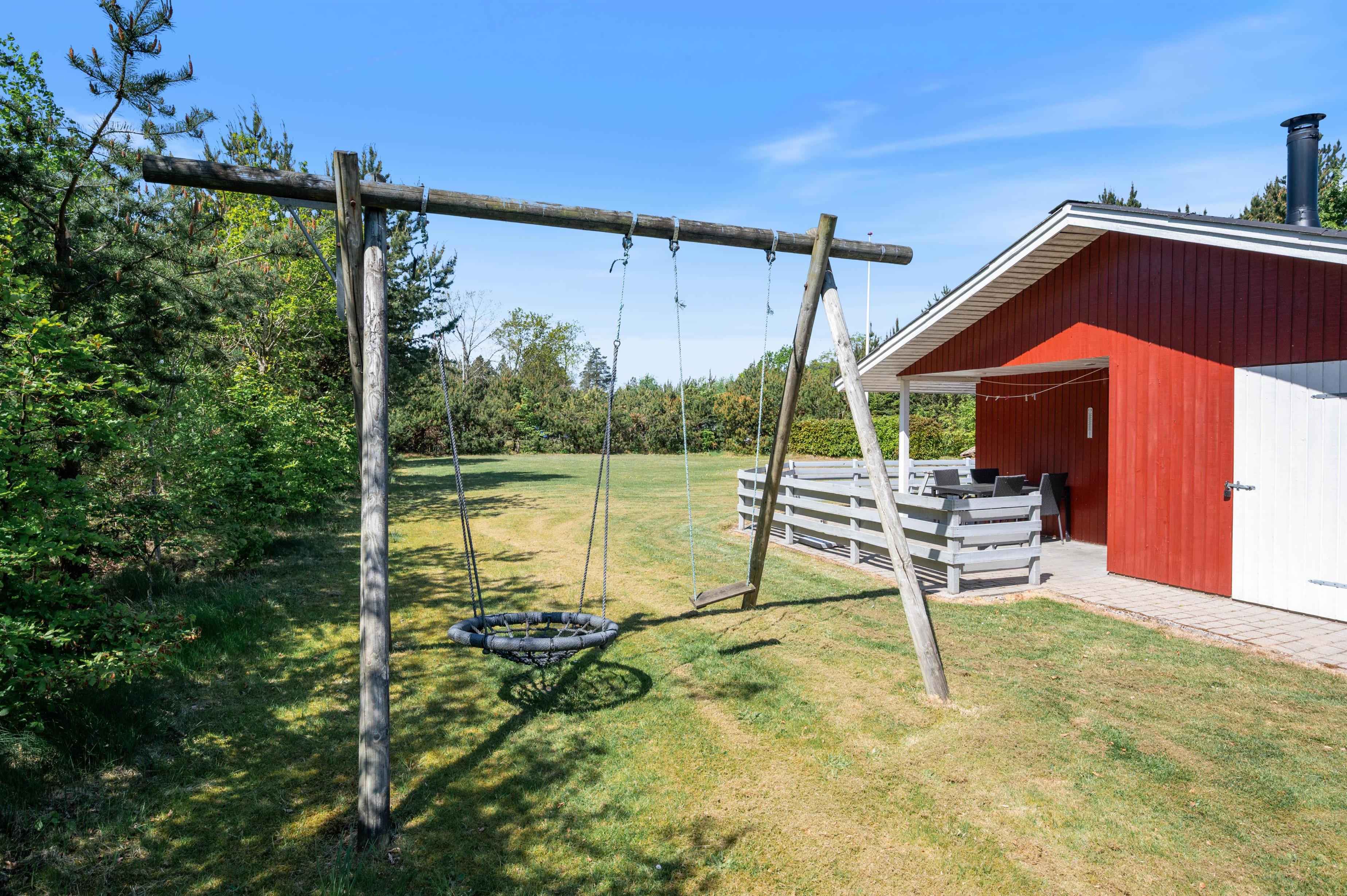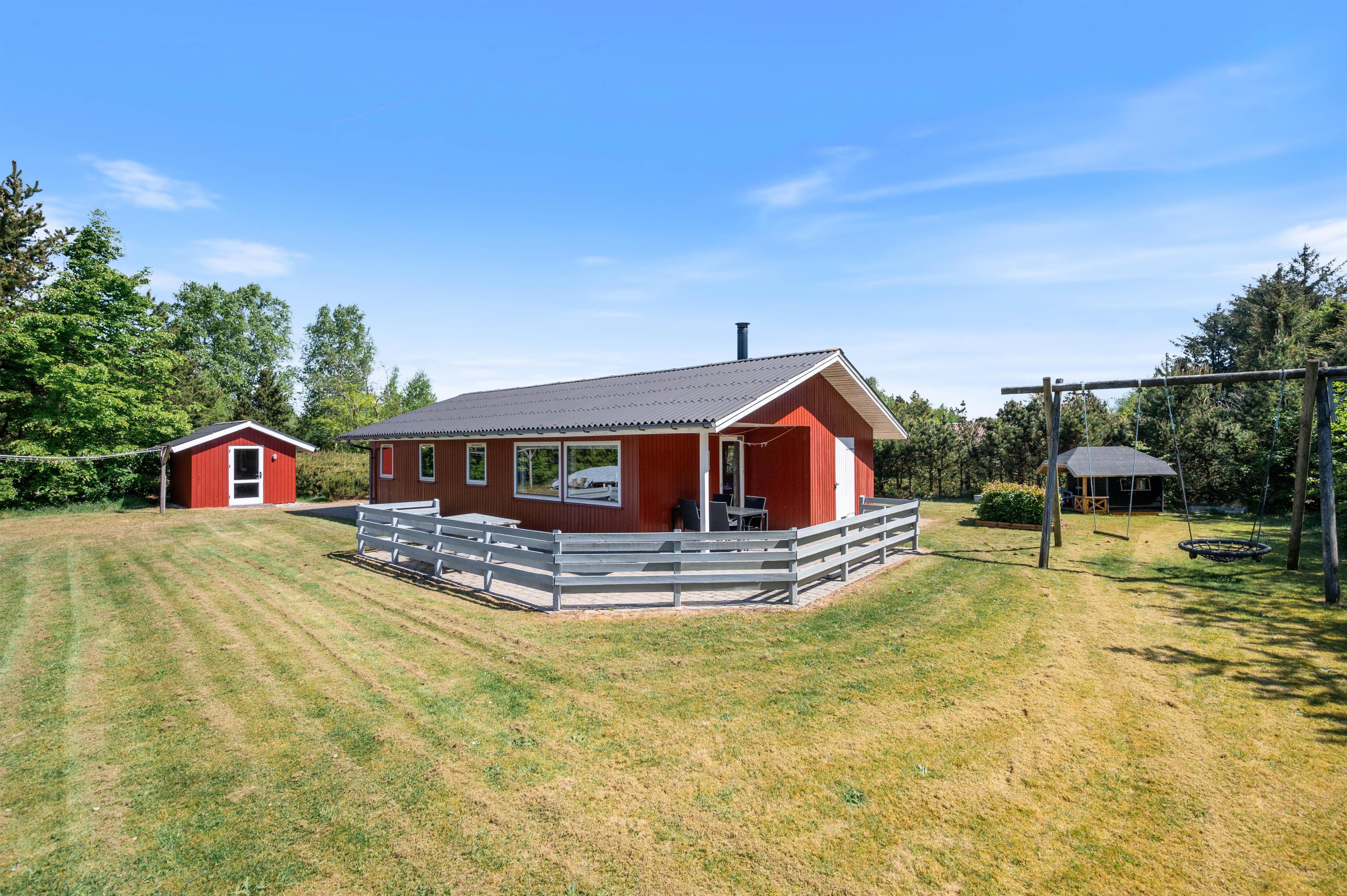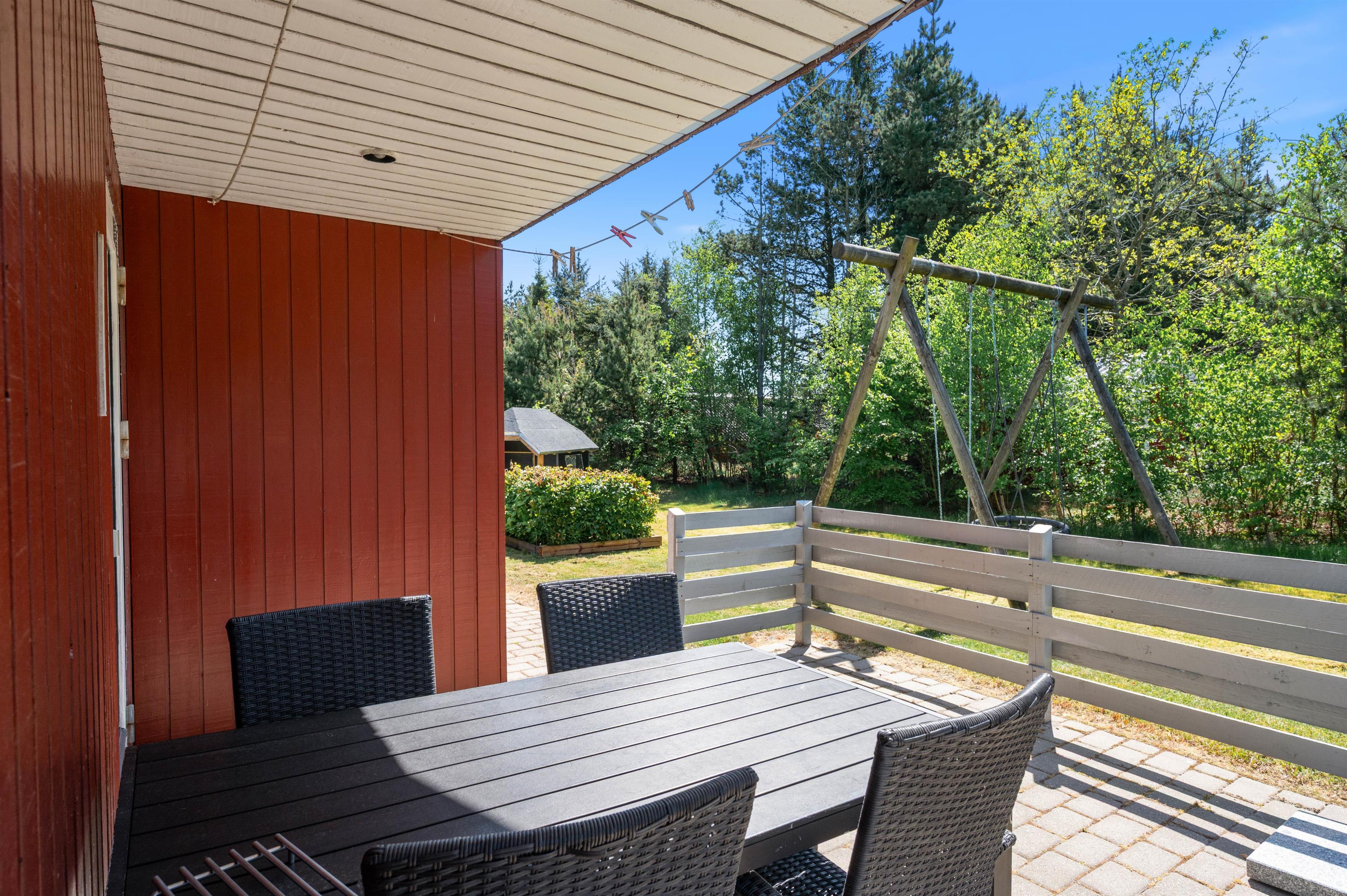 Det hyggelige sommerhus er lyst og indbydende indrettet. Det er et godt valg for dig, som gerne vil bo i hyggeligt og komfortabelt sommerhus. Huset har både opvaskemaskine og vaskemaskine, som gør ferien lidt lettere - særligt, hvis I har børn med. Børnene vil elske at lege i uderummet omkring huset. Her finder I både sandkasse, gynger og et lille fint legehus, der sammen med græsplænen sørger for timevis af leg til børnene.