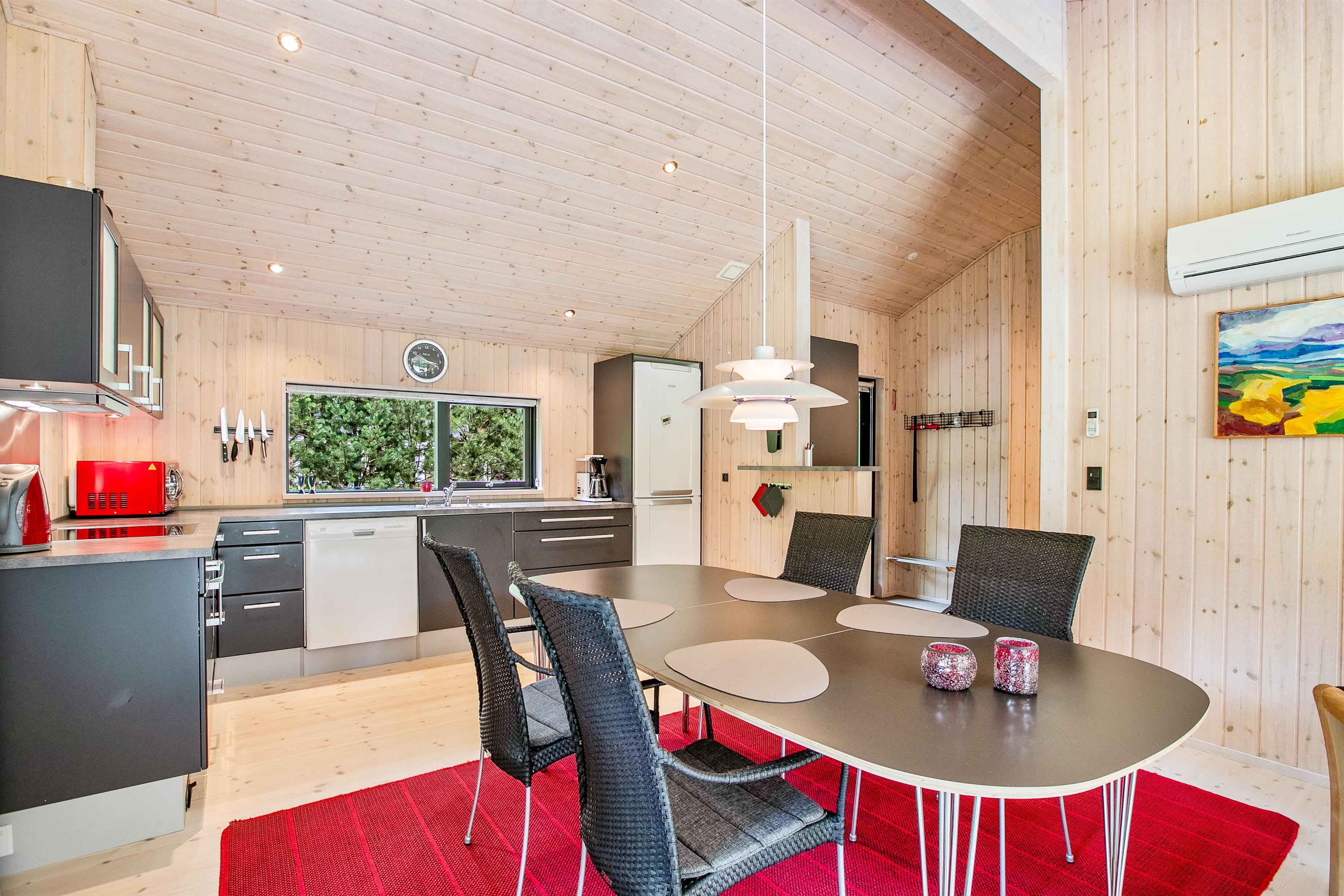 Dette 6 personers hus har alt, hvad I har brug for, hvis I gerne vil holde en skøn og afslappende ferie. Saunaen og spaen sørger for, at I kan give slip og koble fuldstændig af for en stund, mens brændeovnen men sin varme og dragende flammespil sørger for skøn feriestemning på de kølige dage.