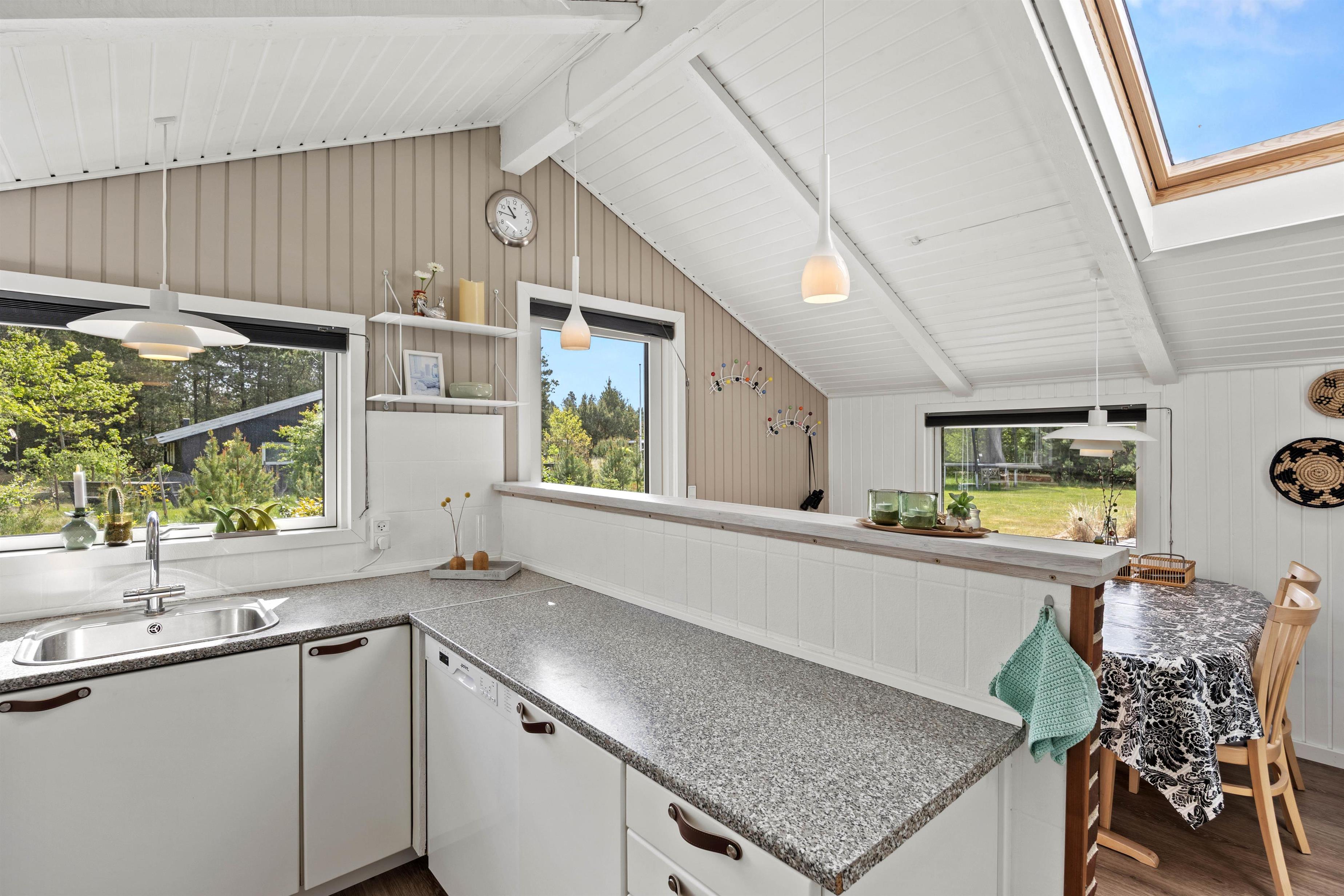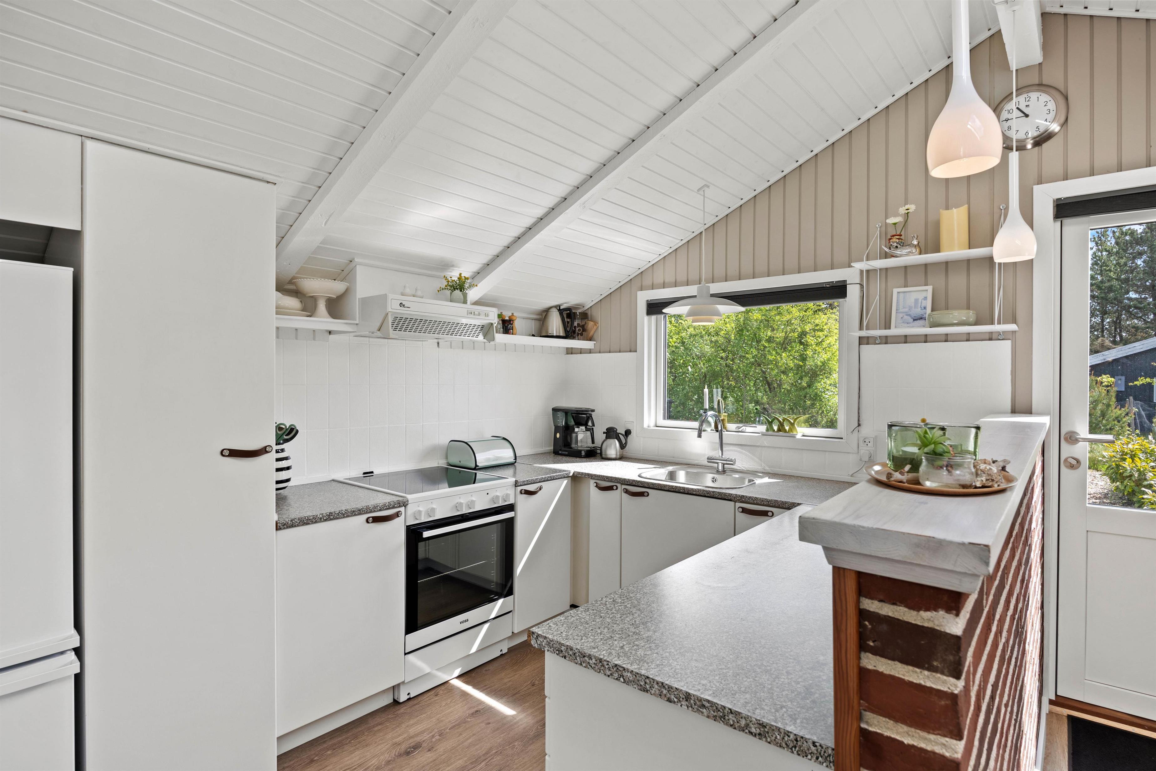 Kirkeflod 60 indbyder til rigtig, klassisk sommerhusferie. Her er god plads til familiehygge i det lyse stue-alrum med det åbne køkken. Efter aftensmaden er det oplagt at finde familiespillene frem og afslutte dagen med en familiedyst i Partners.