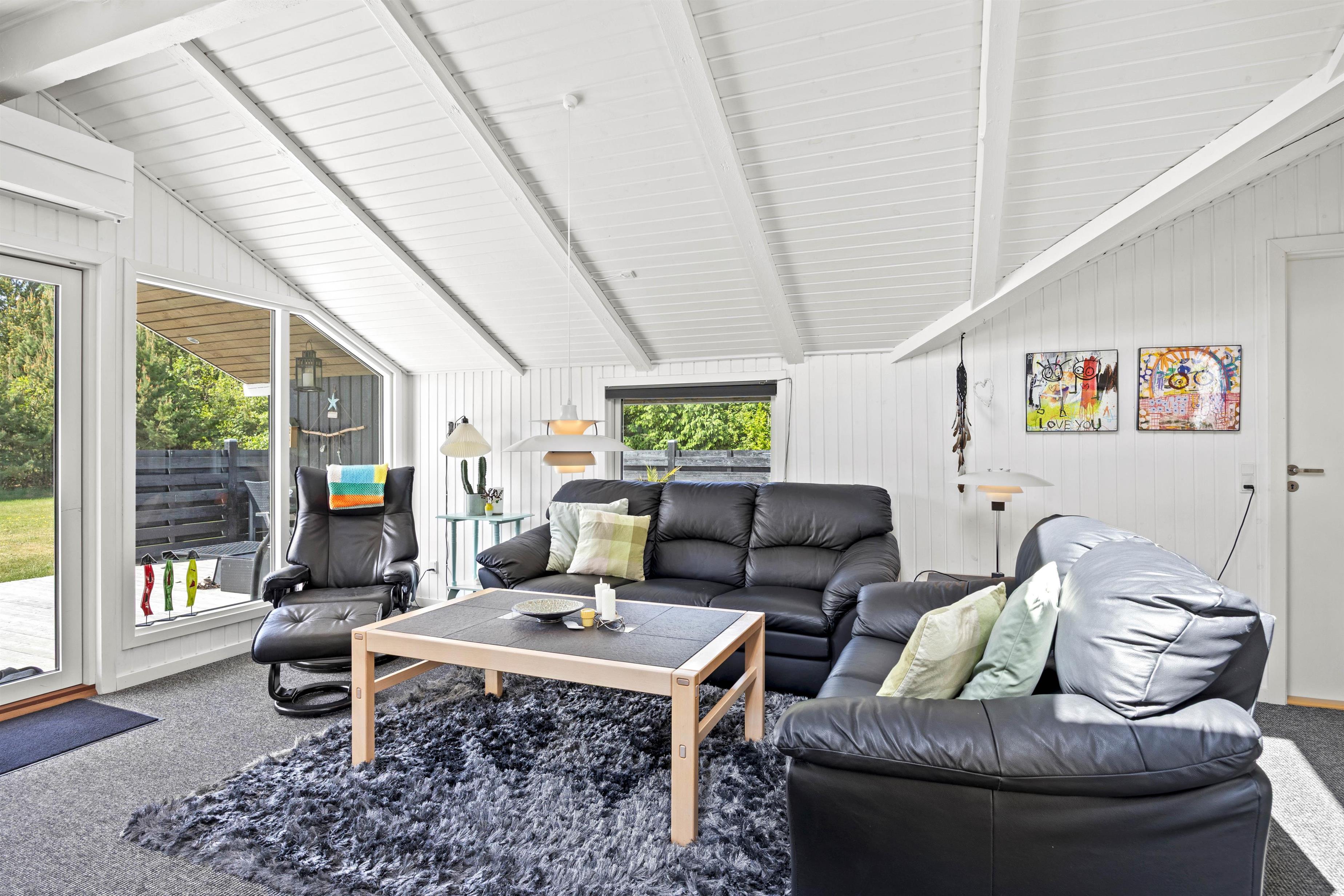 Lyst og moderne, men med bibeholdt feriehuscharme er dette idyllisk beliggende sommerhus perfekt til din ferie med familien. Det i 2019 renoverede feriehus indbyder til masser af indendørs hygge med brændeovn og sauna og til masser af solskin og frisk luft på den dejlig store terrasse, der forløber rundt om huset. Praktiske detaljer som vaskemaskine, opvaskemaskine og gulvvarme i badeværelset afrunder billedet.