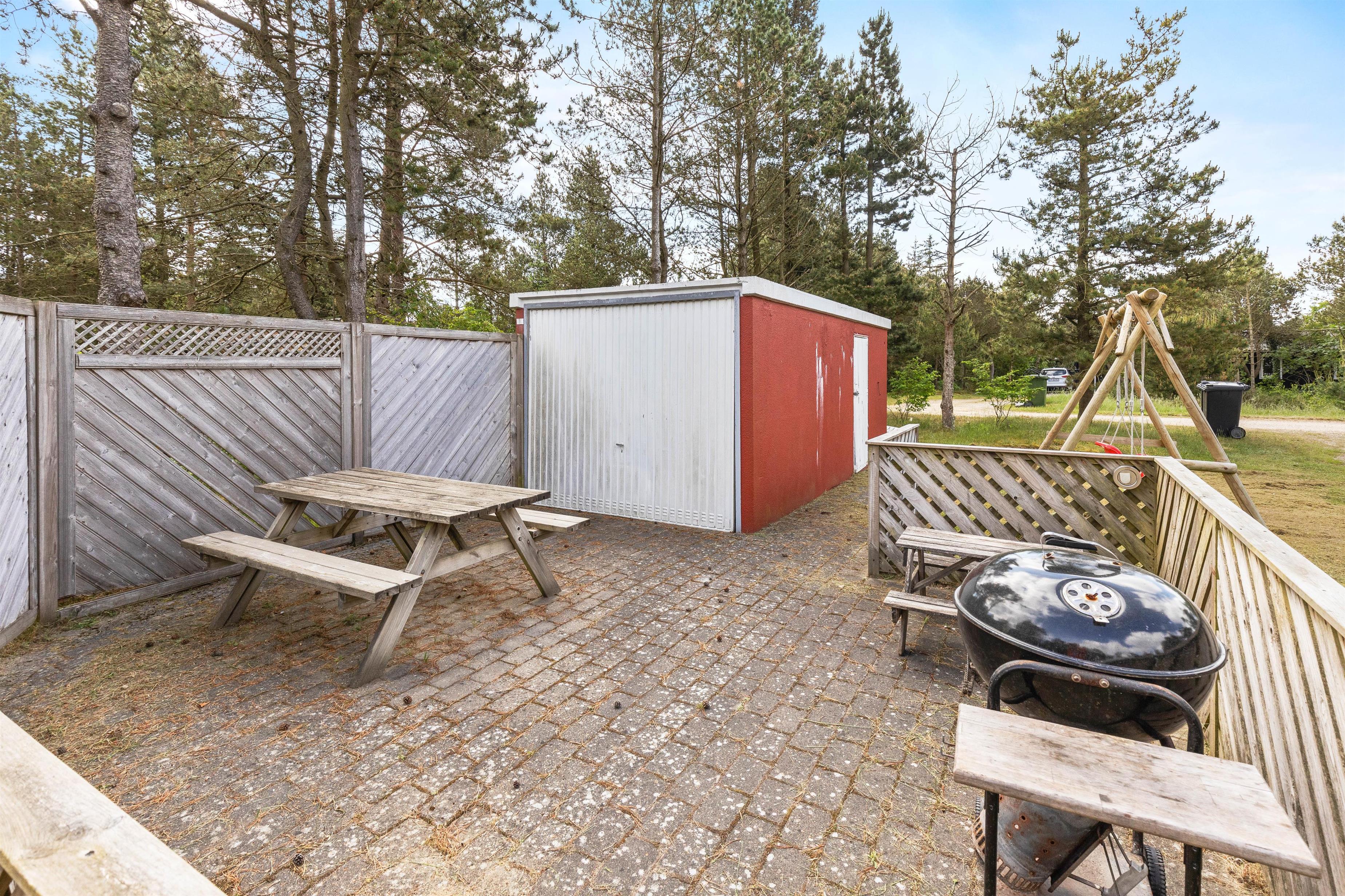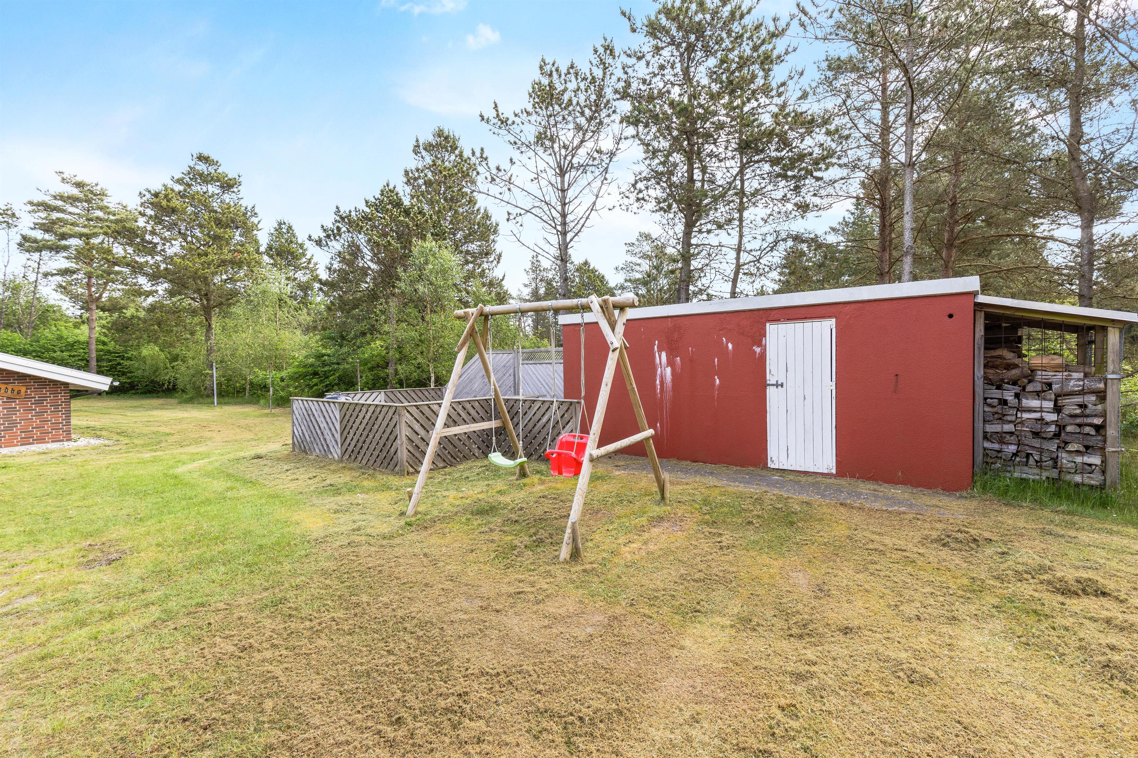 Udearealet ved sommerhuset byder på en skøn blanding af afslapning og leg for både store og små. Den store naturgrund giver rigelig plads til udendørs aktiviteter, mens de åbne og lukkede terrasser tilbyder forskellige opholdssteder afhængigt af dagens behov.