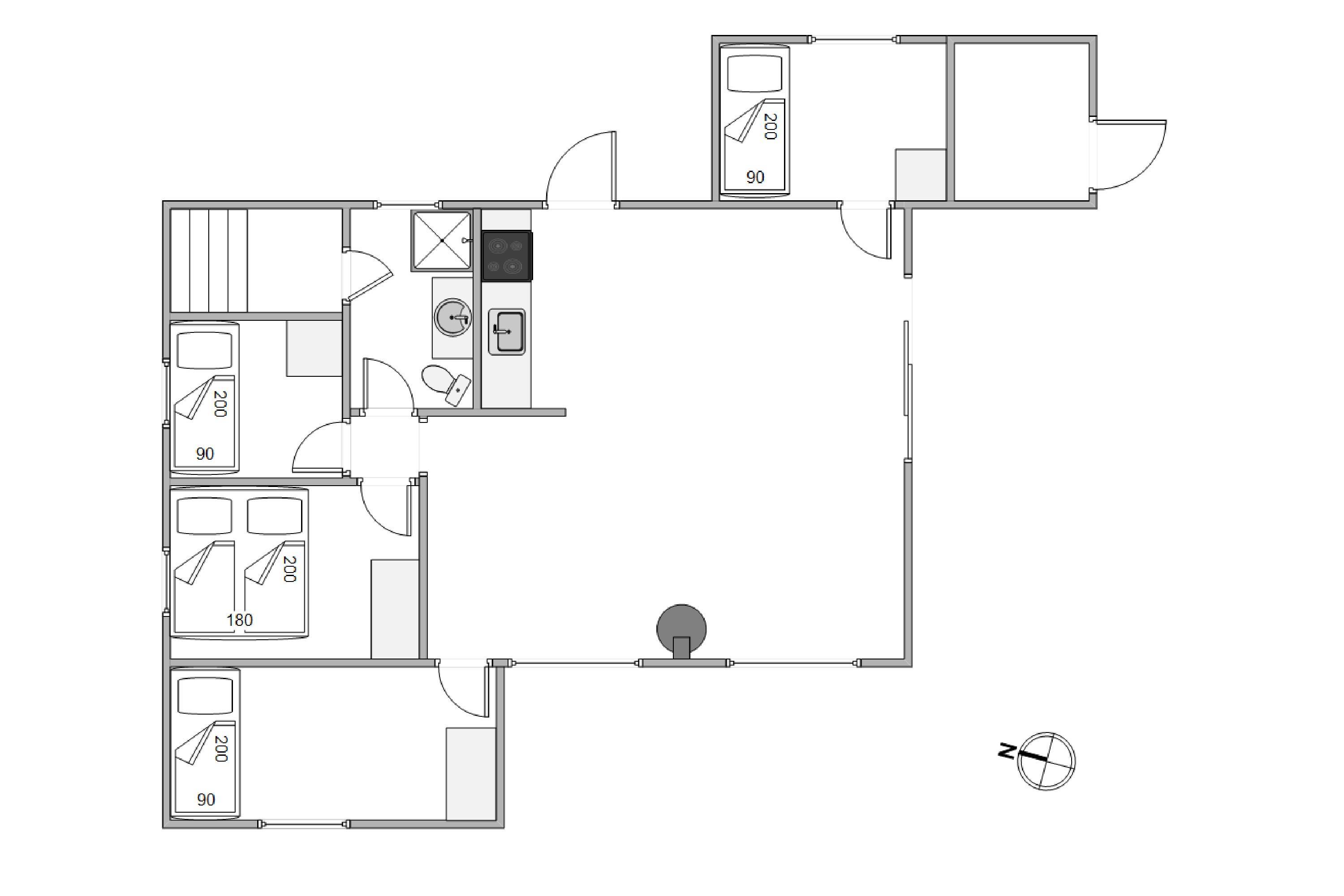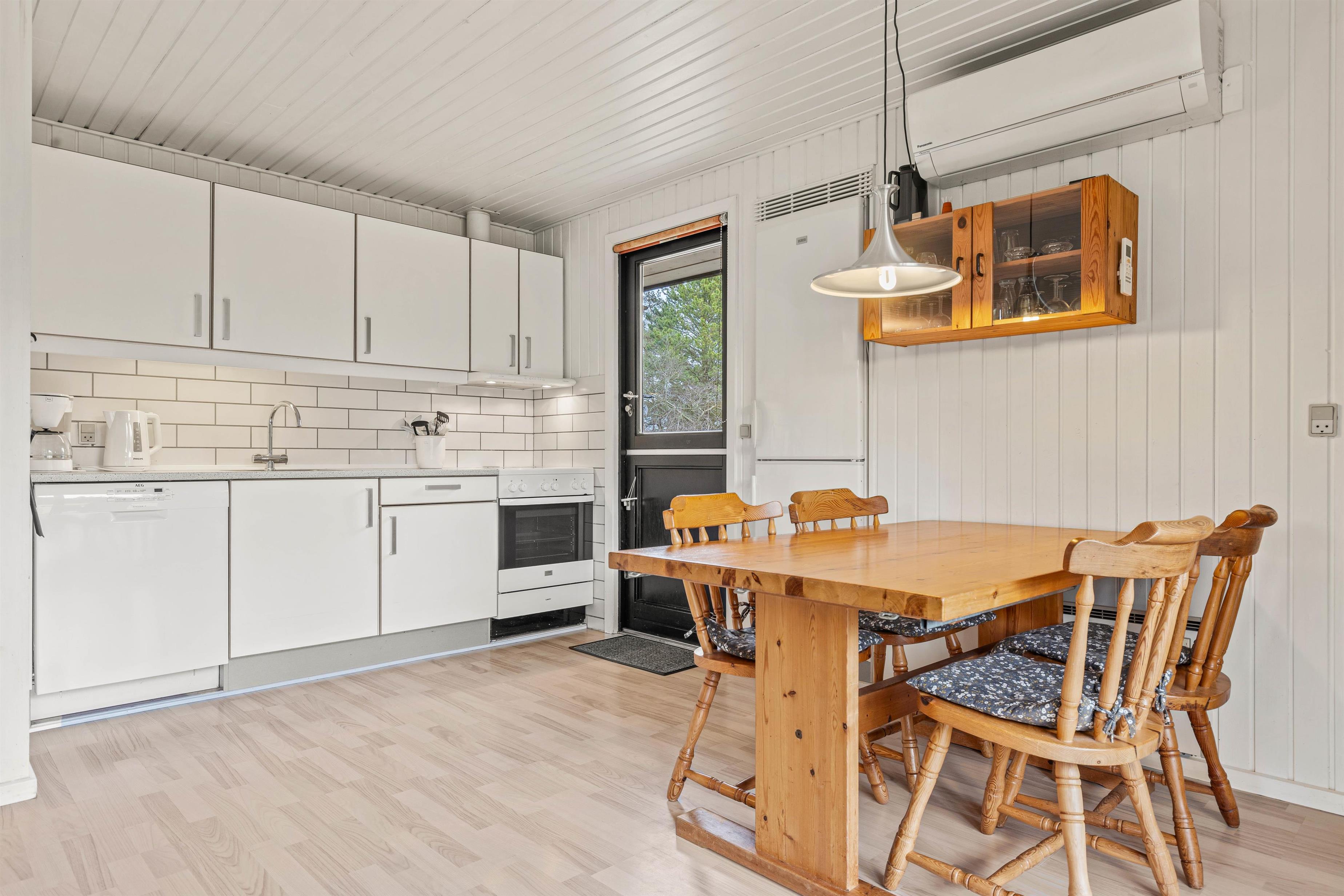 Søger I et enkelt feriehus, er dette lige huset for jer. Det lyse køkken er godt udstyret og er i åben forbindelse til stuen, hvor der er lagt op til nærvær med familie og venner omkring den varme brændeovn.
