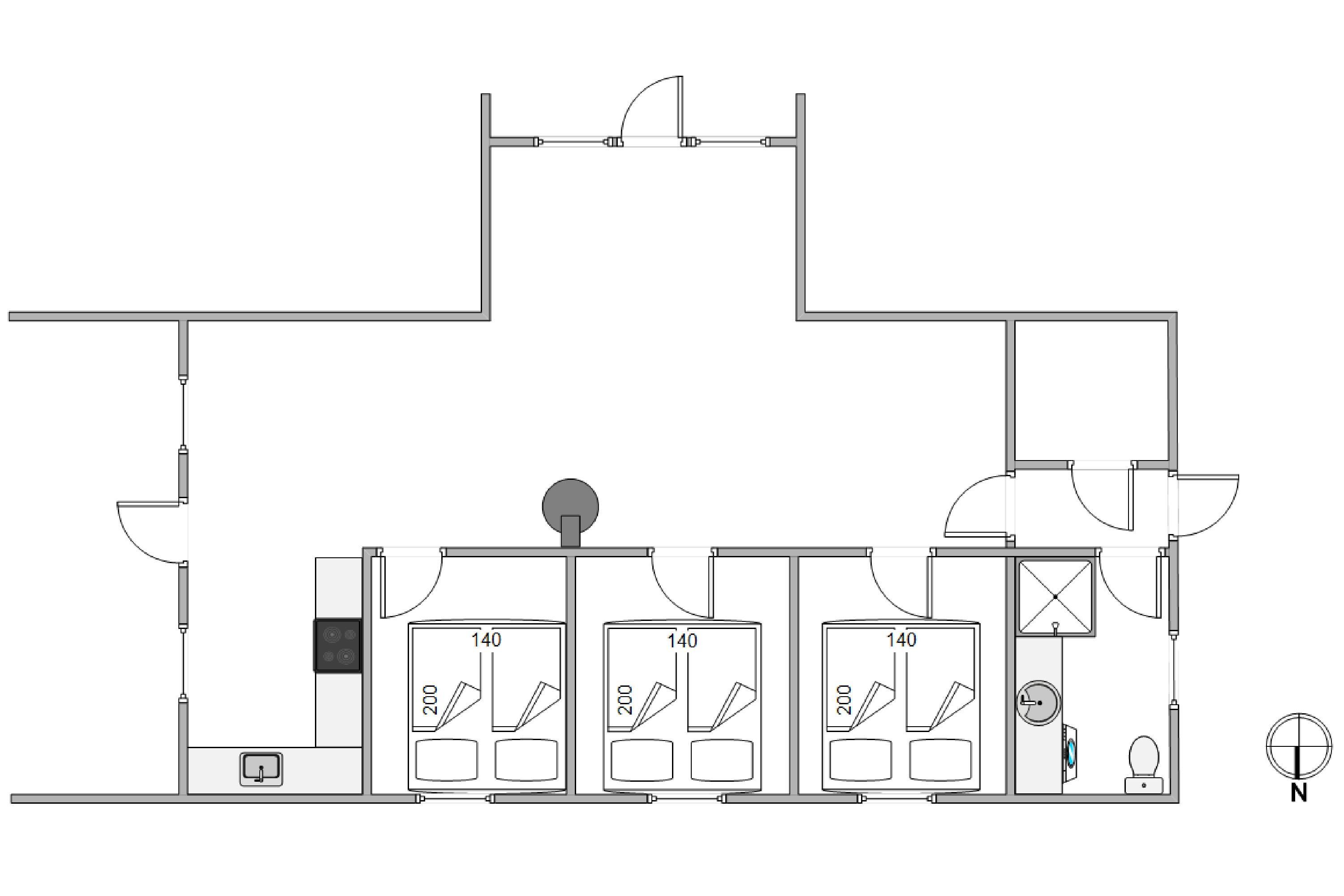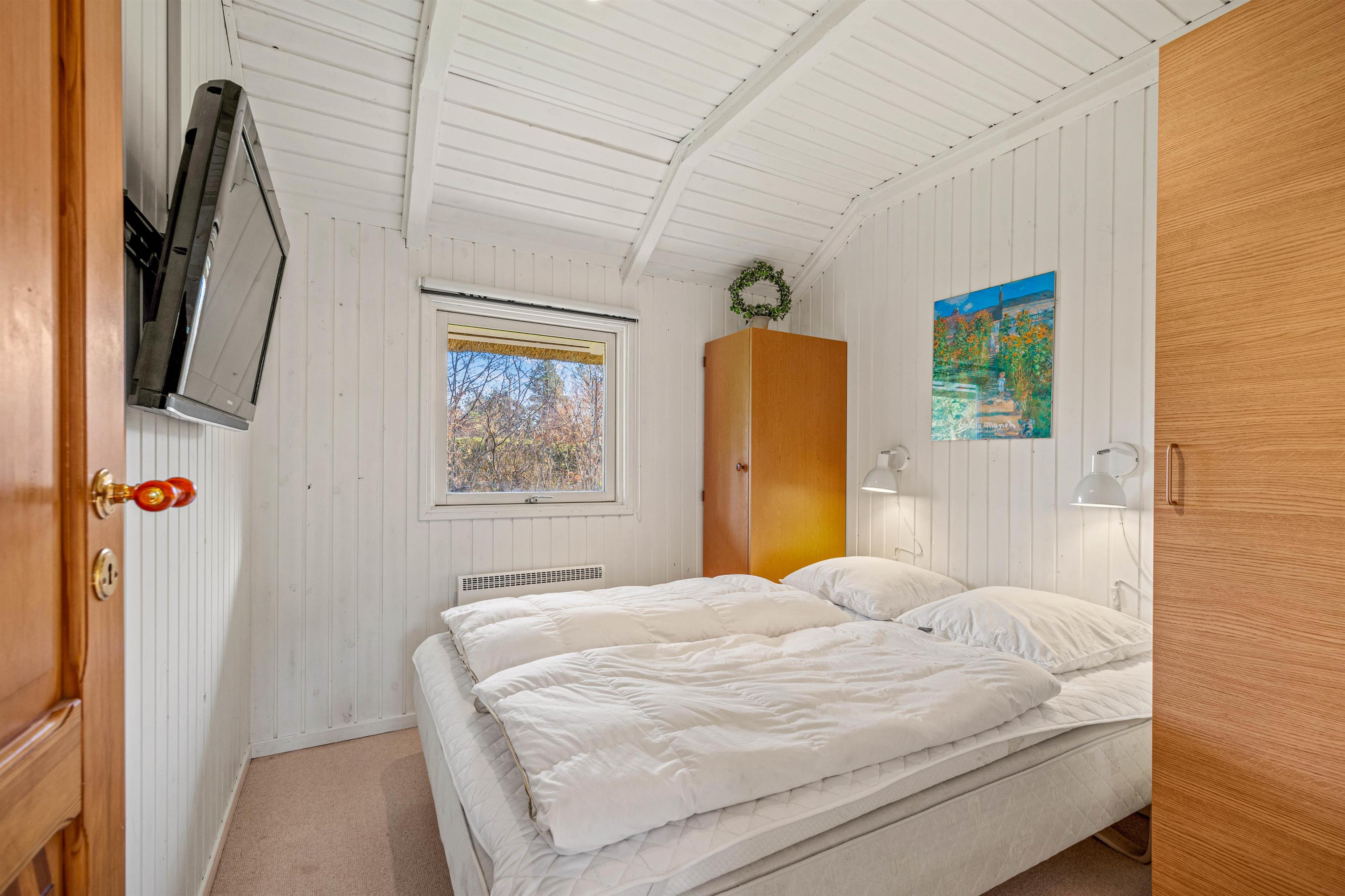 Sommerhusets 3 soveværelser er lyst indrettede, hvilket skaber en indbydende atmosfære for jer at trække jer tilbage til efter en dag fuld af oplevelser. Hvert værelse er udstyret med komfortable dobbeltsenge, så I kan være sikre på en god og velfortjent hvile.