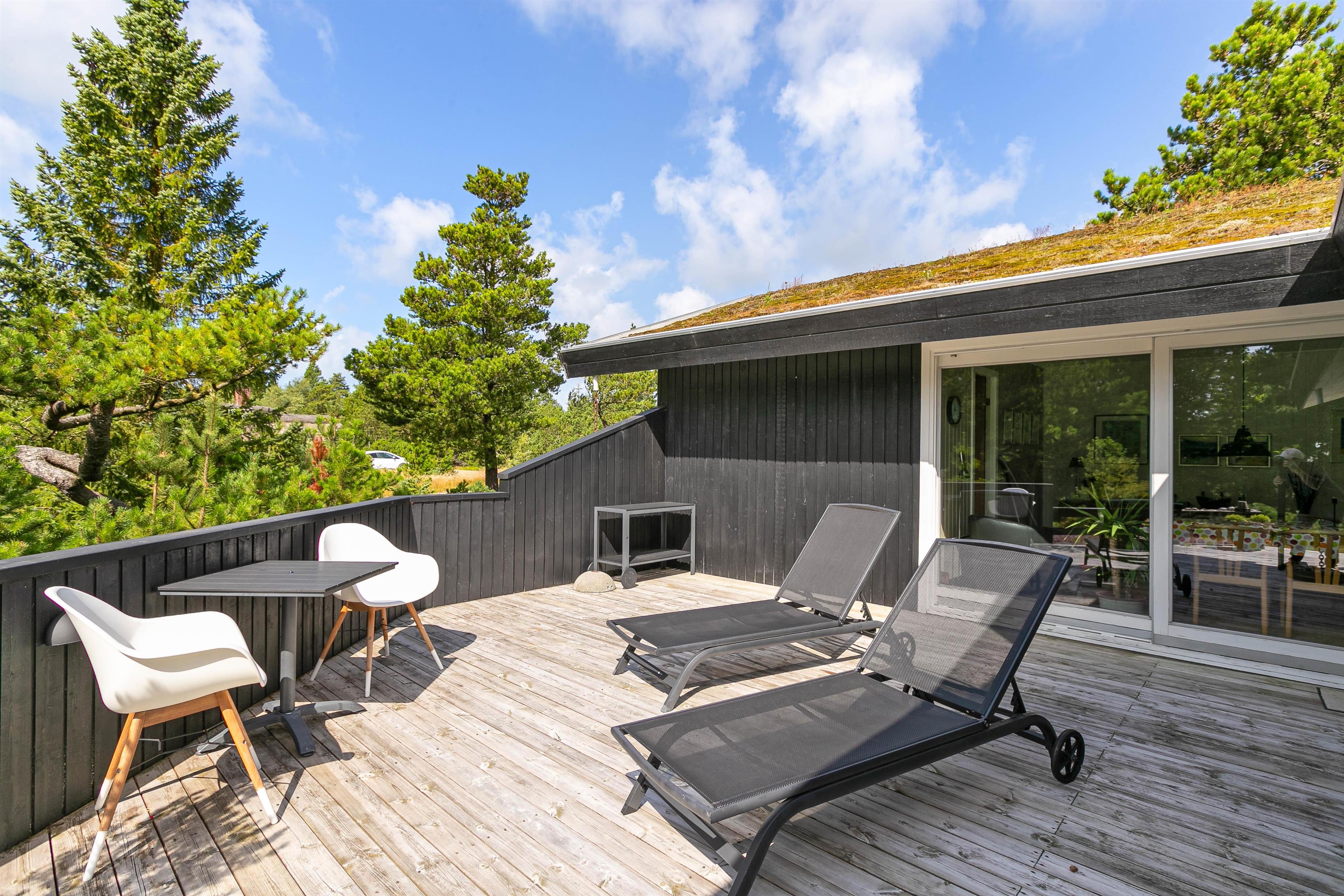 Terrassen omslutter næsten hele huset, og her står både havemøbler, liggestole og en grill klar til jer, så I kan få hele dagen til at gå i den friske luft. Til de mindste feriegæster er der lavet en sandkasse og et gyngestativ, så de ikke kommer til at kede jer, mens I læser en god bog i liggestolene.