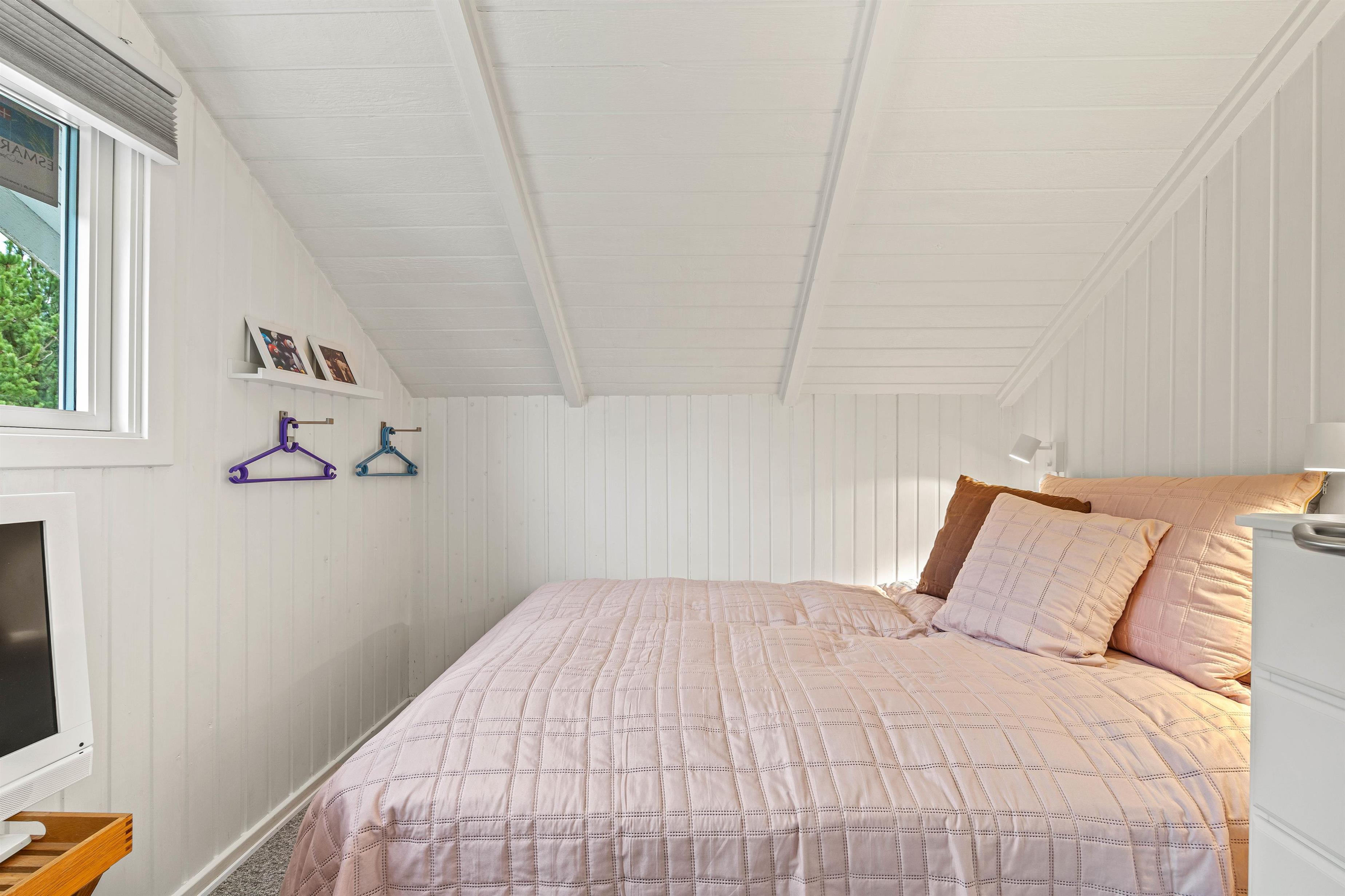 Haven, der ligger på en afskærmet naturgrund, er også udstyret med et bålsted, perfekt til at bage snobrød sammen. For dem, der elsker cykel- eller fisketure, er redskabsskuret en praktisk detalje. Her kan I opbevare cykler, fiskeudstyr eller andet friluftsgrej sikkert og bekvemt efter en dag fyldt med aktiviteter i den smukke omkringliggende natur.