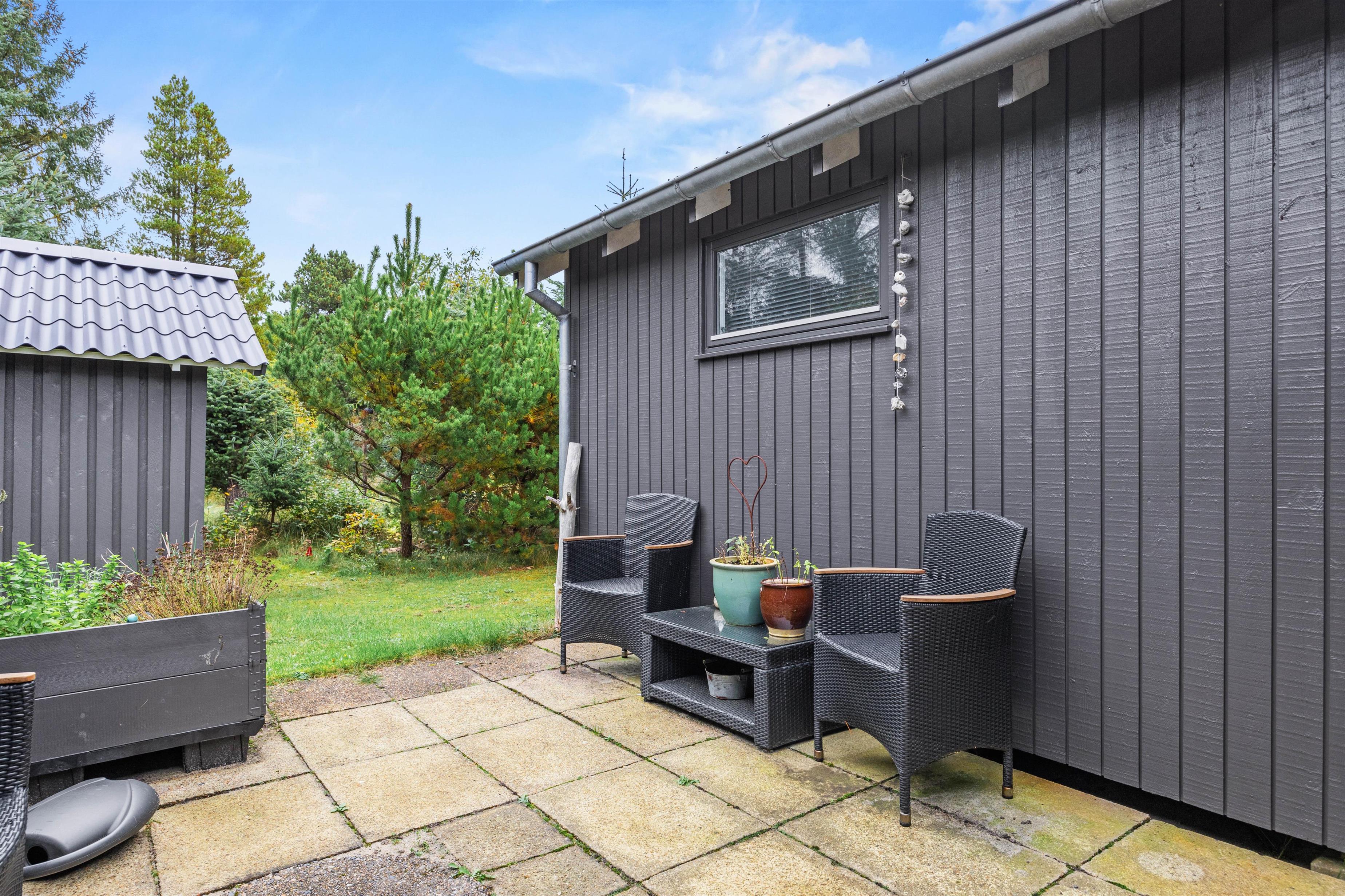 Det velholdte hus er ikke kun lækkert indvendig, men også udvendigt er det rigtig godt udstyret. Her får I en dejlig terrasse med både et åbent stykke til solskinsdagene især, og et stort overdækket stykke, så de smukke omgivelser kan nydes i al slags vejr.
