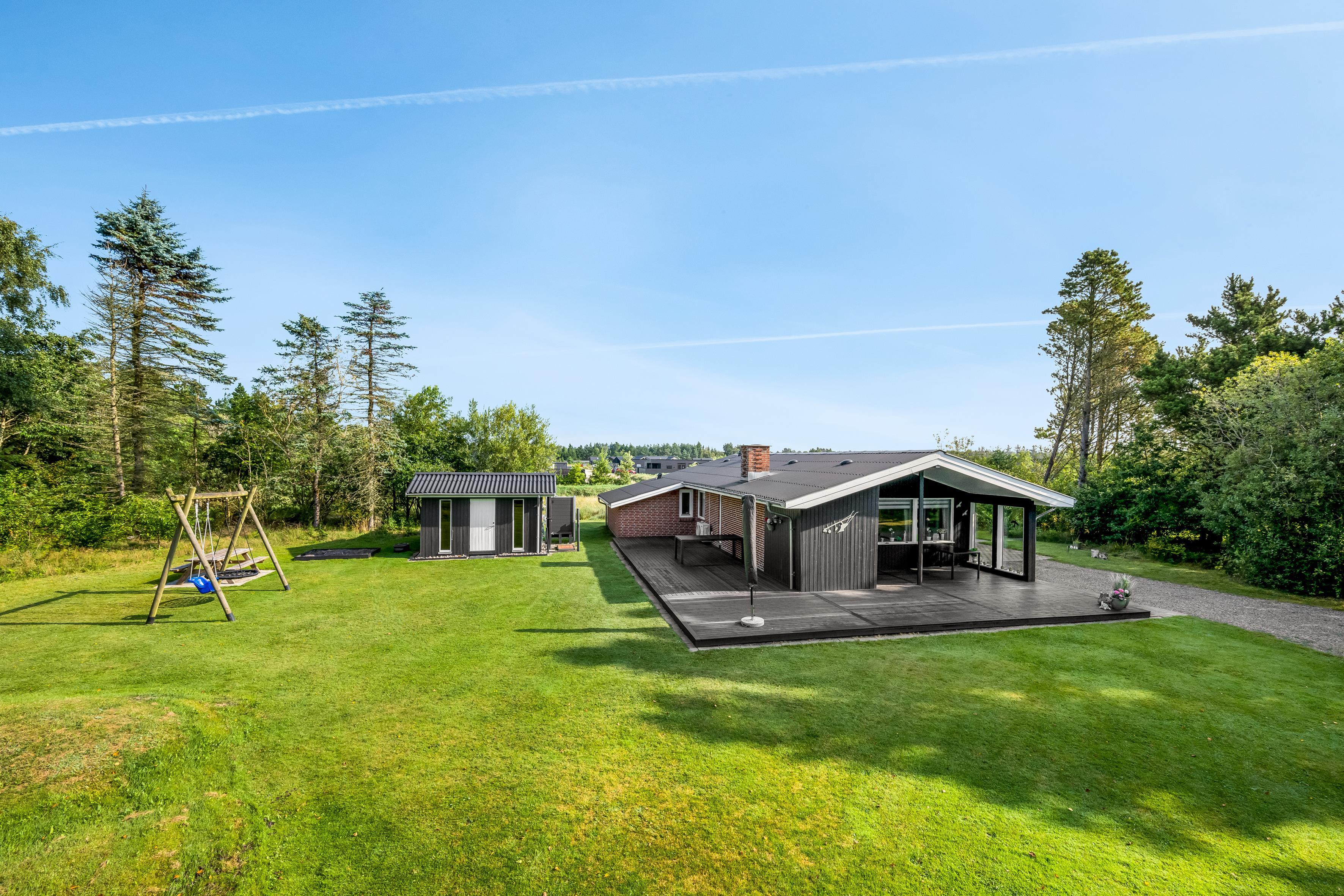Det rummelige udendørsområde indbyder til lange eftermiddage i det fri og giver masser af plads til udendørsaktiviteter.