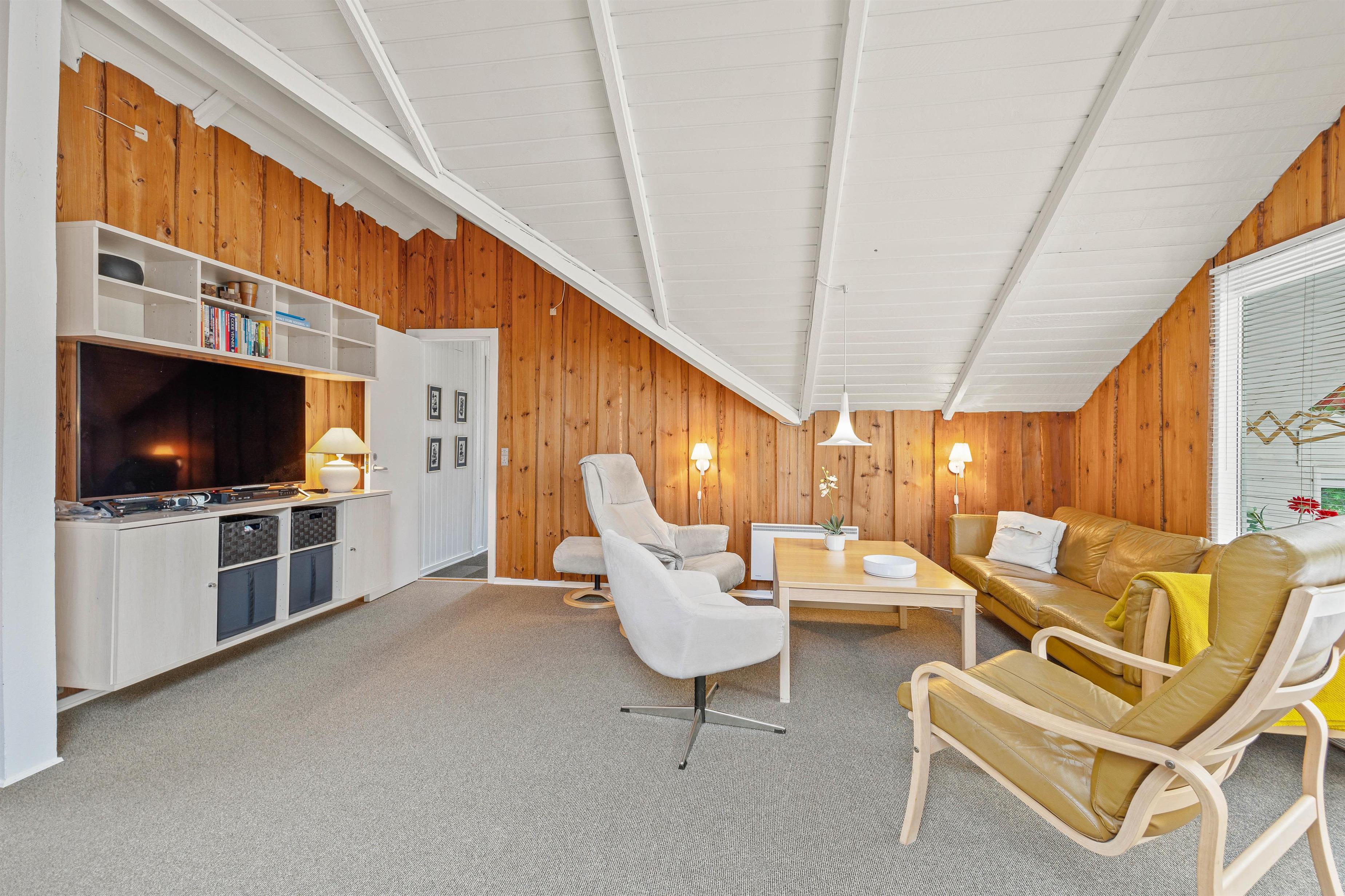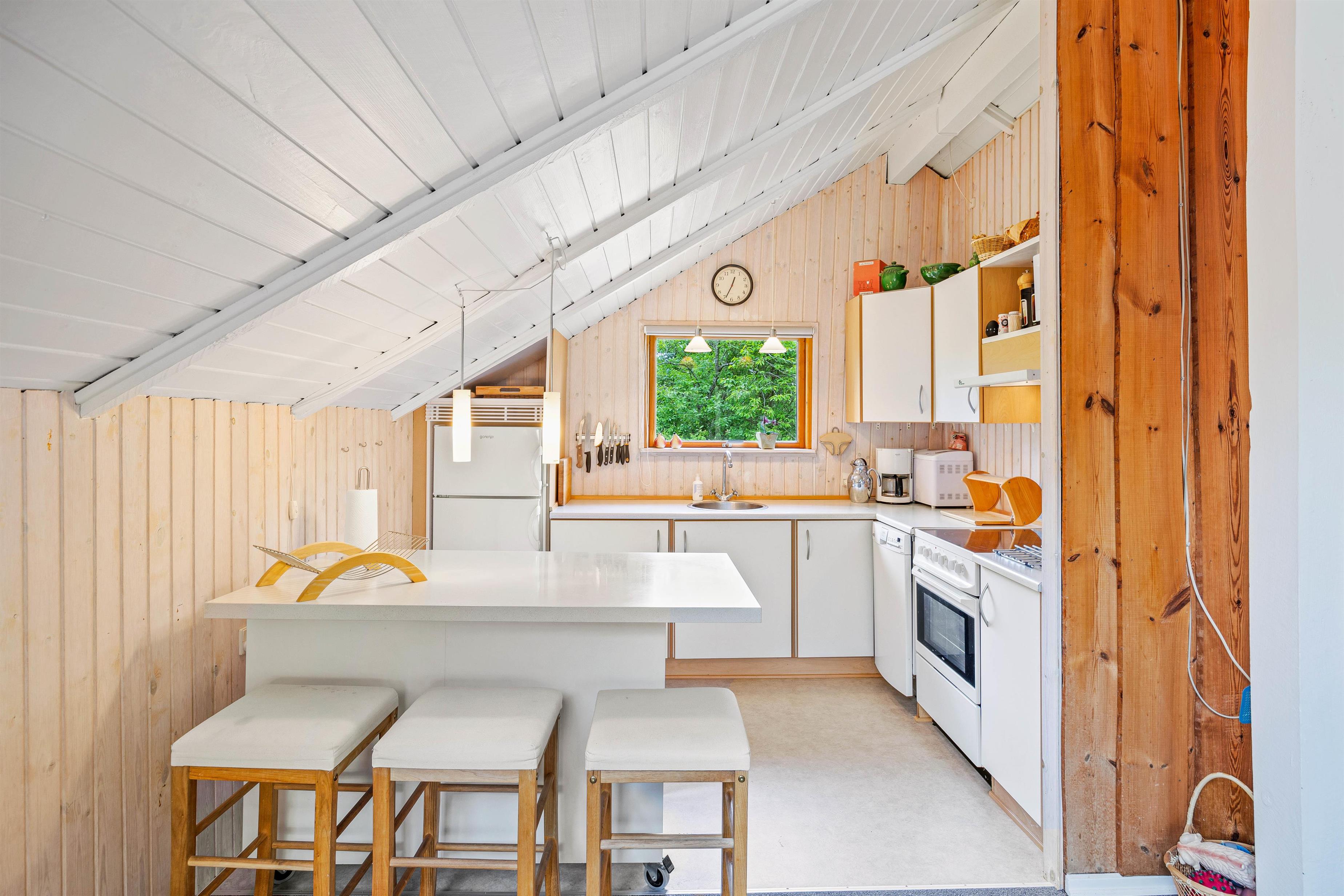 I køkkenet kan du tilberede lækre kulinariske retter eller noget enkelt som pasta med tomatsauce. Her kan børnene også være med til at hakke, og bagefter sætter de det hele i opvaskemaskinen. Efter madlavningen kan I enten sidde udenfor og nyde aftenen under åben himmel. Eller indenfor, hvor I kan tænde op i brændeovnen og sætte jer godt til rette i sofaen, mens I ser en god film på tv'et. Du kan varme feriehuset op med den energibesparende varmepumpe, hvis du har brug for at varme op hurtigt. Du vil sikkert tilbringe meget tid i udestuen, især i dårligt vejr, eller når det er køligt udenfor.