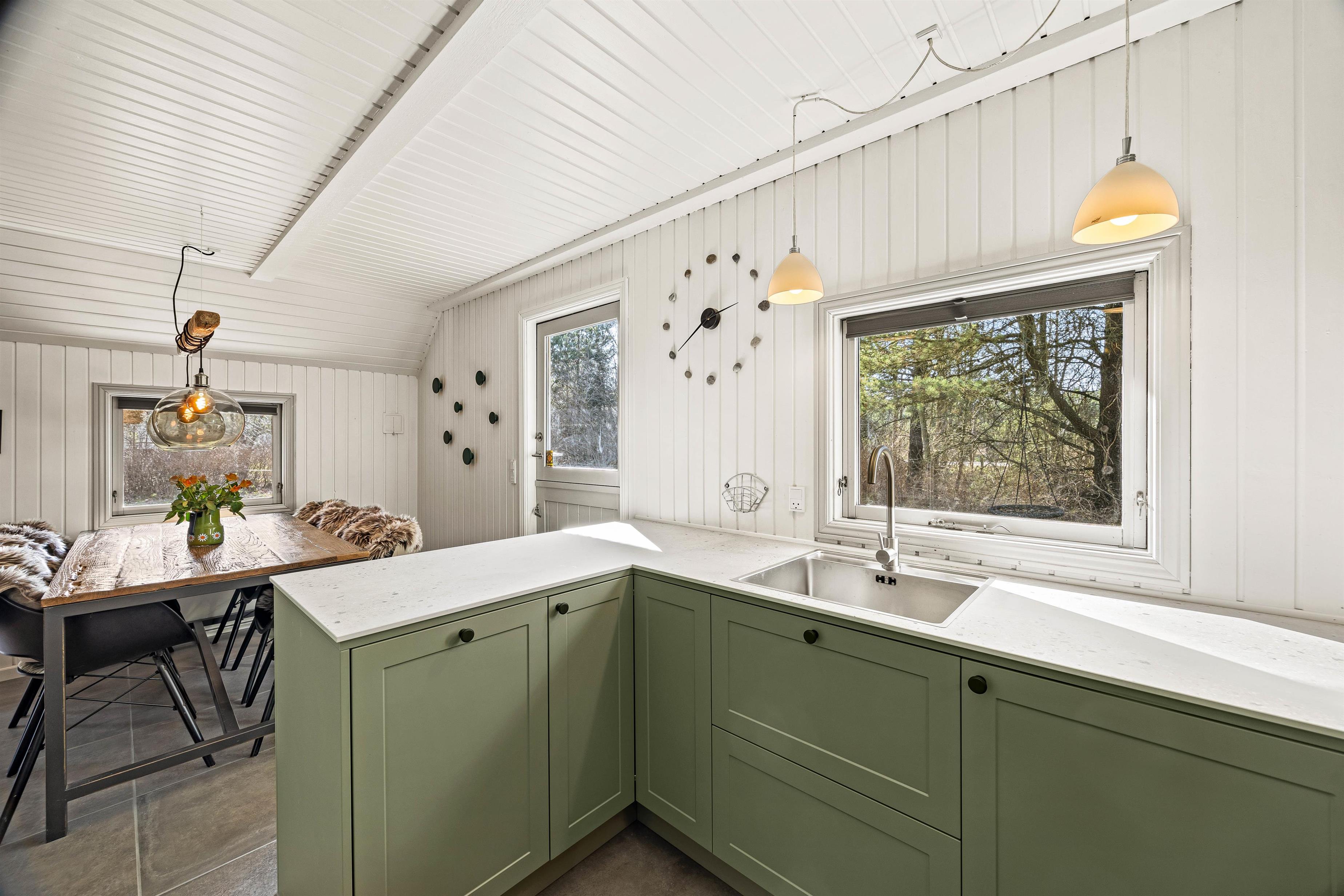 I køkkenet har I en opvaskemaskine, der klarer opvasken, så I kan tilbringe endnu mere ferietid sammen. Feriehuset bliver opvarmet af en energivenlig varmepumpe, der sørger for et godt indeklima.