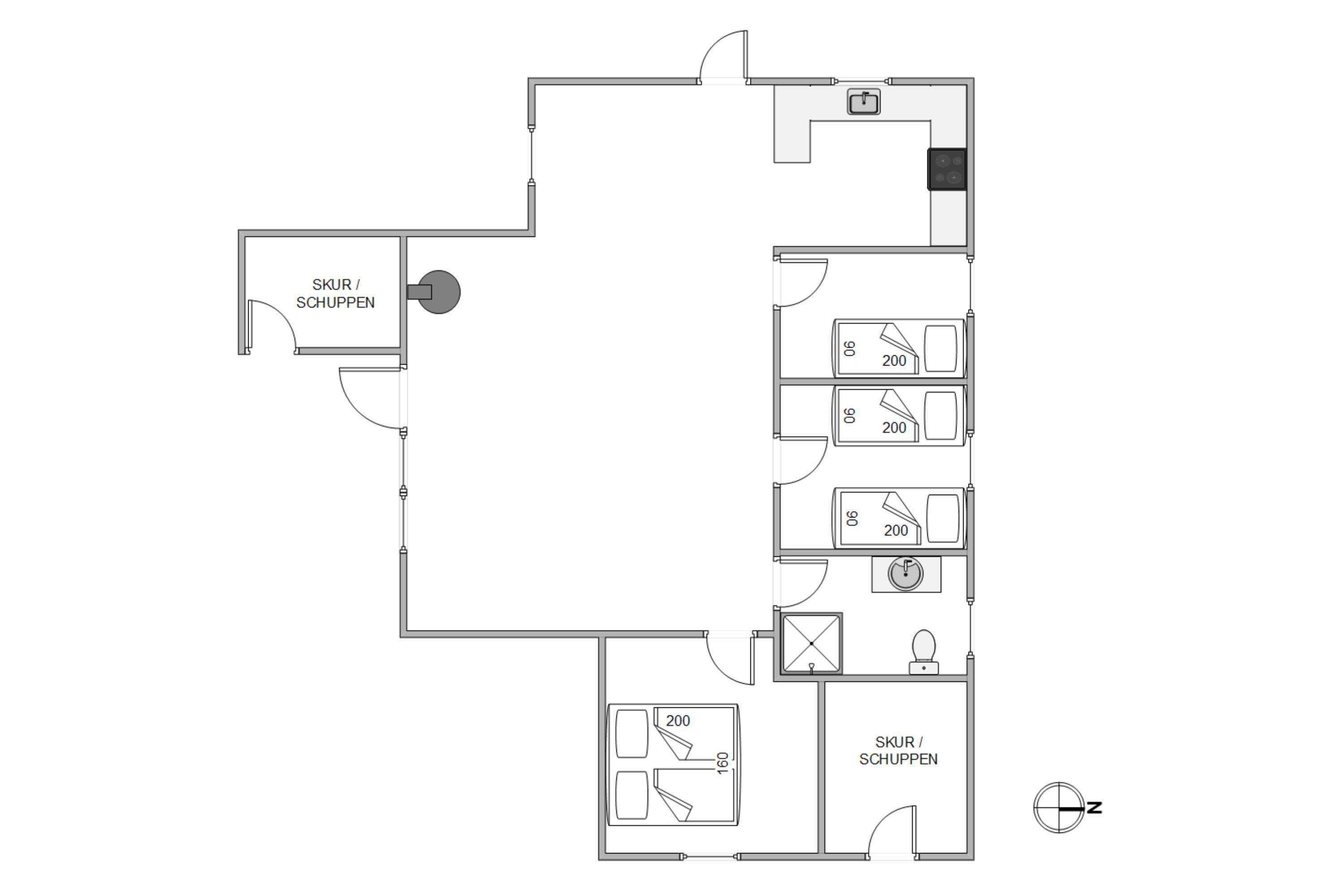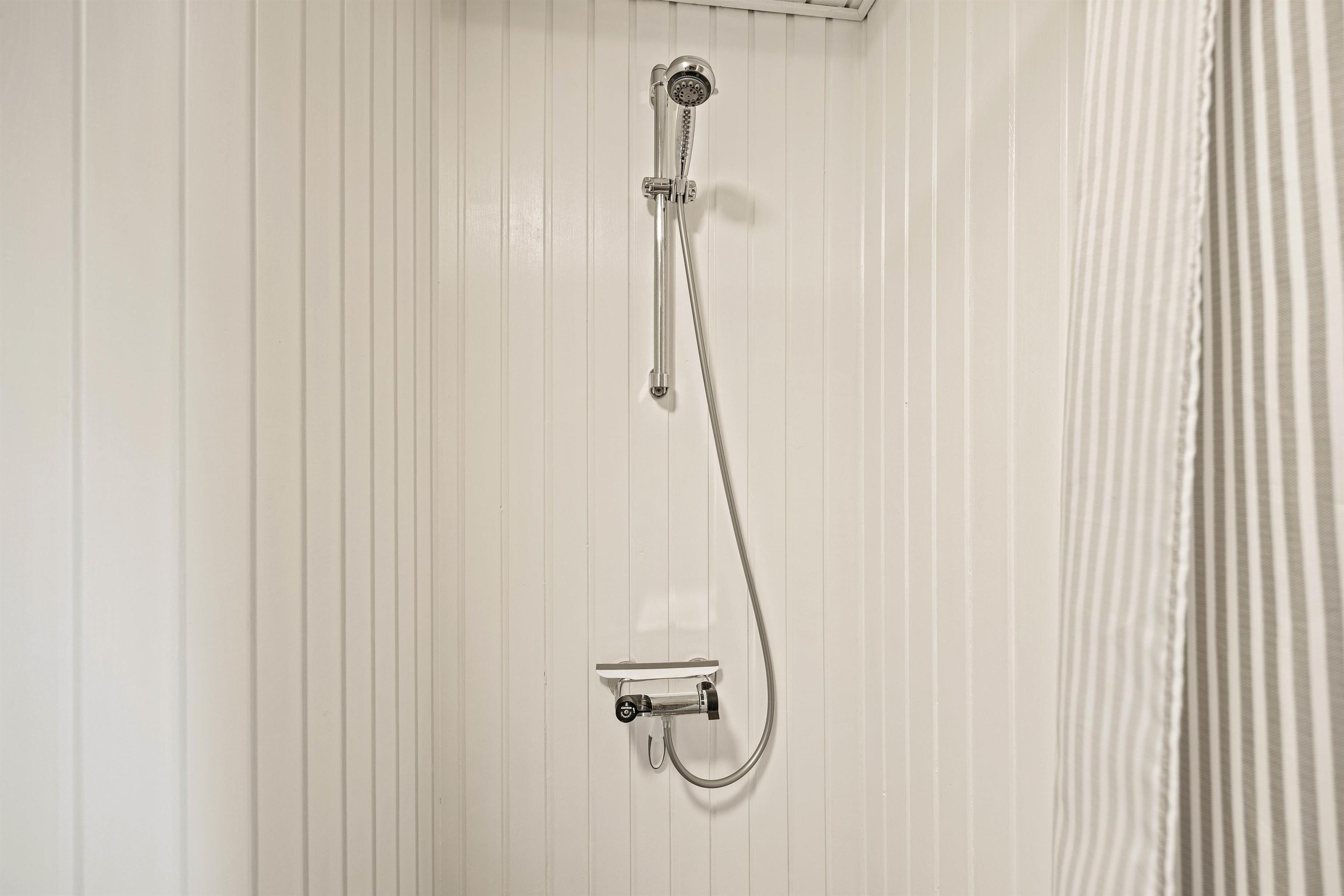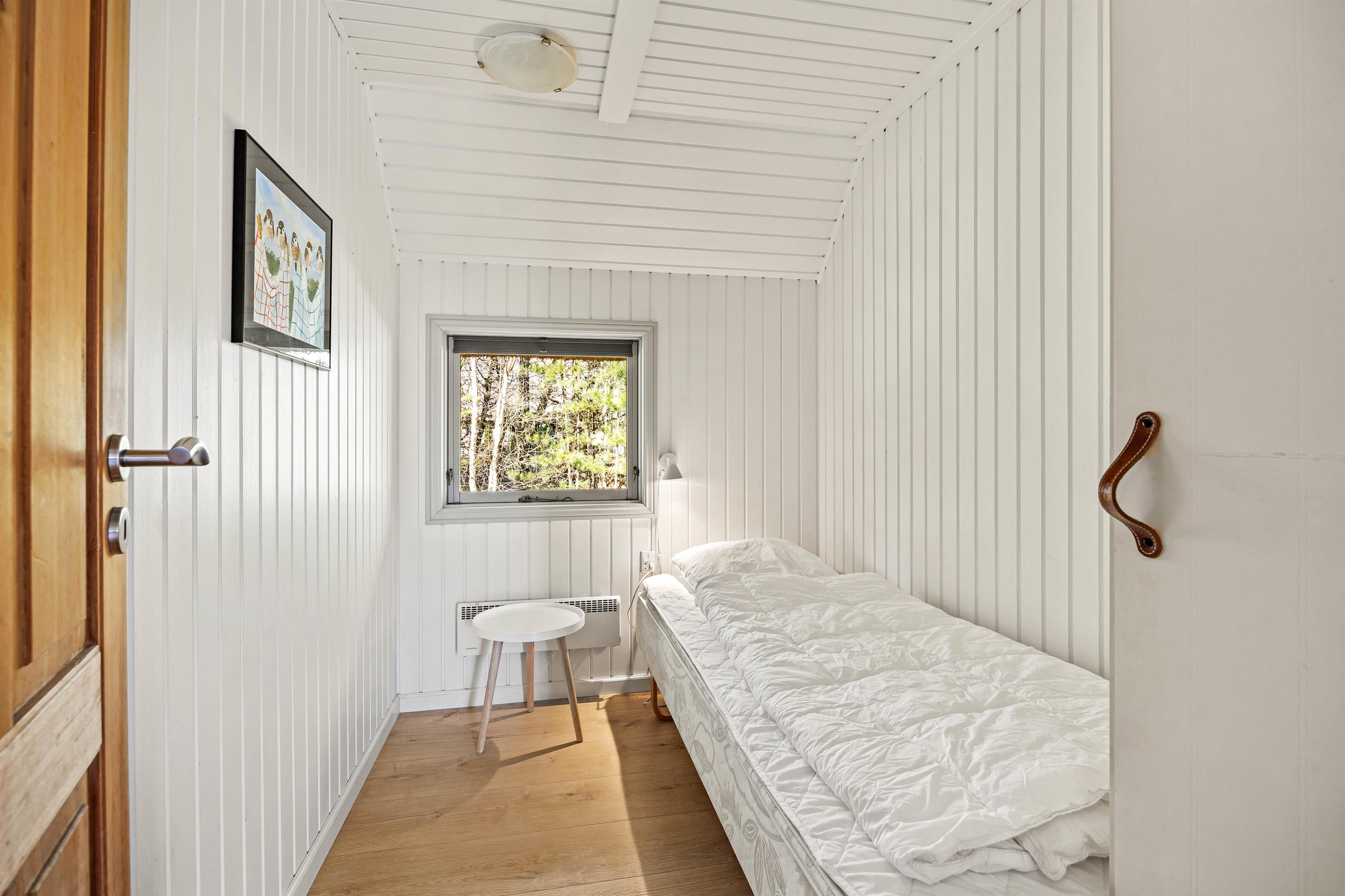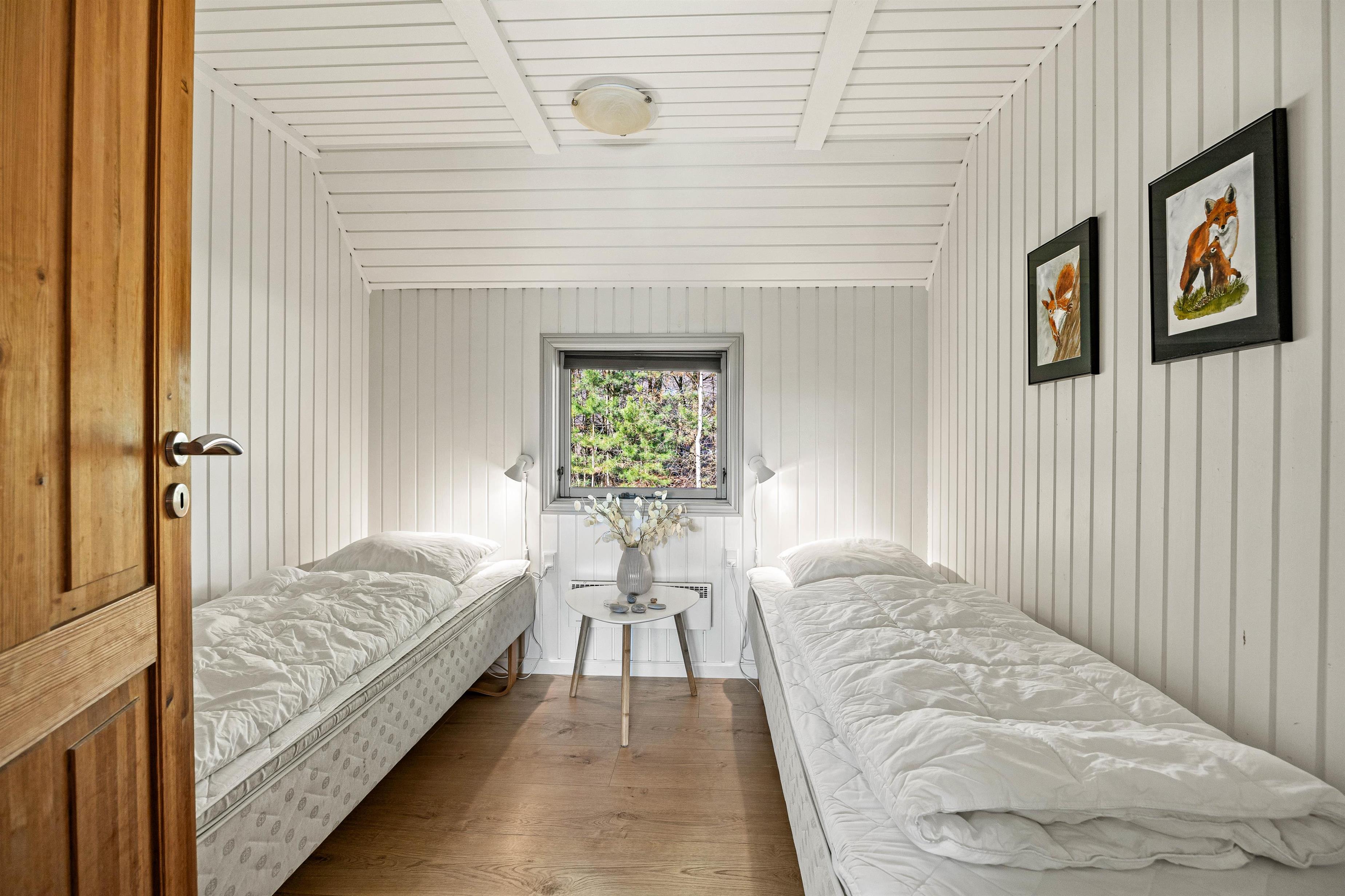 På sommerhusets 73 kvadratmeter finder I desuden 3 gode soveværelser – 1 med dobbeltseng, 1 med 2 enkeltsenge og 1 med én enkeltseng. Derudover har I et badeværelse, der er udstyret med gulvvarme, så ingen fryser om tæerne fra morgenstunden.