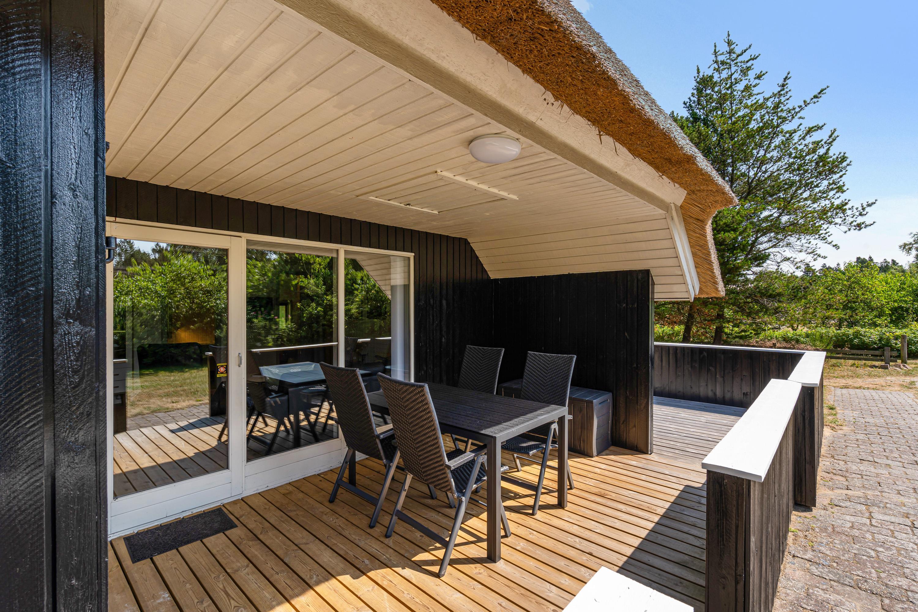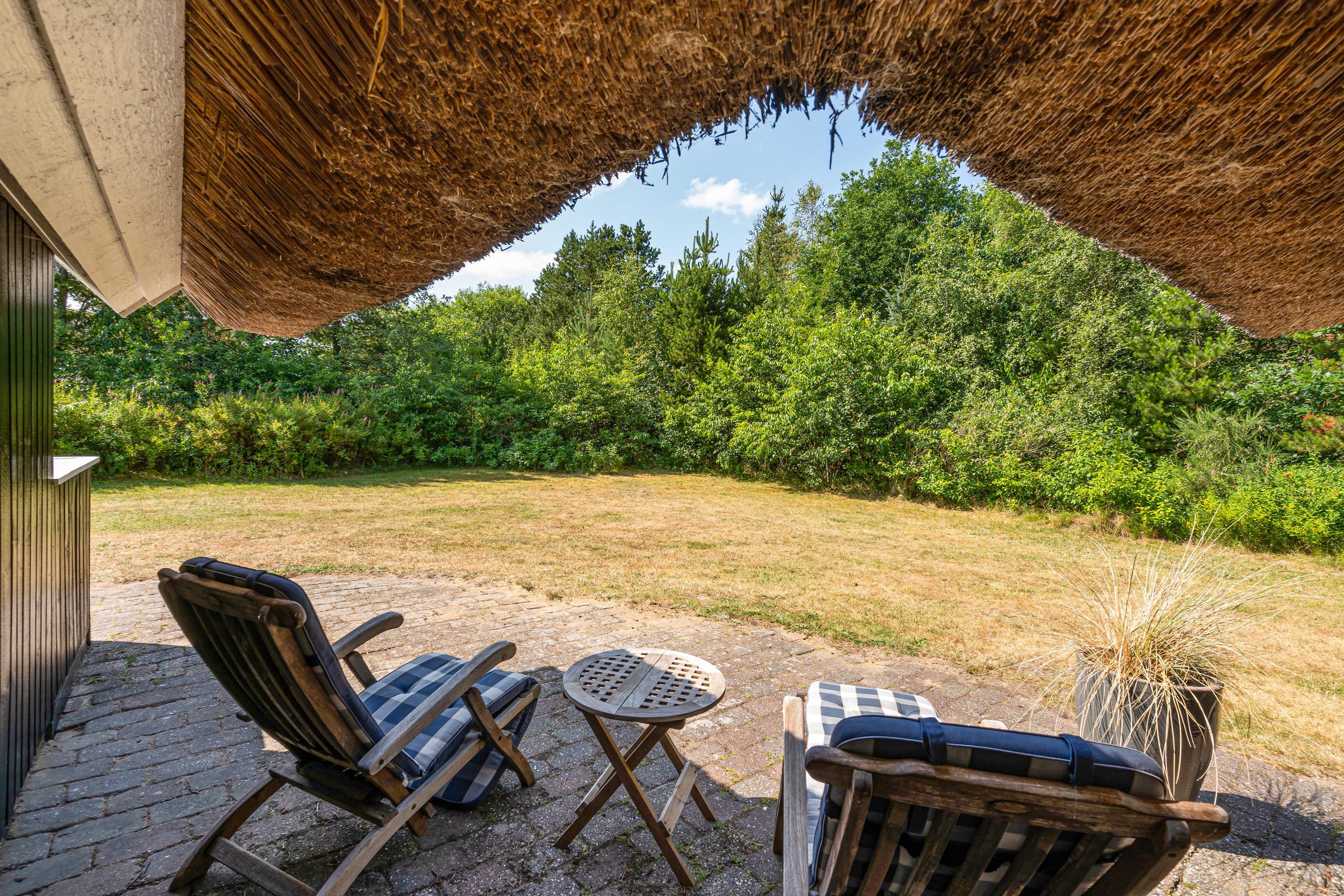 De varme og solrige feriedage kan I tilbringe på terrassen. På den delvist overdækkede terrasse kan I nyde ferien, også hvis vinden skulle vise sig fra sin friske side. Find et godt spot i solen og læn jer tilbage i havemøbler og liggestole, mens feriefreden sænker sig over jer.