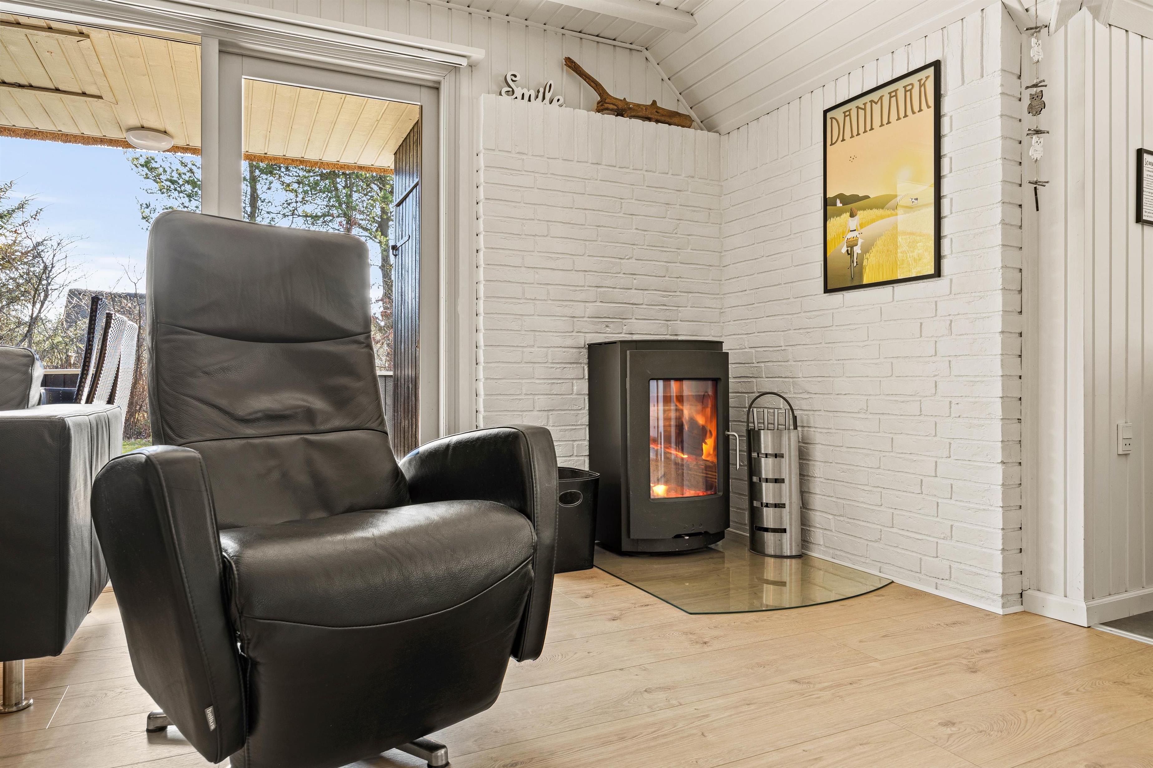 Lys og komfortabel indretning med brændeovn