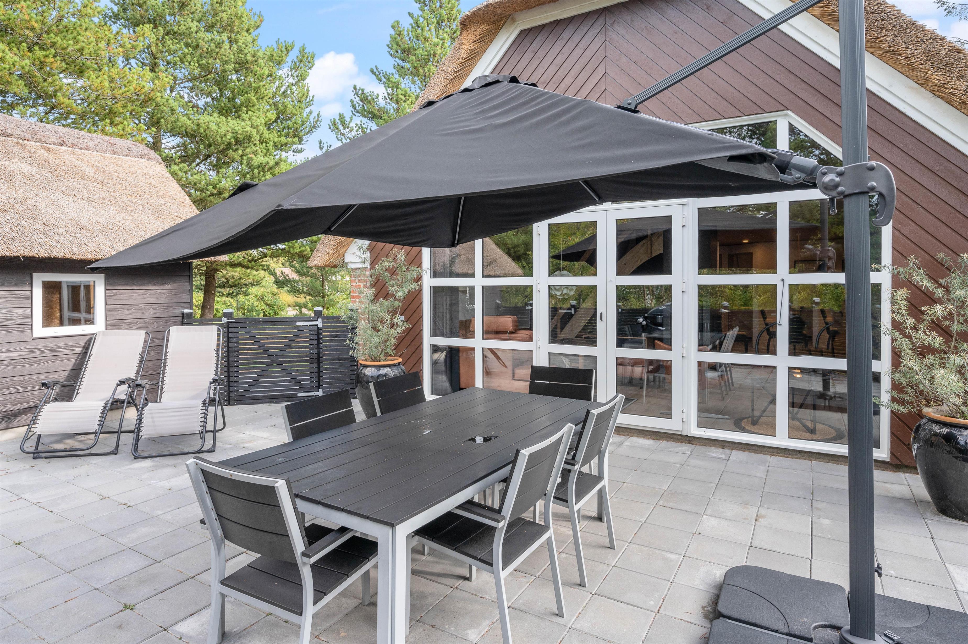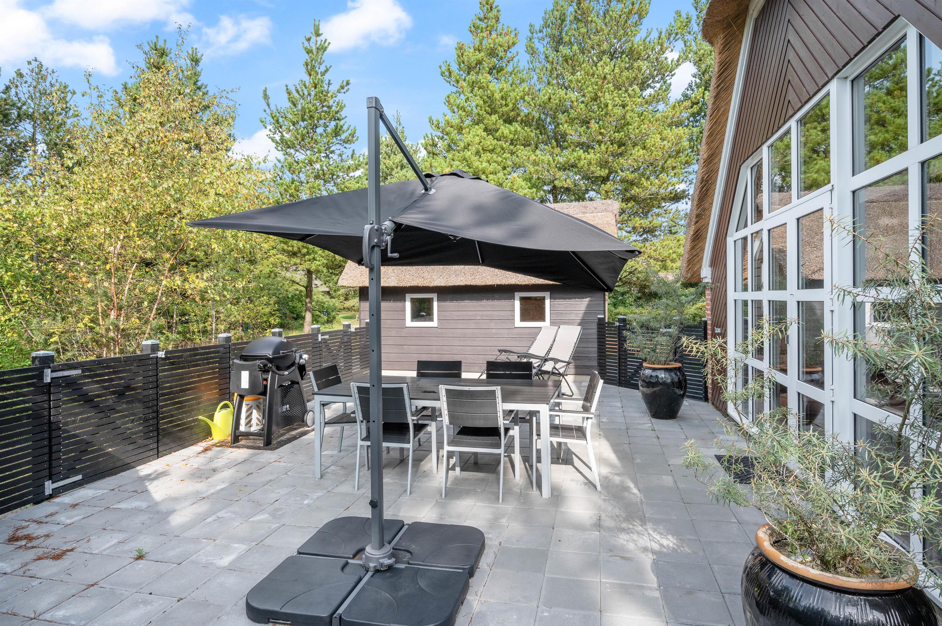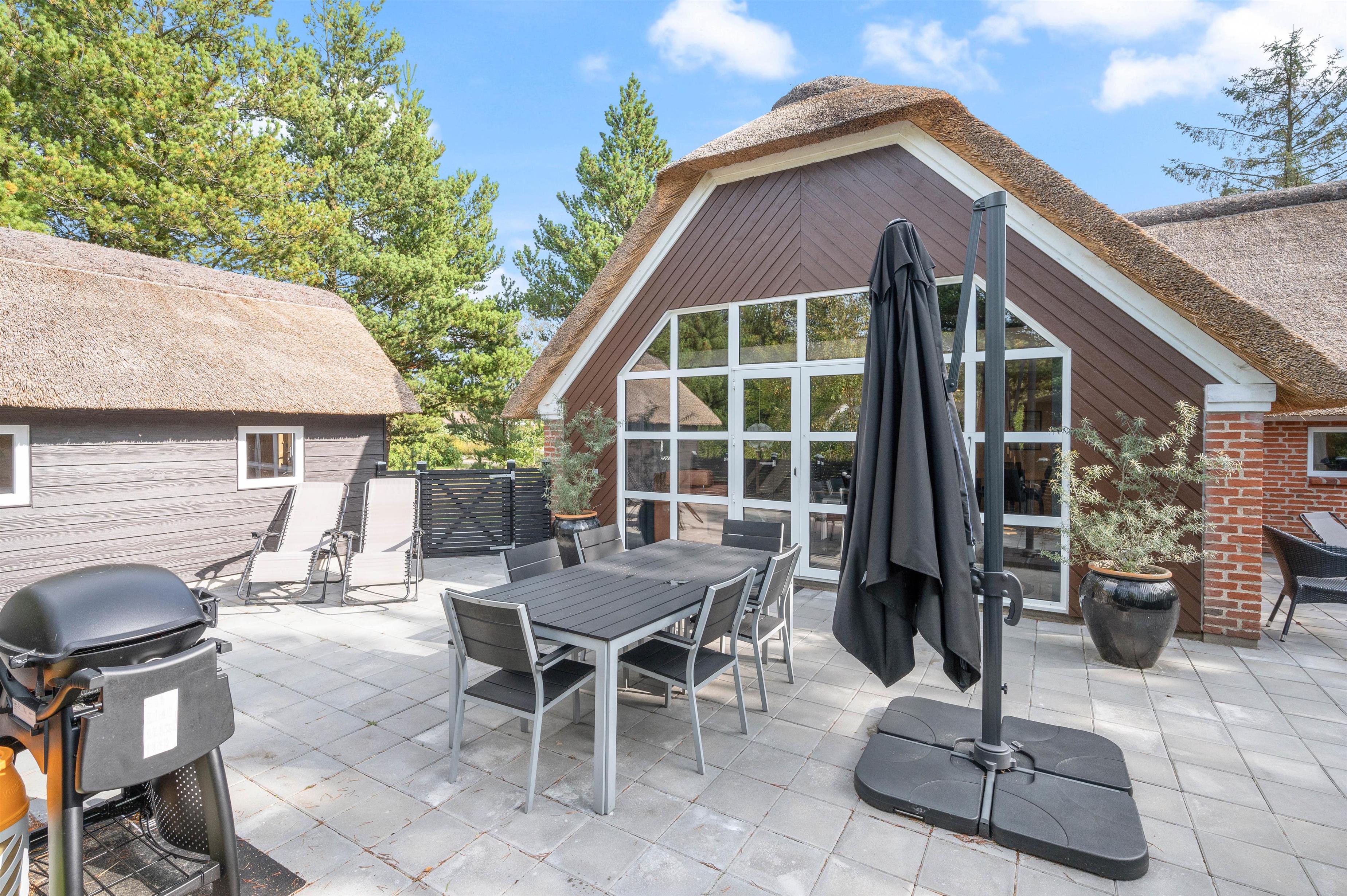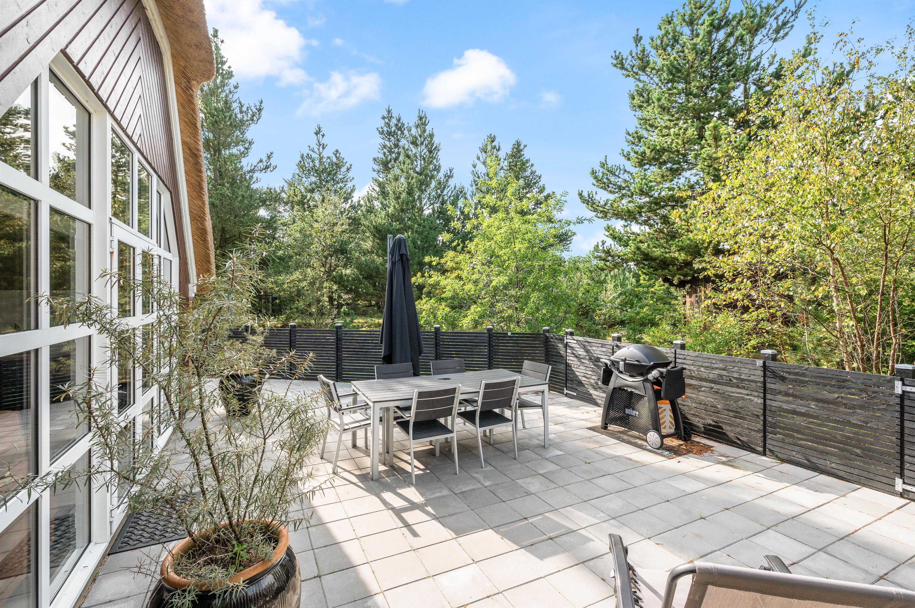 Fra husets stuen har I adgang til husets terrasse, hvor I kan sole jer og hygges med lange grillaftener. For privatliv og ro på dejlige naturgrund sørger randbeplantningen.