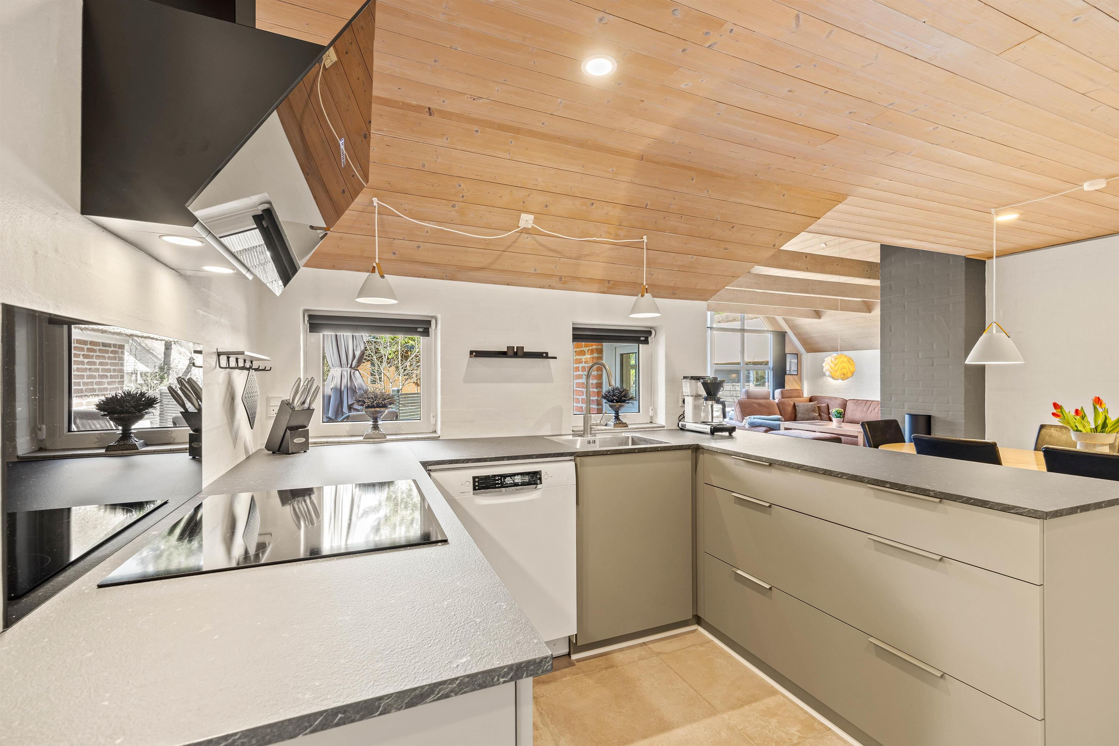 I dette 4-stjerners hus vil I med det samme føle jer godt tilpas. Det stråtækte hus er super hyggeligt indrettet, med højt til loftet, synlige spær og med 4 rigtigt gode soverum, - 2 af dem med dobbeltsenge og på førstesalen, hvor der står to enkeltsenge, er der også bordfodbold, bob-spil og plads til hygge. I det moderne og velindrettede køkken koges maden på induktionskomfur og opvasken klarer ”Minna” husets opvaskemaskine naturligvis.