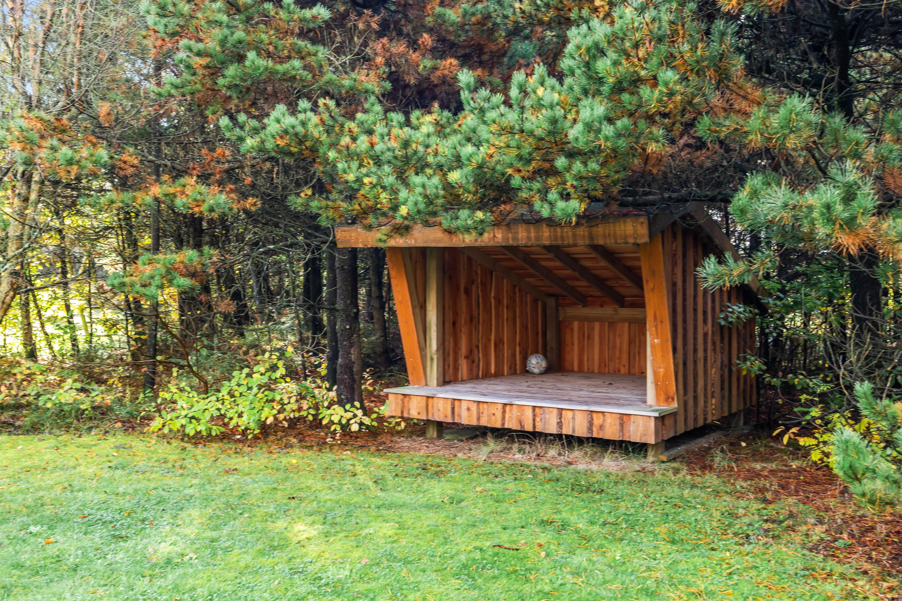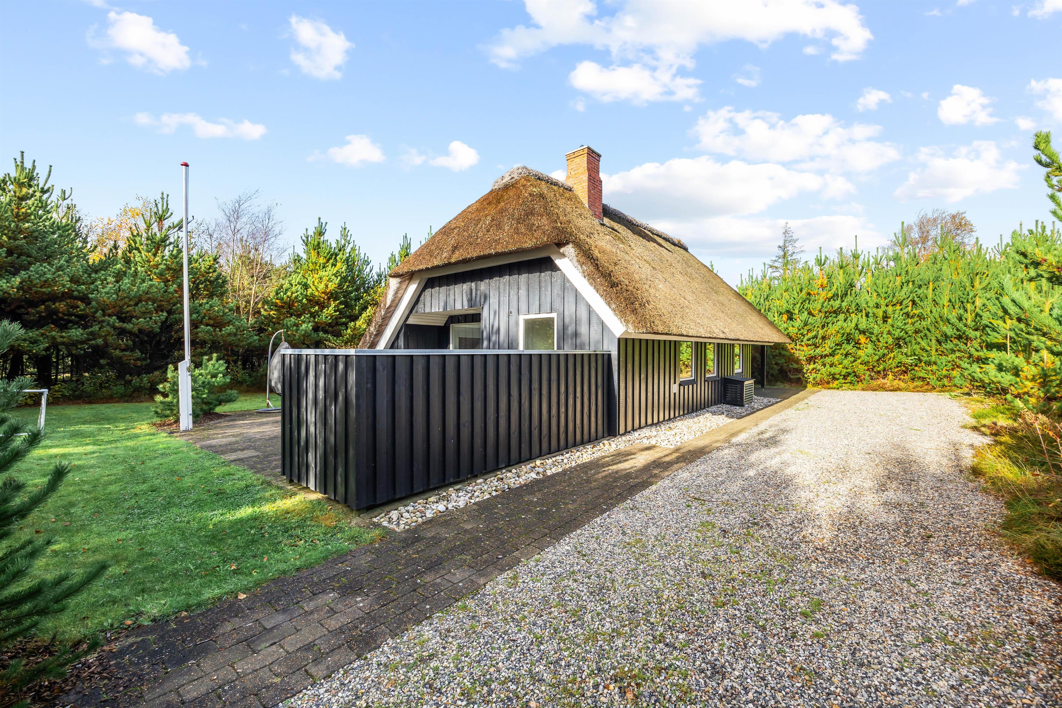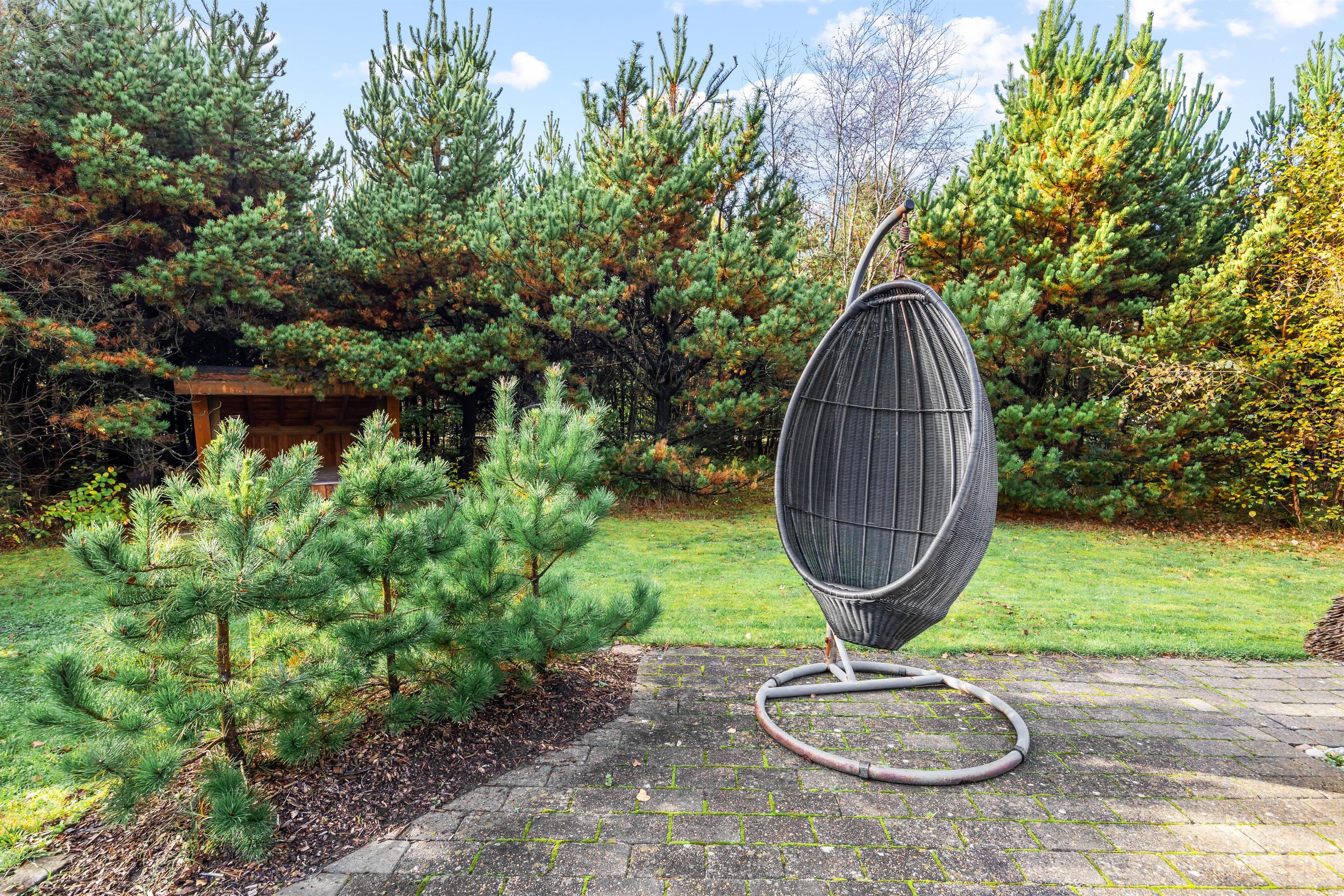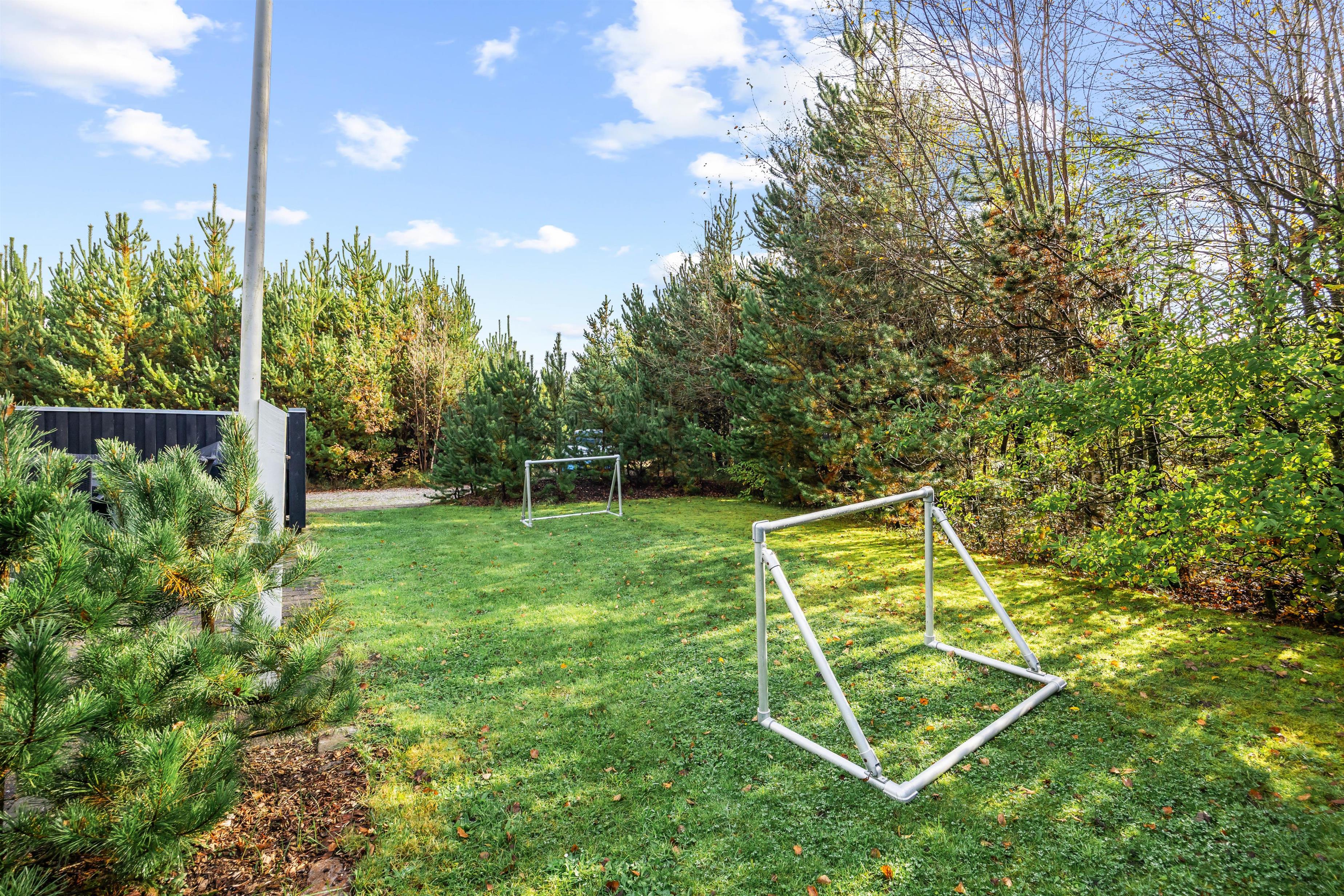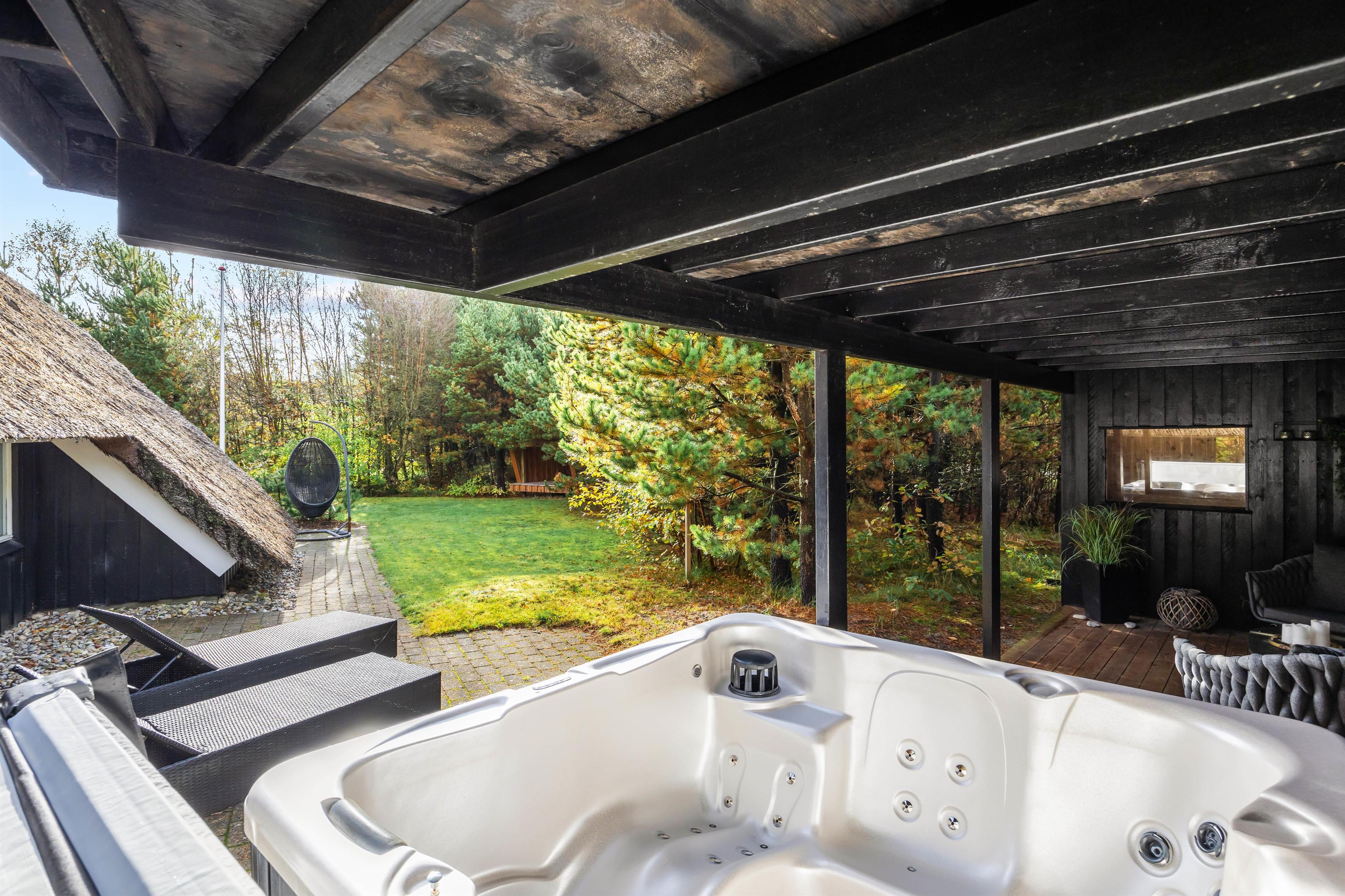 Sommerhuset er placeret på en 1.753 m² stor plænegrund med masser af plads til afslapning og nærvær i det fri. Nyd en tur i saunaen, slap af i spabadet eller tag et opfriskende udendørs brusebad (udebruser er tilgængelig april–november). Terrasseområdet har både åbne og delvist overdækkede områder, og gode havemøbler samt liggestole indbyder til hyggelige stunder. Grill og shelter med lys og strøm gør det muligt at tilbringe en nat under åben himmel uden at skulle mangle noget – sjovt for både børn og voksne.