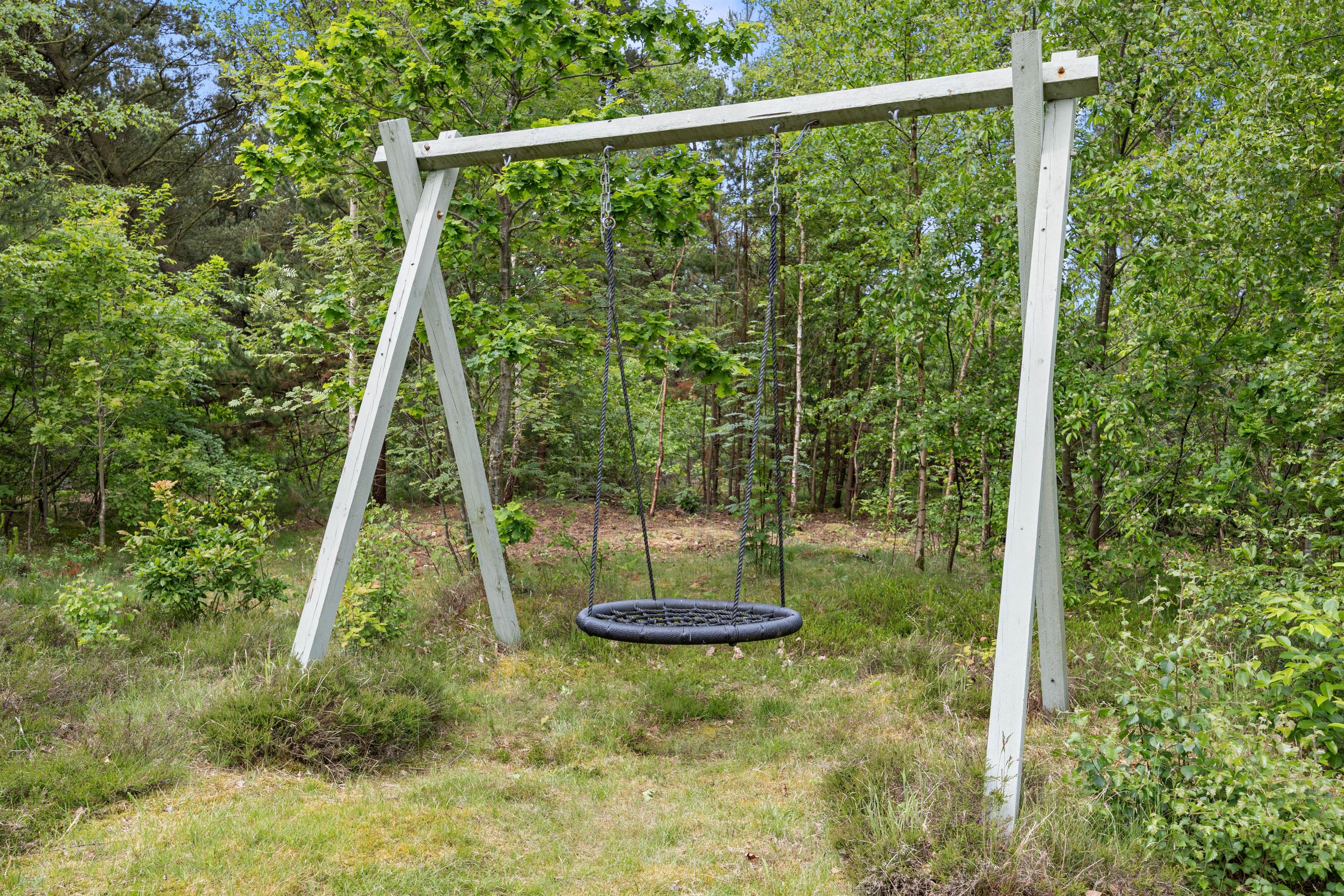 For børnene kan en lille tur rundt i haven være en stor oplevelse. Det charmerende træsommerhus ligger på en 1.100 m² stor grund. Grunden er omkranset af grantræer og buske, som giver jer ro og privatliv, når I er i huset eller sidder på den dejlige træterrasse.