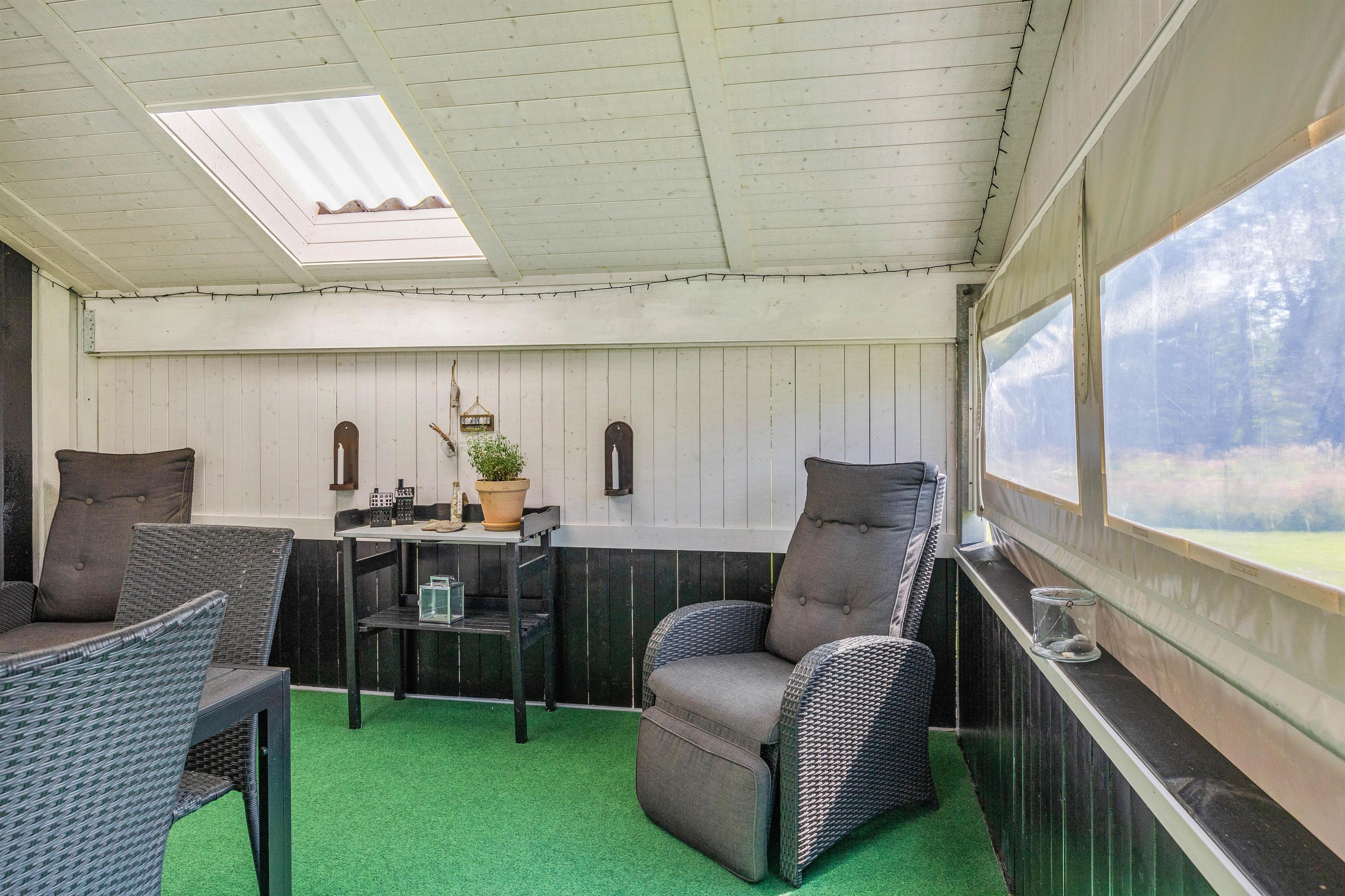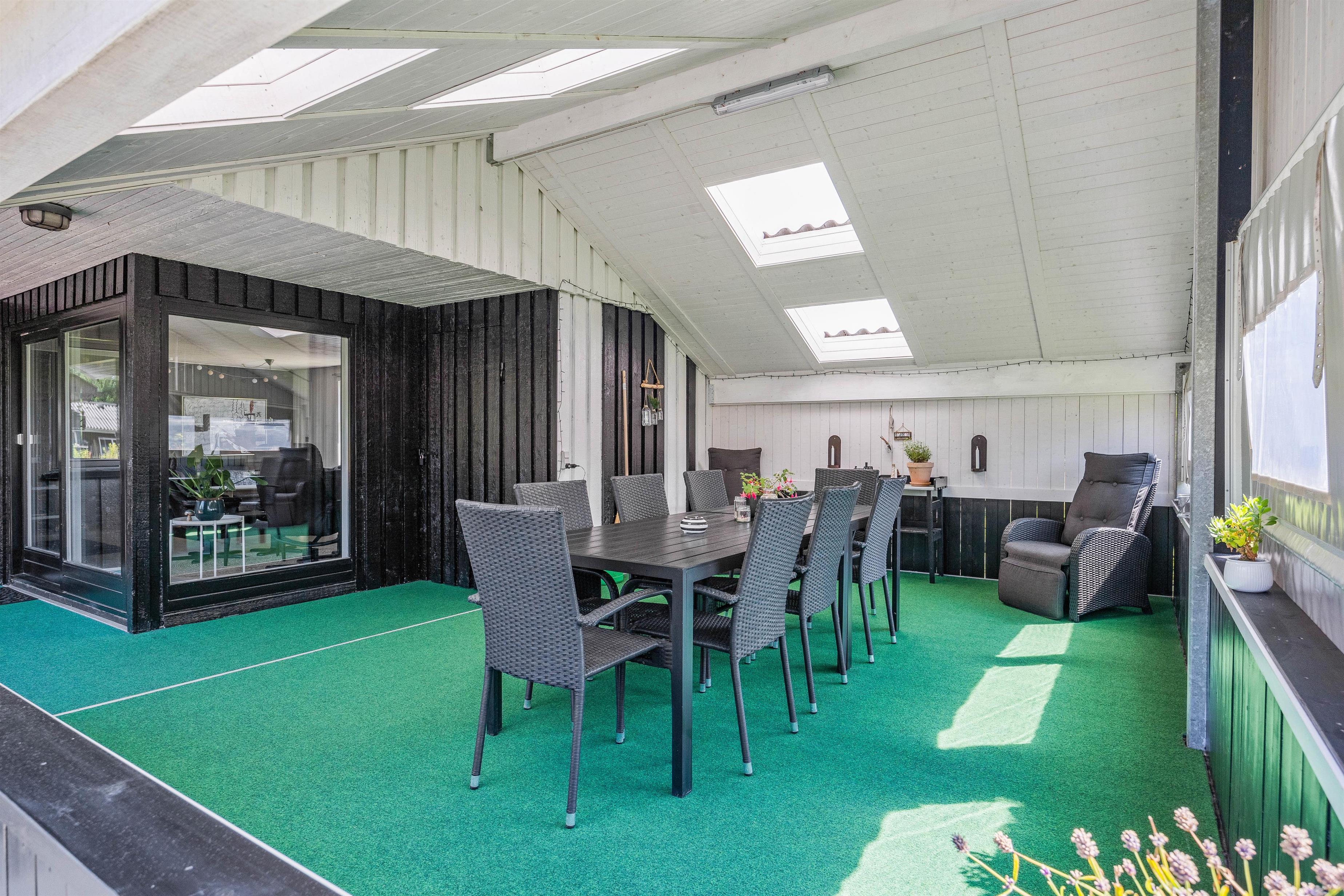 Terrassen er et kapitel for sig selv. Den flotte overdækkede terrasse skaber rammen om mange lyse sommeraftener, hvor børnene enten leger i sandkassen, eller spiller bold på den store grund. Alt imens I får et dejligt glas rødvin, og grillen lige er blevet tændt og dufter i baggrunden.