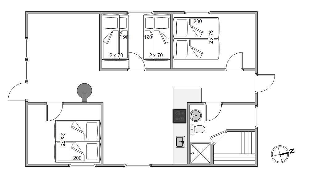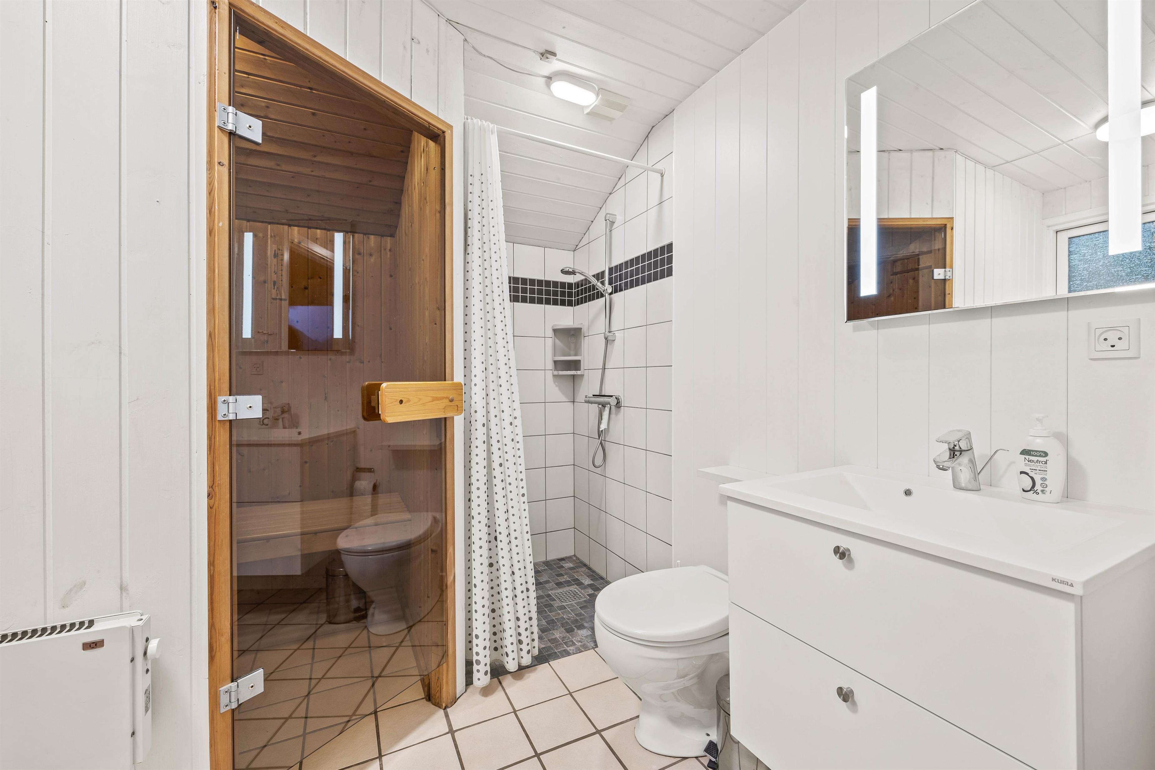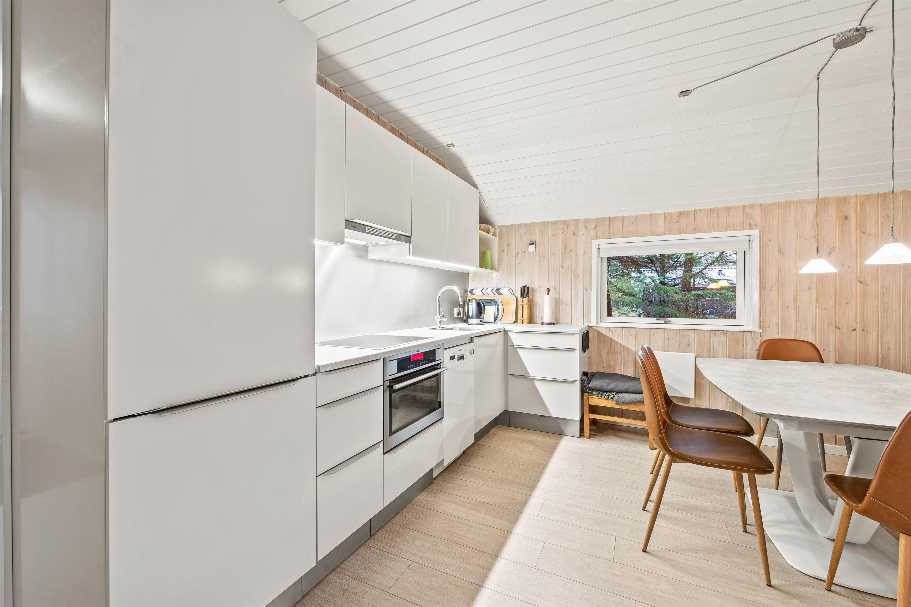 Indenfor finder I et dejligt indrettet hus med lysnede vægge, et pænt lyst køkken og et nyere badeværelse med gulvvarme og vaskemaskine. Huset er indrettet med 2 soveværelser med dobbeltsenge og et køjerum med 4 senge. Ved det store spisebord i køkken-alrummet er der rigelig plads til at samles til god mad og lange spilleaftener, men man kan også vælge at forkæle sig selv med en tur i husets sauna.