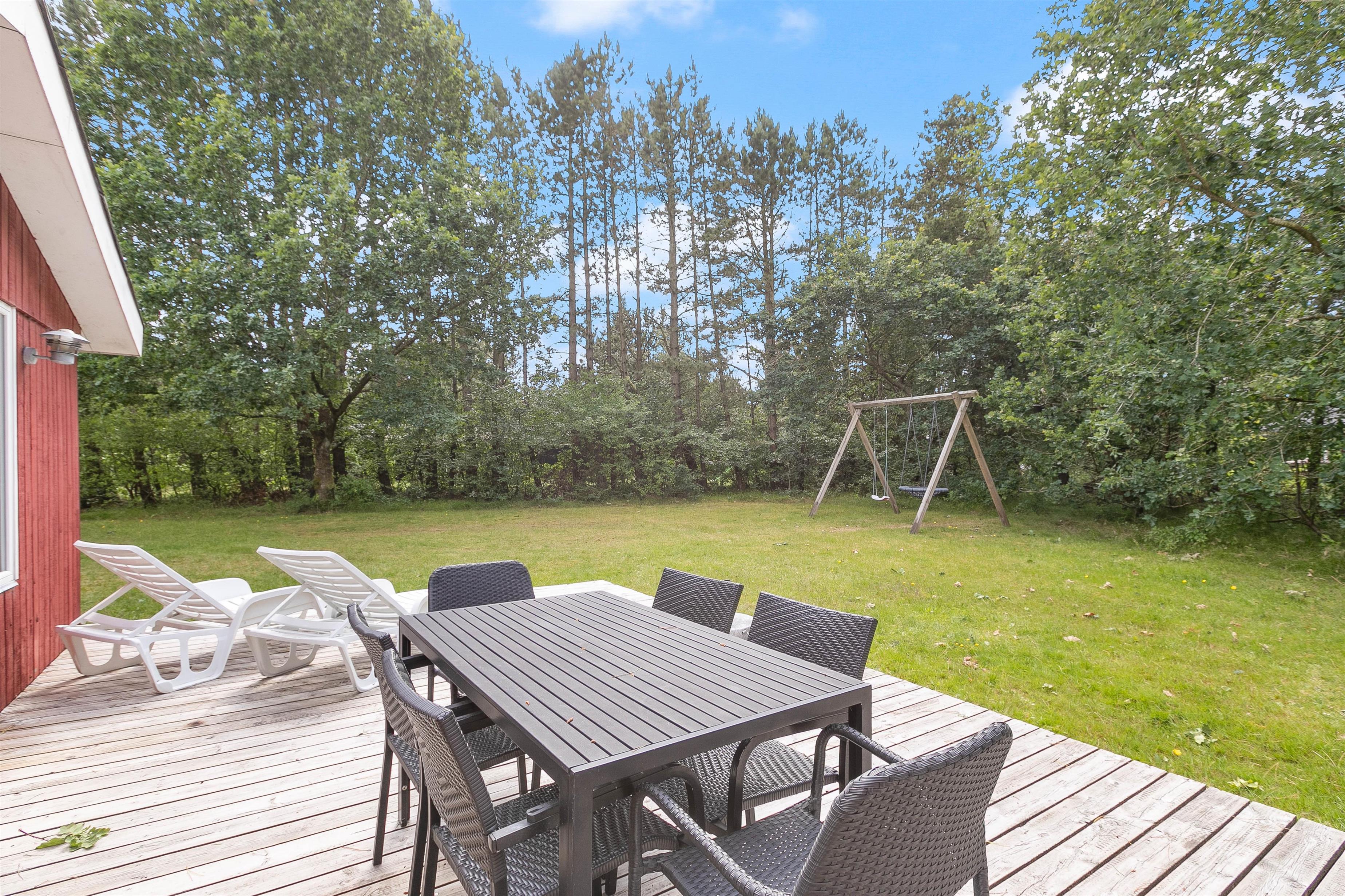 Fra køkkenet går turen ud på den hyggelige morgenterrasse, og derudover har I også en stor, åben terrasse, hvor I rigtig kan smide benene op og nyde dagen og feriefreden i liggestolen.