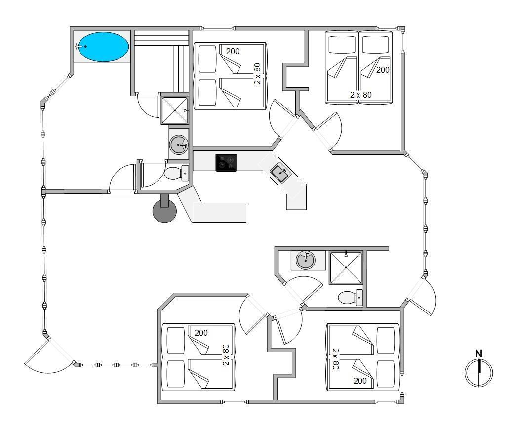 I det ene af to badeværelser finder I en lille wellnessoase med både sauna og spabad, hvor I efter en lang gåtur i den friske skovluft eller en strandudflugt til det brusende Vesterhav igen kan få varmen og lade batterierne op til endnu en feriedag.